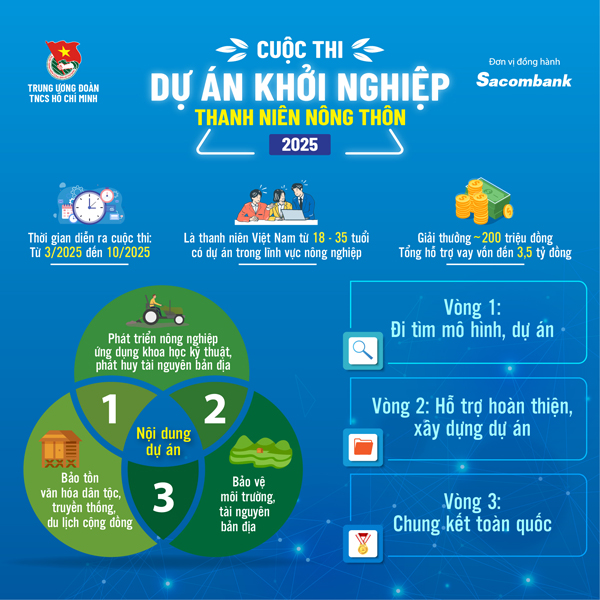 Theo thông tin từ Ban tổ chứ Cuộc thi ‘Dự án khởi nghiệp Thanh niên nông thôn’ năm 2025 là sân chơi đặc biệt do Trung ương Đoàn tổ chức nhằm khuyến khích thanh niên nông thôn phát huy tinh thần khởi nghiệp, lập nghiệp, góp phần xây dựng nền kinh tế nông nghiệp hiện đại và bền vững.