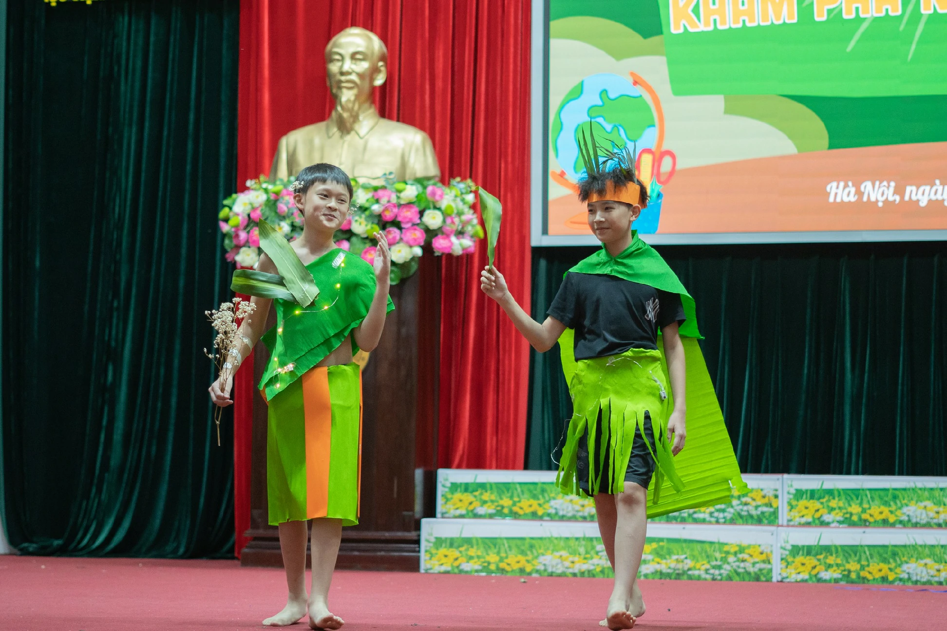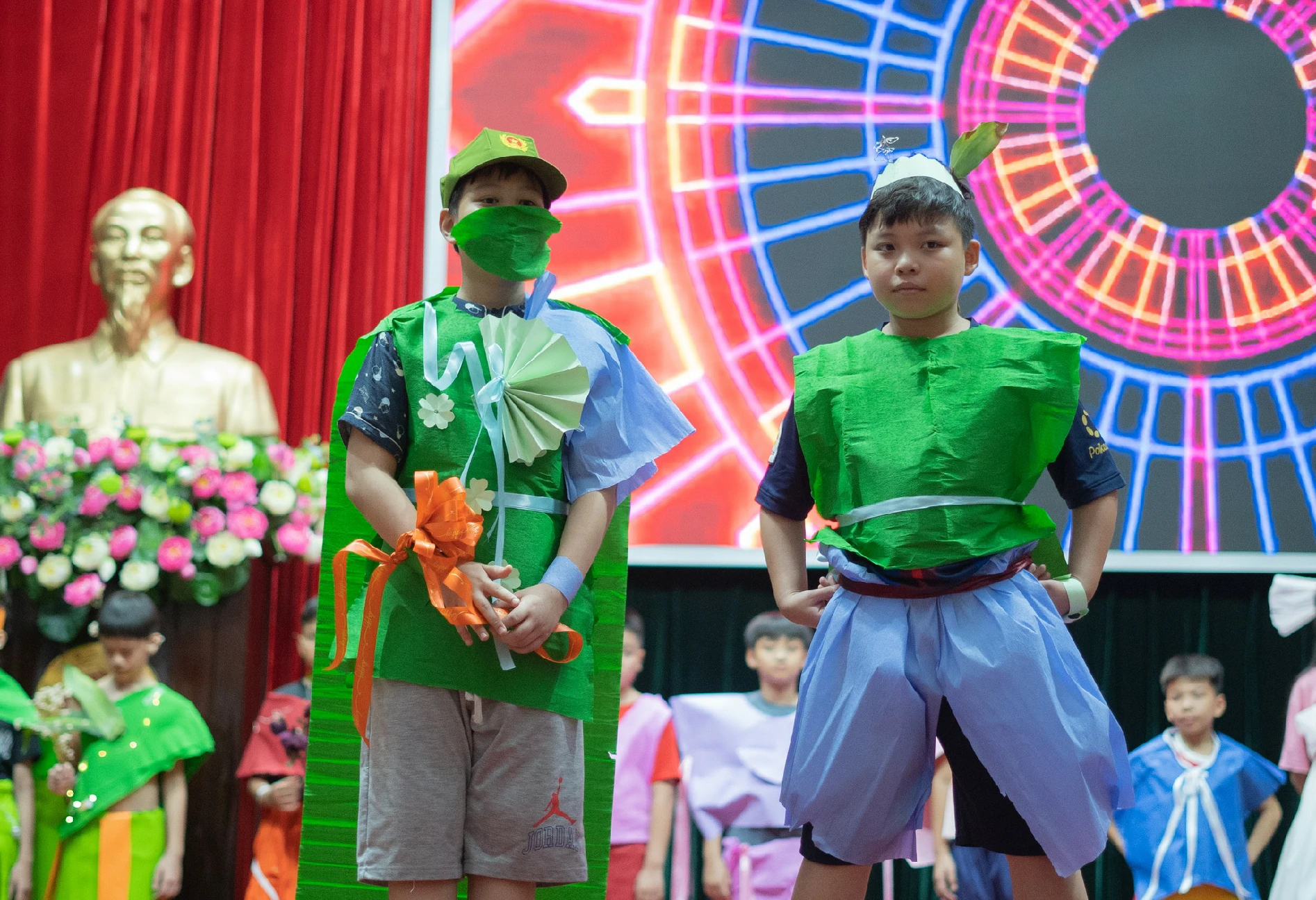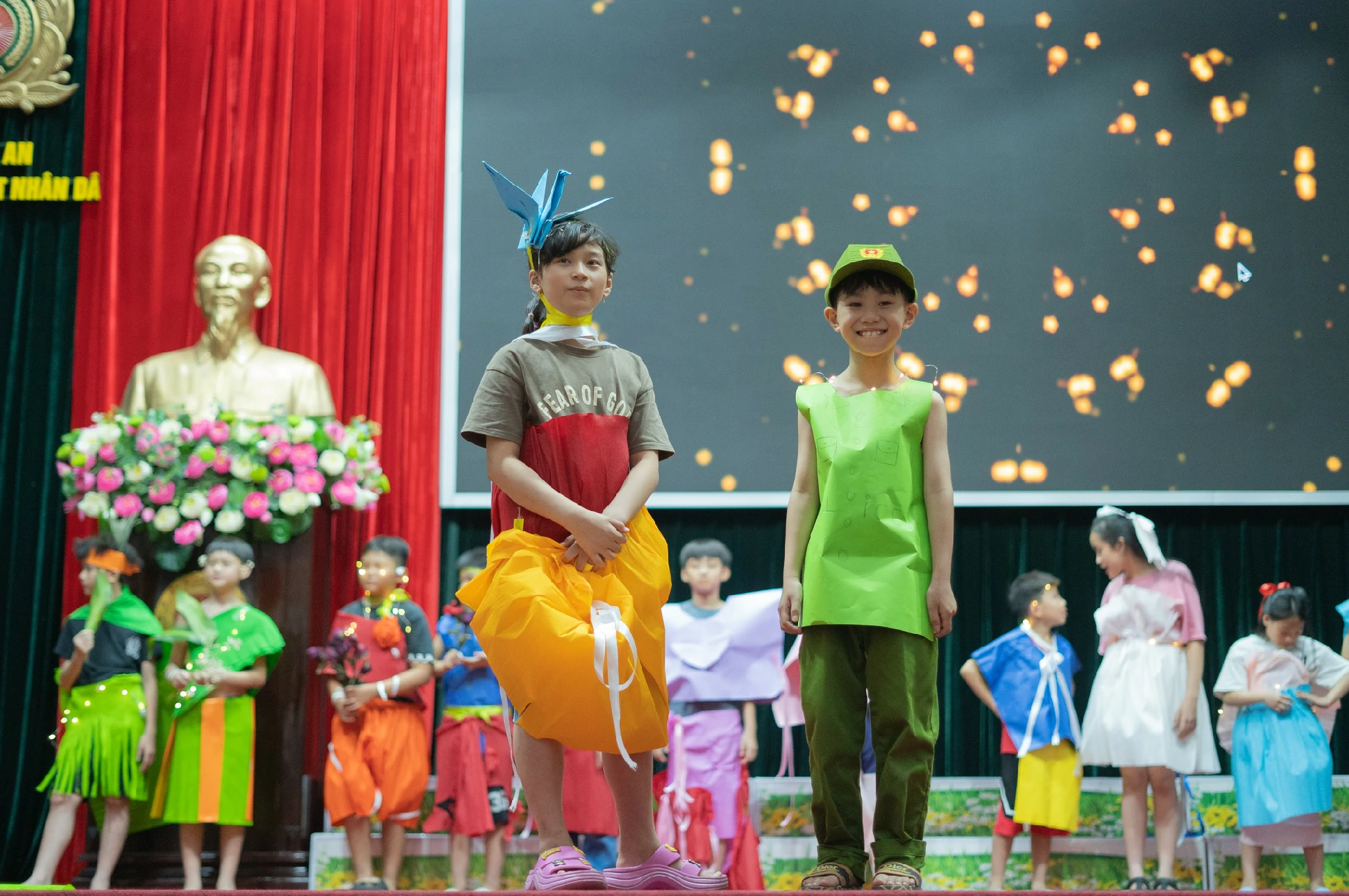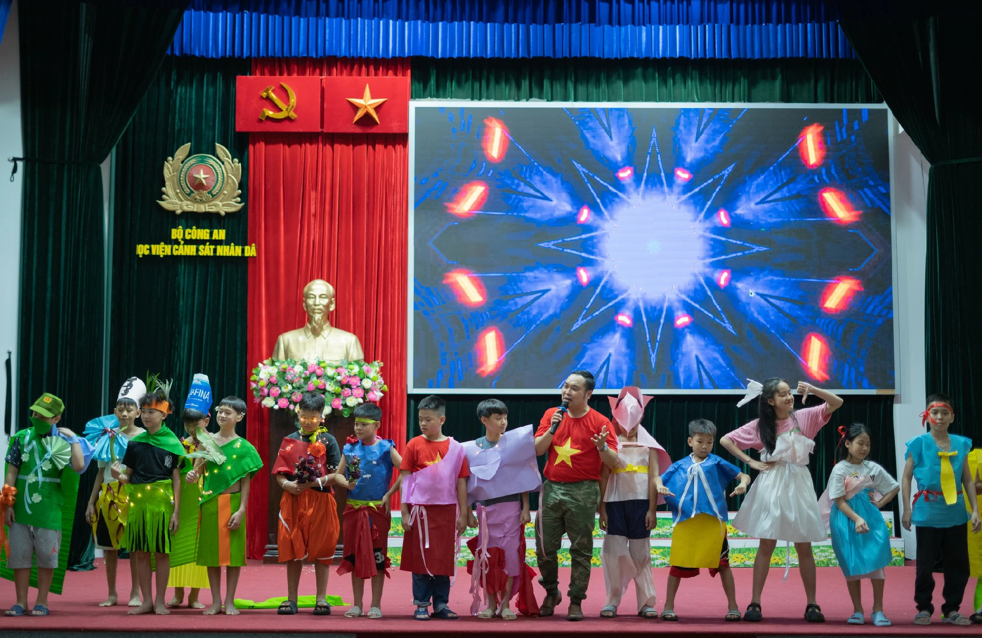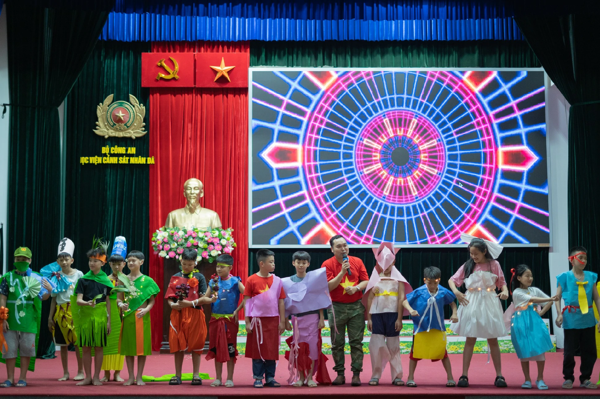 Cháy trong mình tinh thần “Học mà chơi - Chơi mà học”, các chiến sĩ công an nhí không chỉ được học tập và rèn luyện thể chất mà còn được thỏa sức sáng tạo thông qua cuộc thi THIẾT KẾ THỜI TRANG bằng các vật liệu giấy nhằm đem tới thông điệp cuộc sống đầy ý nghĩa như: Bảo vệ môi trường, Giảm thiểu rác thải nhựa, Tiết kiệm nước….