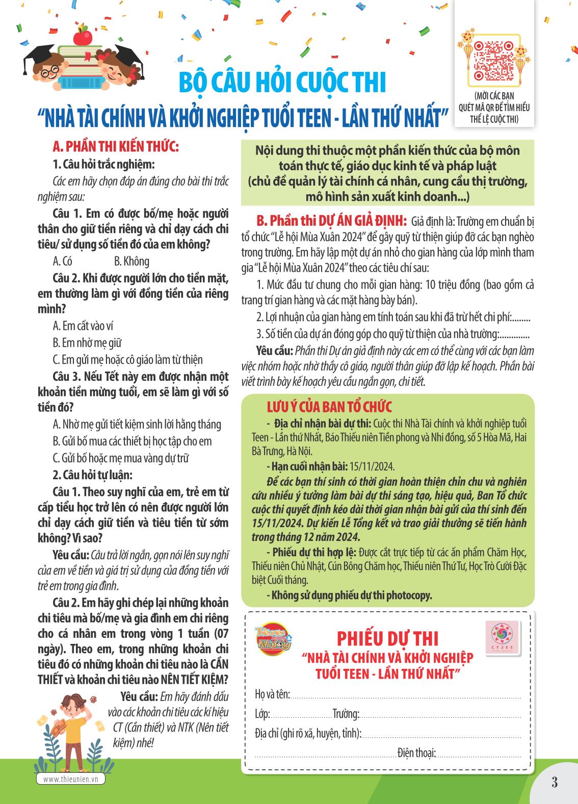 Chuẩn bị cho Lễ tổng kết cuộc thi “Nhà Tài chính và khởi nghiệp tuổi Teen – Lần thứ Nhất” do báo Thiếu niên Tiền phong và Nhi đồng (Báo TNTP&NĐ) tổ chức, Ban Tổ chức cuộc thi tặng bạn đọc bản điện tử cuốn sách “Trò chơi tư duy ứng dụng cho thiếu niên” (Báo TNTP&NĐ và Trung tâm Nghiên cứu và Đào tạo Giới trẻ Khởi nghiệp (CY2ES) giới thiệu, in tại NXB Đại học Quốc gia Hà Nội ). Nội dung cuốn sách nằm trong khuôn khổ chương trình hợp tác cuộc thi “Nhà Tài chính và Khởi nghiệp tuổi teen” của Báo Thiếu niên Tiền phong và Nhi đồng đồng hành cùng Trung tâm Nghiên cứu và Đào tạo Giới trẻ Khởi nghiệp (CY2ES).