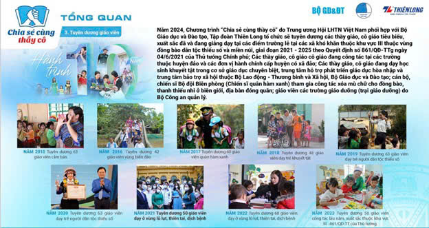 Chia sẻ cùng thầy cô là chương trình thường niên do Trung ương Hội LHTN Việt Nam, Bộ Giáo dục và Đào tạo, Tập đoàn Thiên Long phối hợp tổ chức. Chương trình tôn vinh những thầy, cô giáo trong hành trình mang kiến thức, tình yêu thương đến các em học sinh.