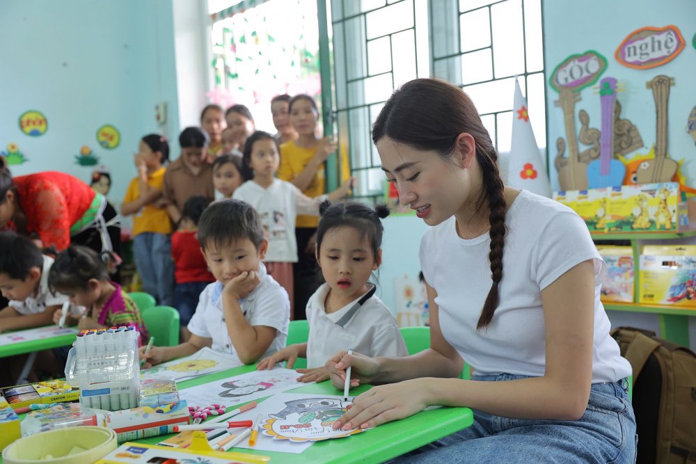 Cùng chia sẻ về những kỷ niệm với Chia sẻ cùng thầy cô trong vai trò Đại sứ, Hoa hậu Lương Thùy Linh kể về chuyến đi đầy kỷ niệm tại Hòa Bình và lắng nghe hành trình cảm hứng của cô giáo Quách Thị Nụ - cô giáo được tuyên dương năm 2023. “Thuỳ Linh dùng từ “phi thường” để nói về câu chuyện của cô Nụ vì bất kể nắng mưa, một mình cô lái một con đò đơn sơ vượt sông Đà đưa học sinh tới lớp. Và càng khâm phục hơn khi Cô Nụ chia sẻ rằng cô không rõ động lực từ đâu nhưng cứ làm thôi, vì học trò của mình”, Lương Thùy Linh chia sẻ.
