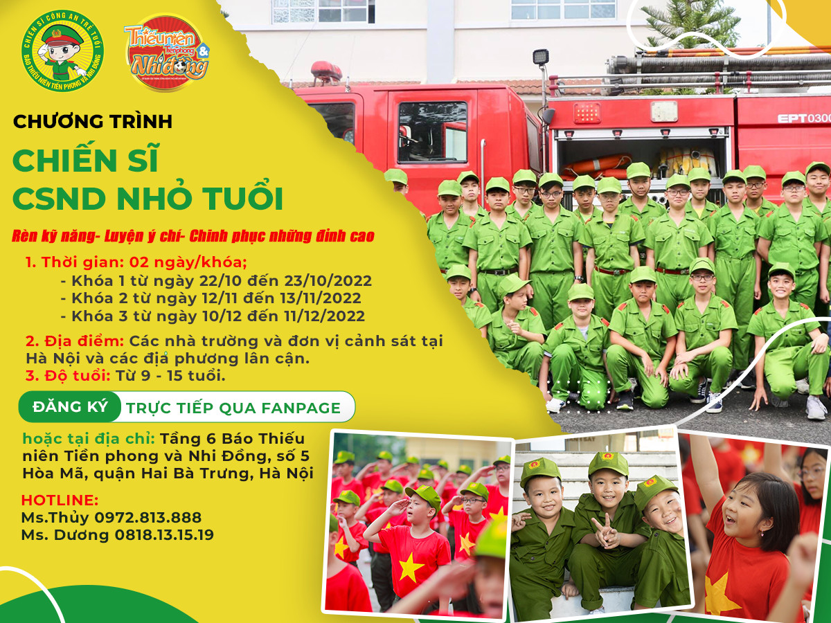 Hành trình CHIẾN BINH XANH – chương trình đã và đang có uy tính do Trung tâm Phát triển kỹ năng Thanh thiếu nhi, Báo Thiếu niên tiền phong và Nhi đồng tổ chức trong phiên bản “Chiến sĩ CAND nhỏ tuổi”.