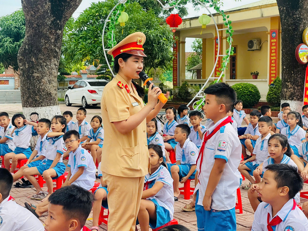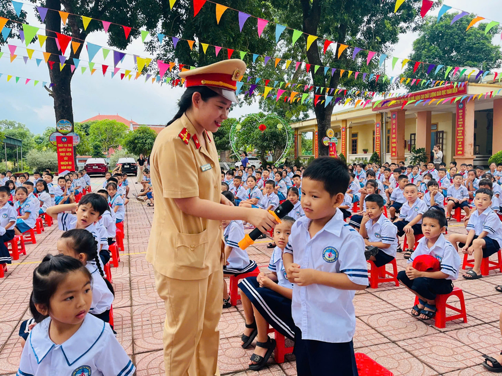 Tại chương trình, các bạn nhỏ được nghe các cô chú Cảnh sát giao thông Công an huyện truyền đạt nội dung tuyên truyền Pháp luật về an toàn giao thông. Trong đó, nhấn mạnh: Tai nạn giao thông là hiểm họa thường trực đối với mỗi người khi tham gia giao thông. Trên phạm vi cả nước, mỗi ngày xảy ra hàng trăm vụ tai nạn giao thông làm chết và bị thương nhiều người; hậu quả để lại nỗi đau cho người thân, thêm một gánh nặng cho xã hội và gây tổn thất về vật chất của gia đình và xã hội. Do vậy, các em học sinh cần nâng cao ý thức chấp hành pháp luật an toàn giao thông, từ đó thay đổi thái độ, hành vi tự giác tham gia giao thông an toàn.