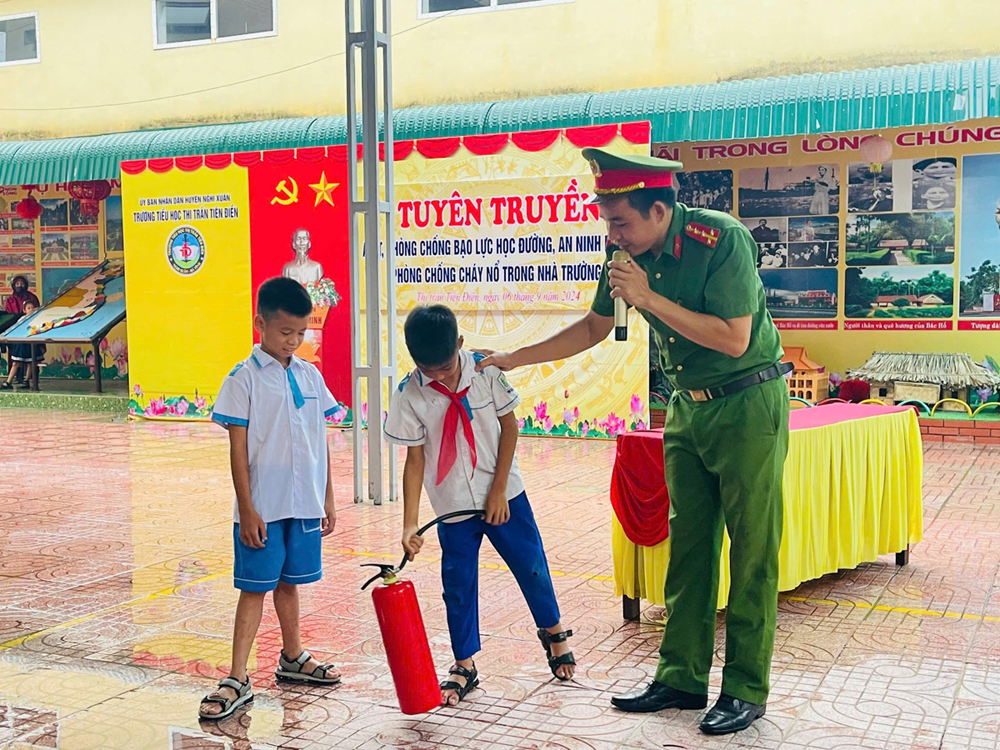 Vừa qua, trường Tiểu học Thị trấn Tiên Điền (huyện Nghi Xuân, tỉnh Hà Tĩnh) đã phối hợp với công an huyện Nghi Xuân, công an Thị trấn Tiên Điền tổ chức buổi “Tuyên truyền ATGT, phòng chống cháy nổ trong trường học”.