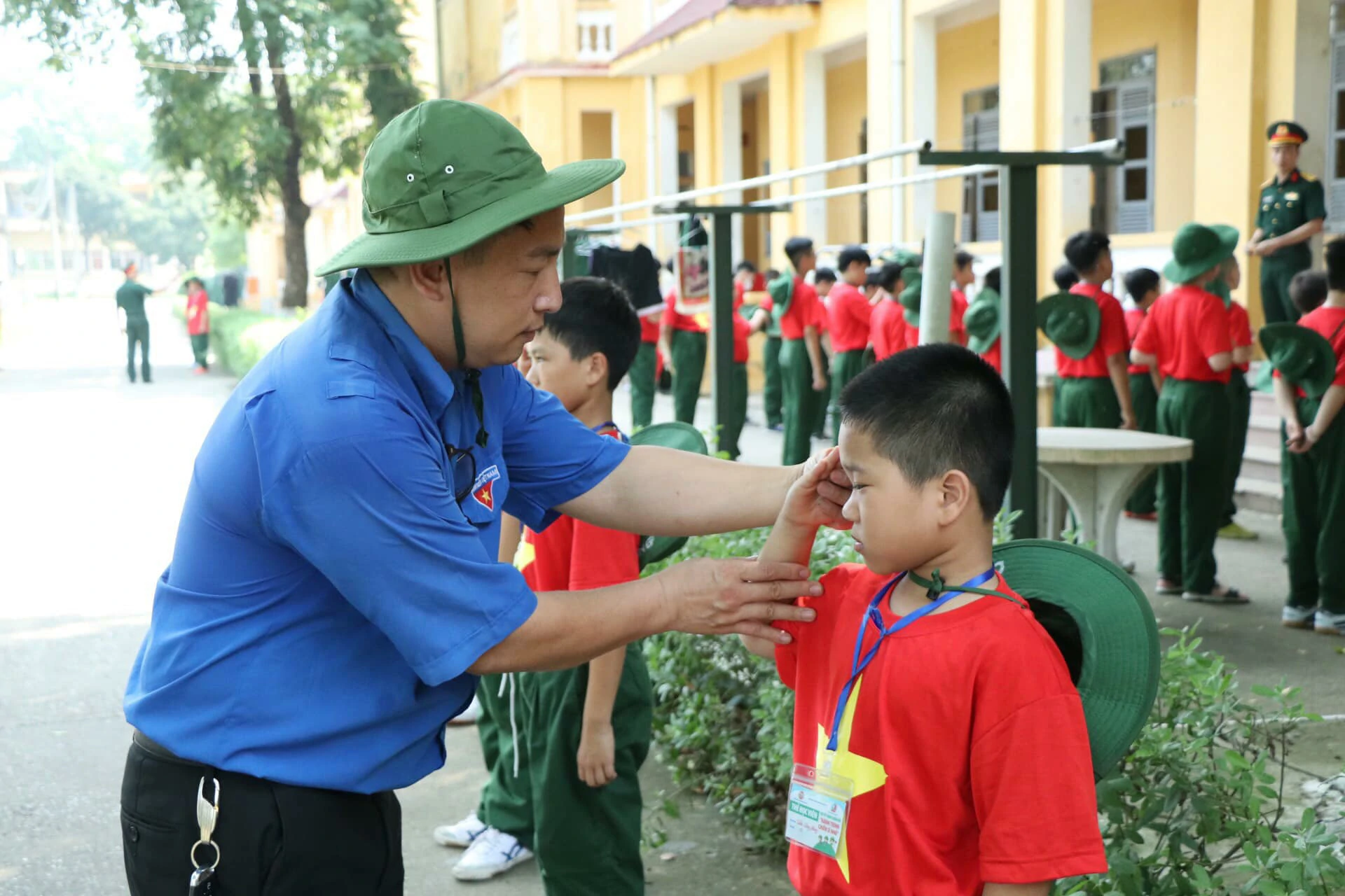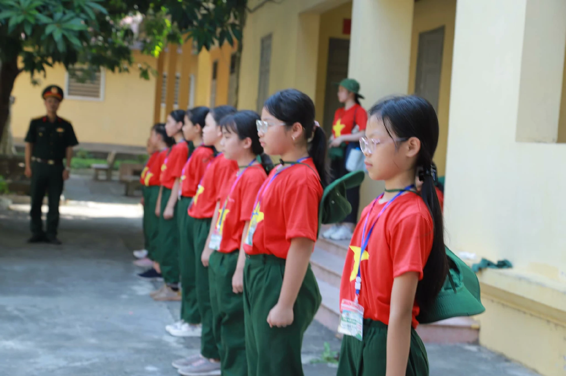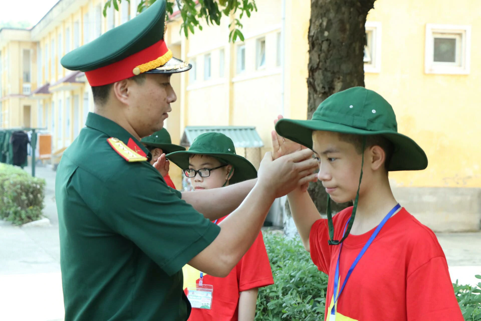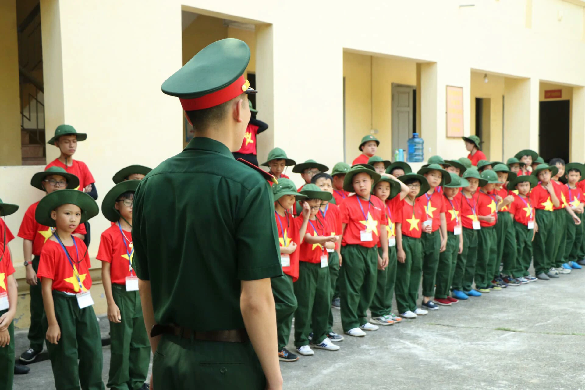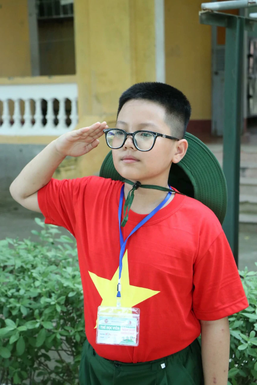 Mỗi ngày tại “HÀNH TRÌNH CHIẾN SĨ NHỎ” đều là những ngày bổ ích, thú vị và vô cùng đáng nhớ. Hôm nay con được chỉ cách chào sao cho chuẩn, đứng sao cho nghiêm… Bố mẹ đã thấy con da dáng một chú bộ đội chưa nào? ![]()