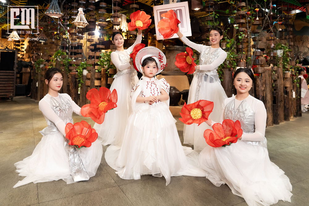 Bên cạnh đó, thương hiệu thời trang khách mời L'MME còn mang đến EM Show 2025 một thông điệp đặc biệt: Tình yêu thương gia đình chính là nguồn cảm hứng lớn lao nhất. Bộ sưu tập áo dài dành riêng cho các mẫu nhí của L'AMME không chỉ là những thiết kế thời trang, mà còn là lời nhắn nhủ về giá trị của sự kết nối và niềm vui trọn vẹn trong dịp đầu năm mới.