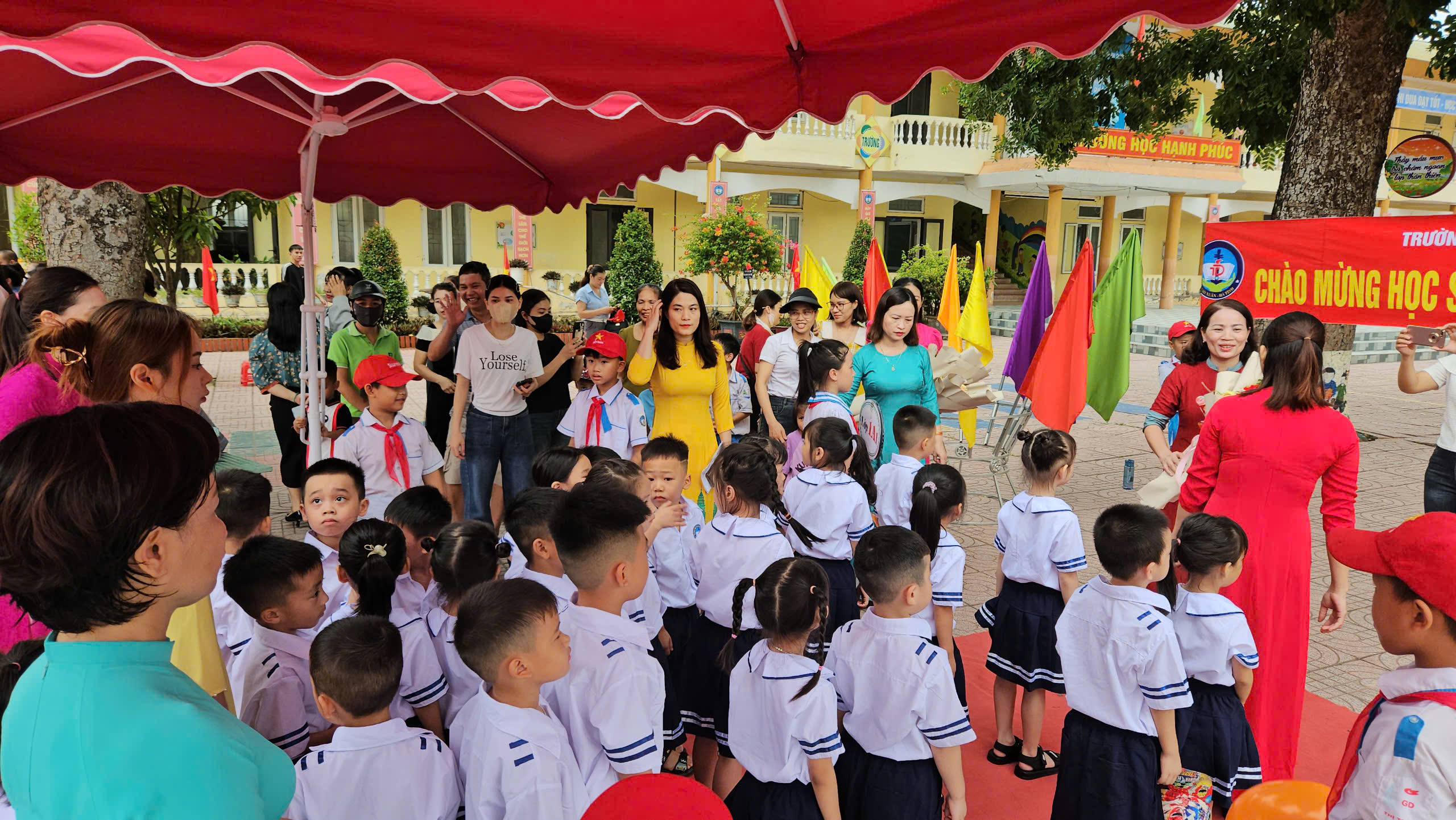 Buổi đón học sinh lớp 1 diễn ra trong không khí trang trọng và tràn đầy cảm xúc. Những ánh mắt trìu mến và giọng nói dịu dàng của thầy cô giáo như hòa cùng các bậc phụ có thêm phấn khởi, tin yêu trong mỗi ngày đến trường của các bạn nhỏ.