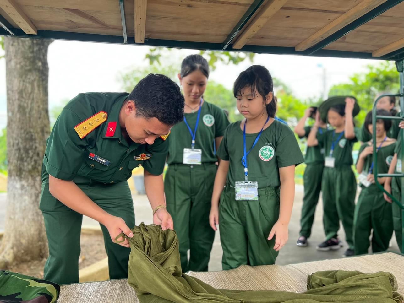 Rồi các chiến binh được học cách gấp chăn màn siêu khó mà rất hay ho, cùng các chú bộ đội tham gia thi hái mít nữa.