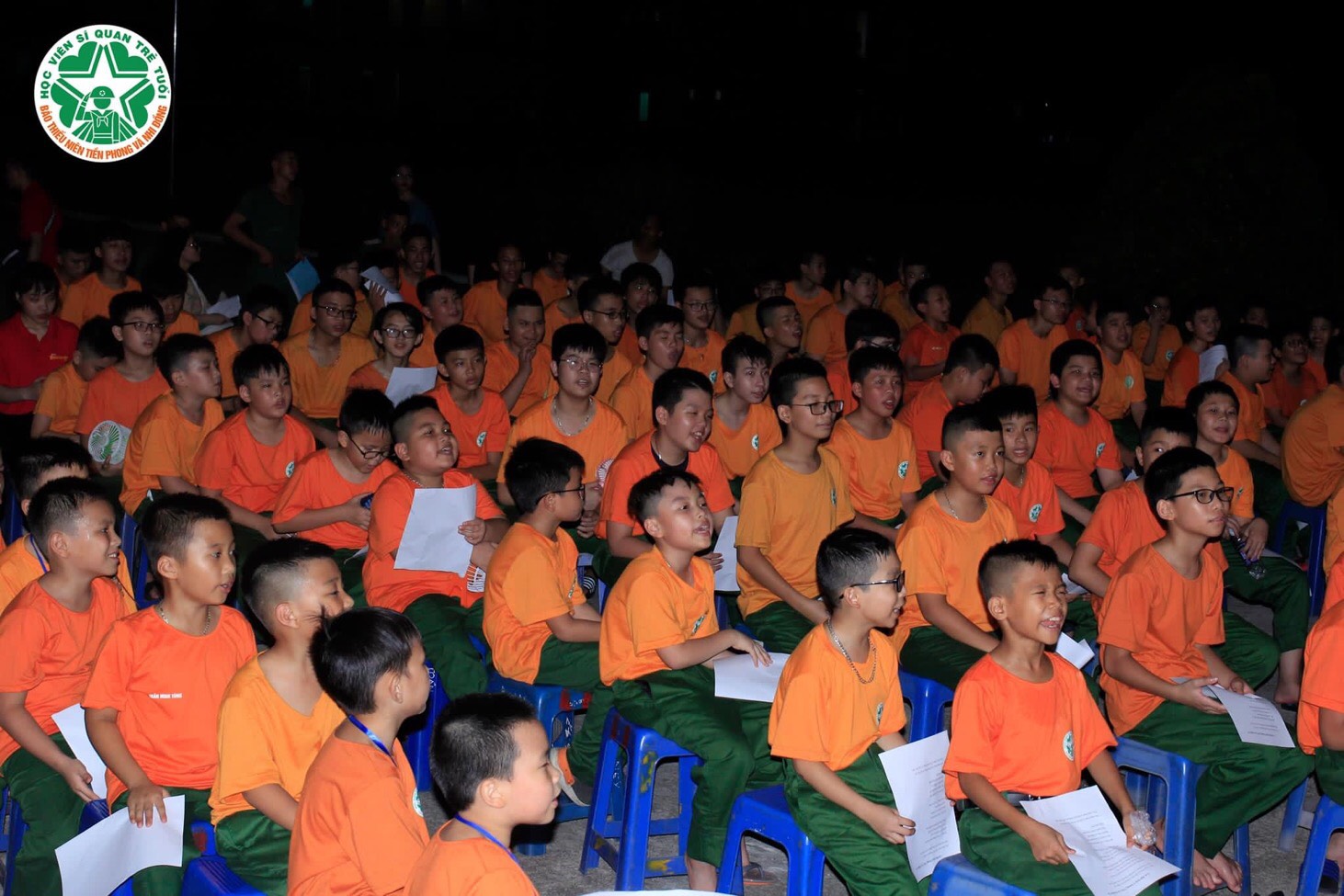 - Tối ngày đầu tiên, các bạn đã cùng nhau học bài hát "Ước mơ người chiến sĩ".