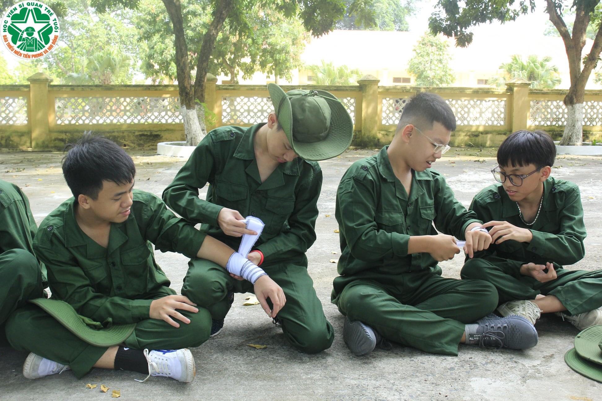 Sáng nay, học viên được đội ngũ y tế của trường Sĩ quan Lục quân 1 hướng dẫn băng bó vết thương và cầm máu trong tình huống nguy cấp. - Được nghe giới thiệu về các chế độ ngày, tuần, quân hiệu, cấp hiệu, phù hiệu và trang phục của Quân đội Nhân dân Việt Nam.