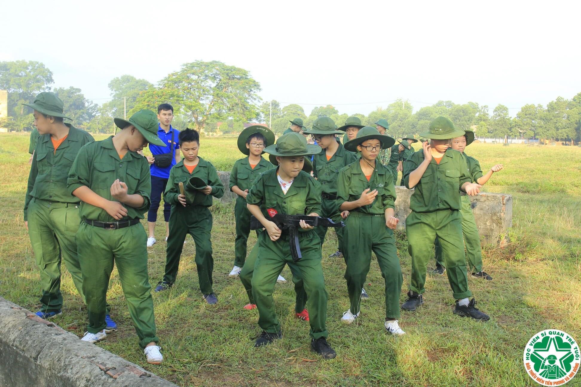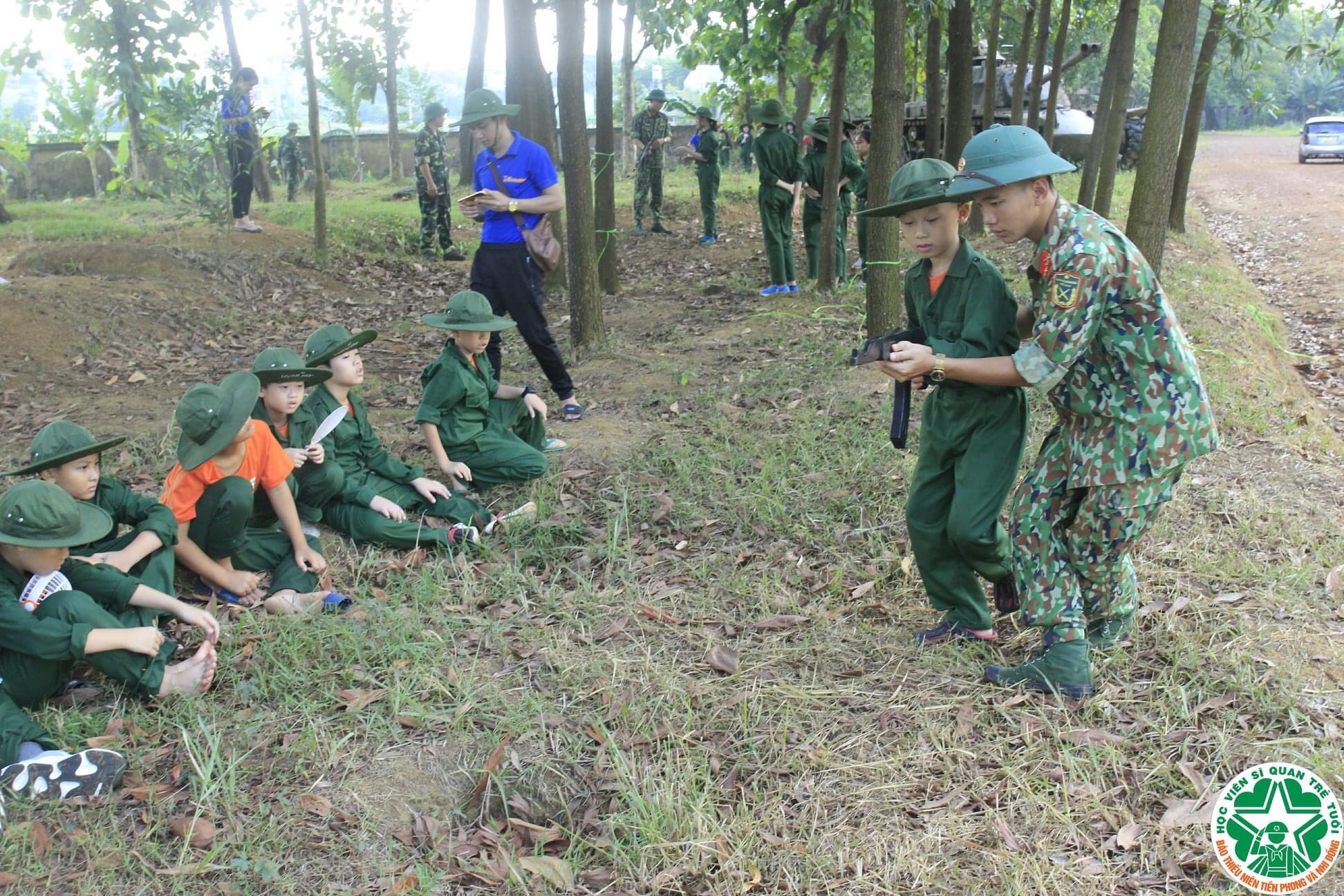 Hình ảnh các chiến sĩ nhí đang chăm chú theo dõi hướng dẫn từ Trung đội trưởng