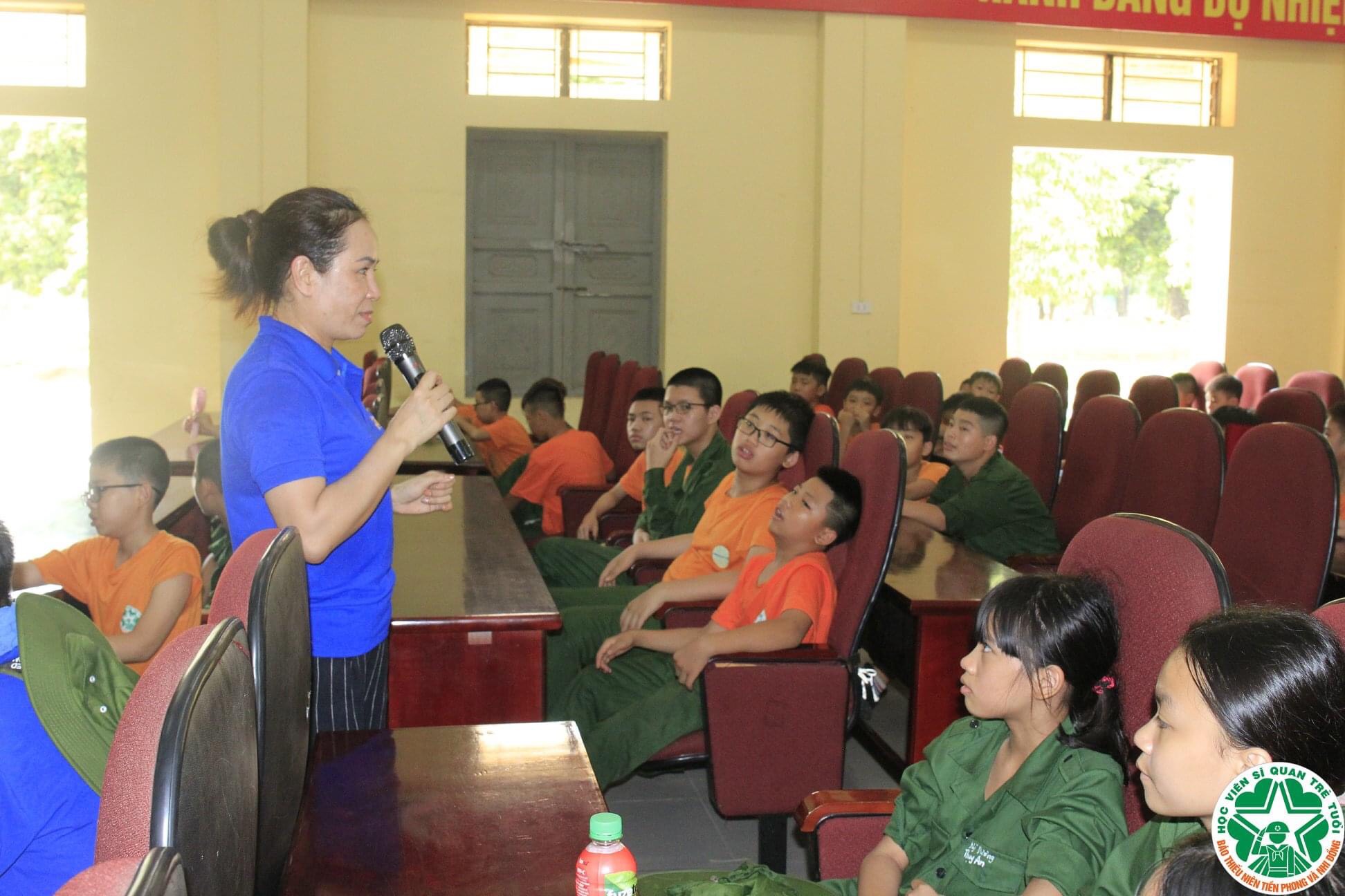 Hình ảnh Chuyên gia Giáo dục kỹ năng sống Nguyễn Lệ Thủy đang giới thiệu cho các học viên về kỹ năng phòng chống xâm hại