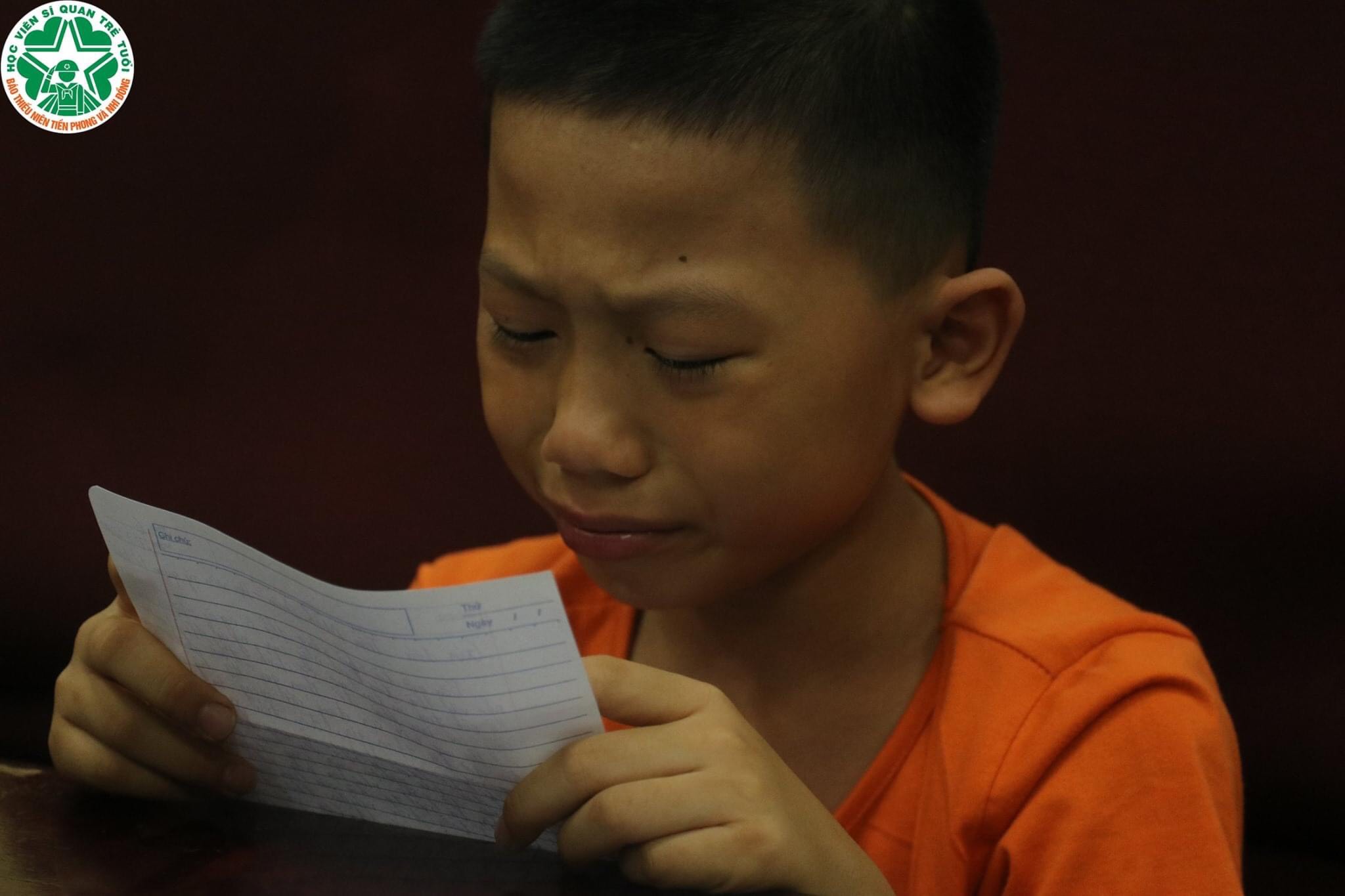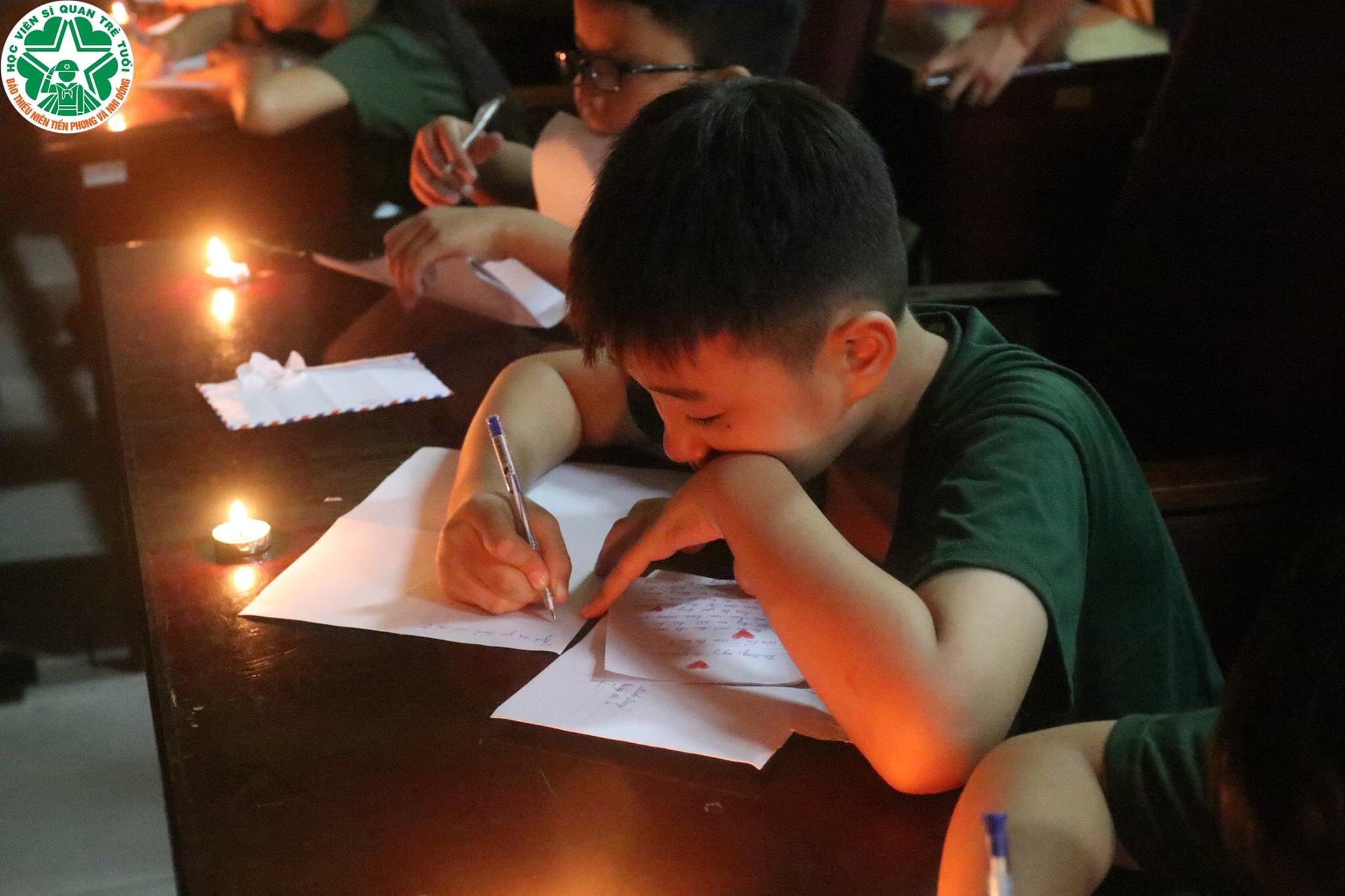 Hình ảnh các chiến sĩ nhí đang viết thư gửi về cho gia đình thân yêu sau những ngày nhập ngũ
