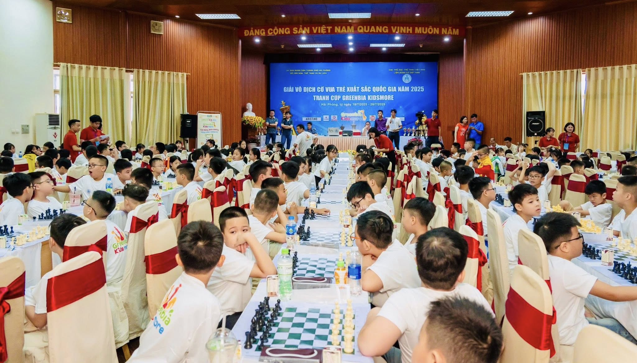 Sáng nay, ngày 19/7/2025, tại Hội trường thi đấu khách sạn BIDV Đồ Sơn (Hải Phòng), Giải Vô địch Cờ vua Trẻ Xuất sắc Quốc gia năm 2025 – Tranh cúp GREENBIA KIDSMORE đã chính thức khai mạc. Giải đấu được tổ chức bởi Sở Văn hóa, Thể thao và Du lịch TP. Hải Phòng phối hợp cùng Liên đoàn Cờ Việt Nam.