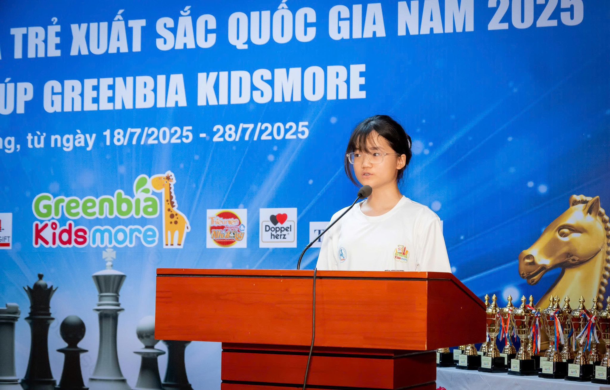 Đặc biệt, giải đấu năm nay vinh dự nhận được sự đồng hành của thương hiệu GREENBIA KIDSMORE – sản phẩm dinh dưỡng đến từ Dr. Chung’s Food (Hàn Quốc) với tổng tài trợ hơn 400 triệu đồng. Với công thức bổ sung tới 25 loại vitamin và khoáng chất, GREENBIA KIDSMORE là nguồn năng lượng lý tưởng cho các kỳ thủ nhí trong suốt quá trình thi đấu căng thẳng.