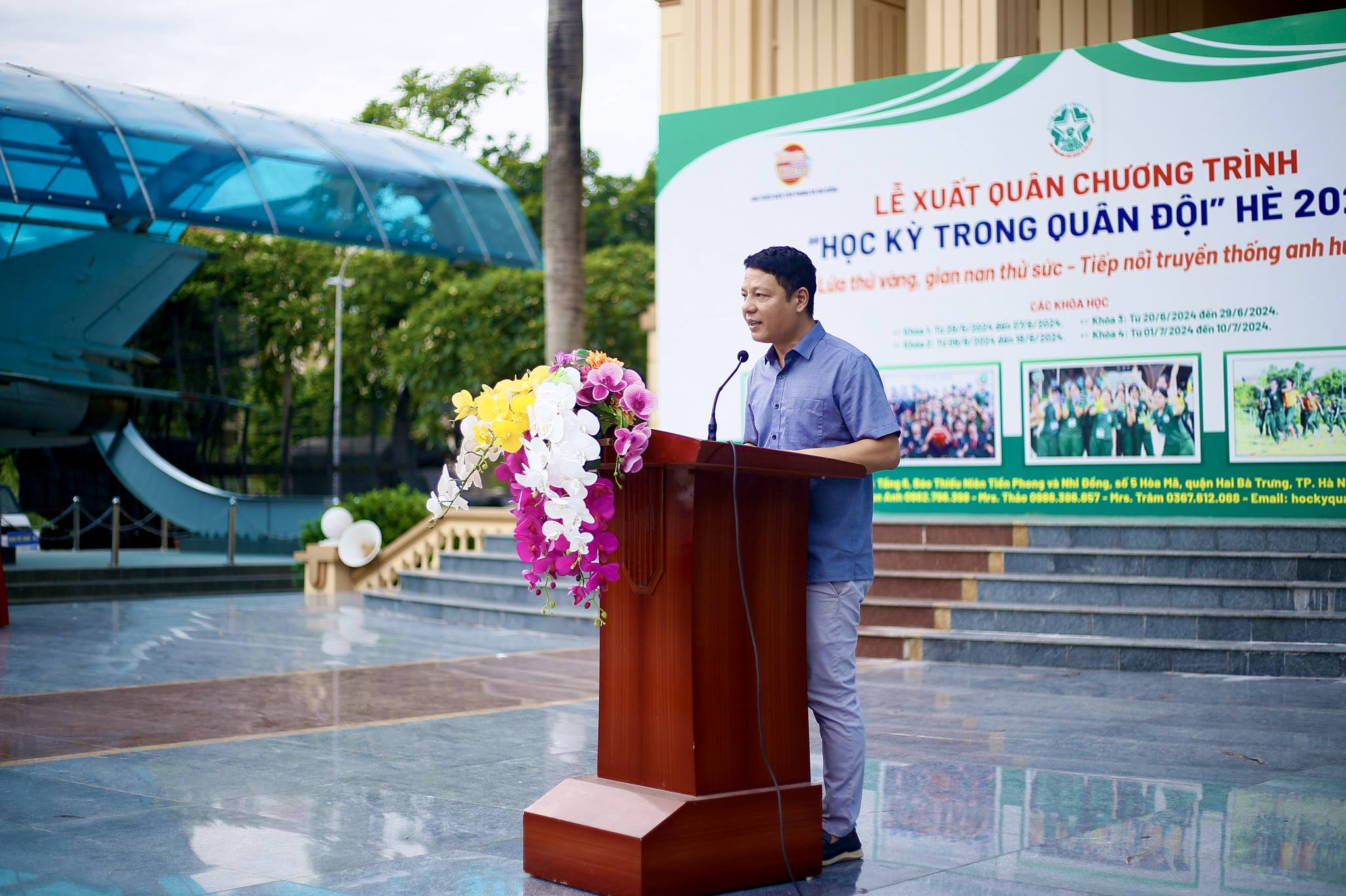Sáng 01/07/2024, lễ Xuất quân chương trình HỌC KỲ TRONG QUÂN ĐỘI KHÓA 4 - HÈ 2024 đã được tổ chức tại Bảo tàng Phòng không - Không quân (Hà Nội). BTC chương trình, gồm đại diện Lãnh đạo Báo Thiếu niên Tiền Phong & Nhi đồng và Trường Sĩ quan Lục quân 1 chào đón các chiến sĩ nhí trong không khí gần gũi, nhưng không kém phần trang nghiêm.