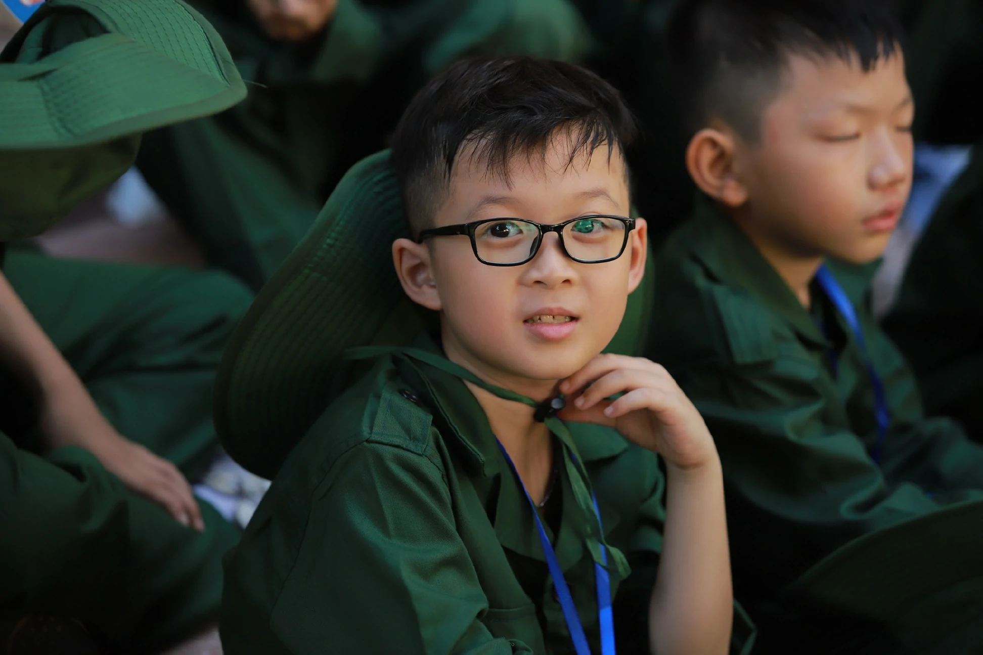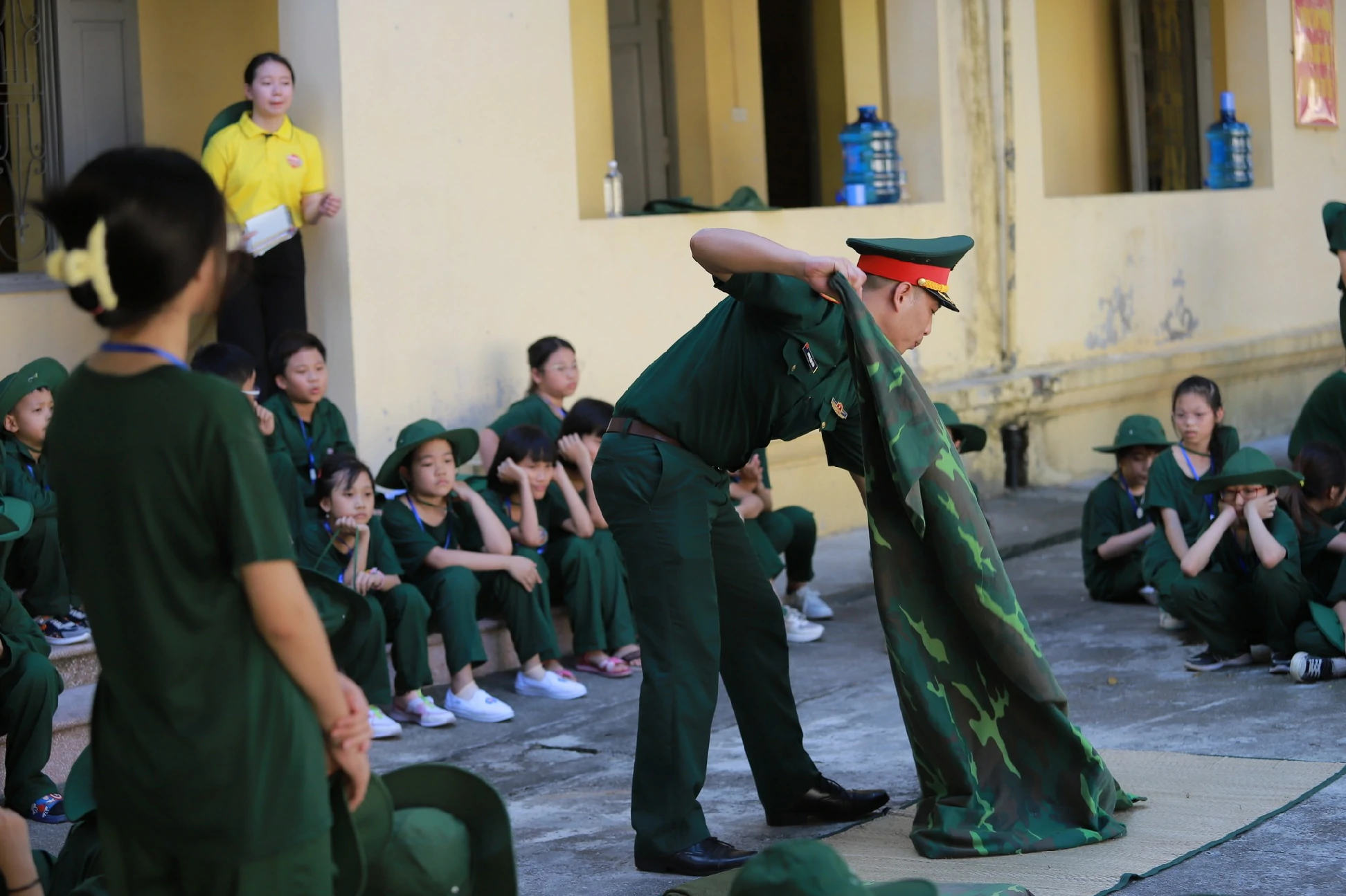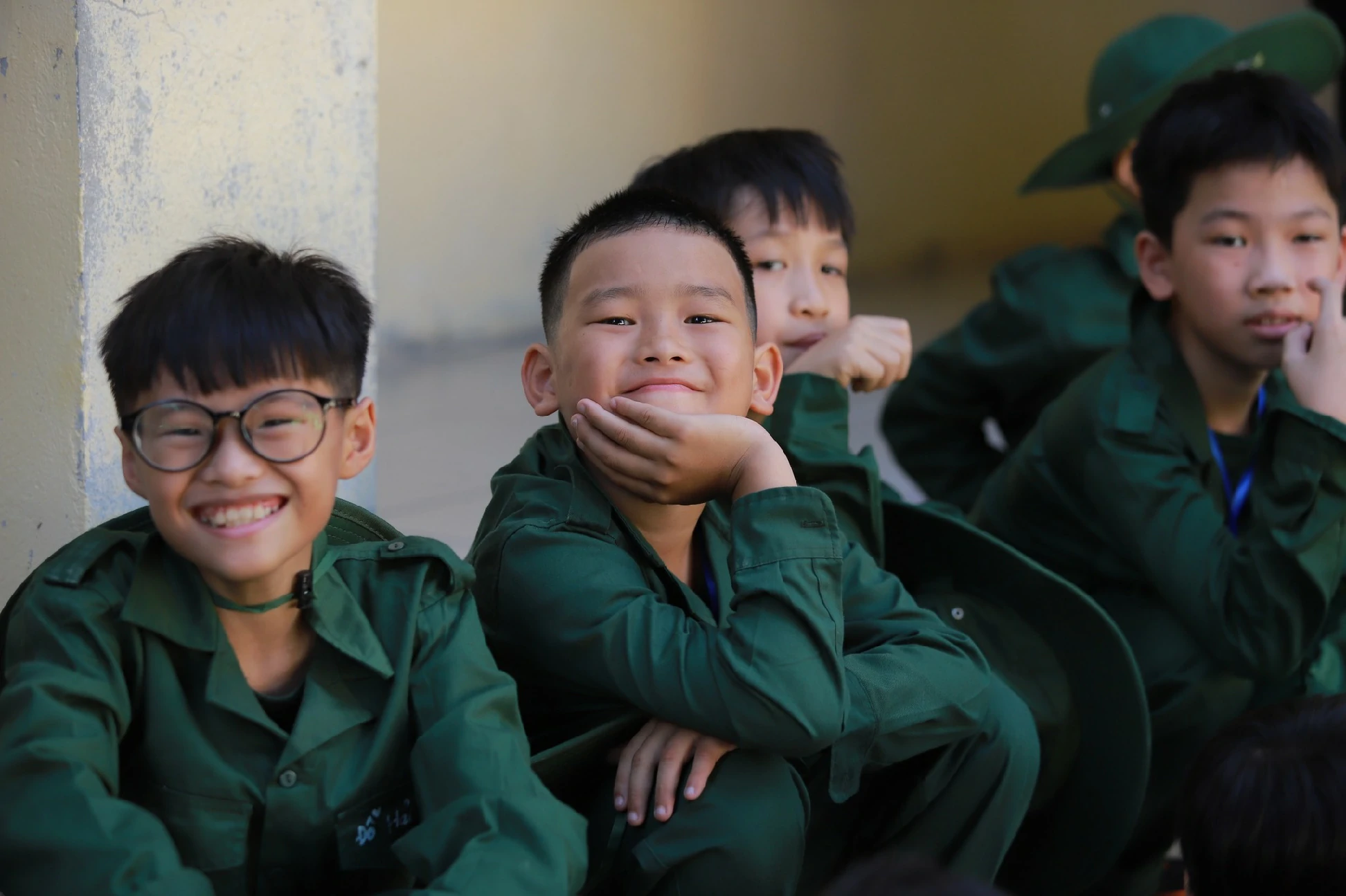 Sau khi đến địa điểm huấn luyện, các chiến sĩ đã được phân về các phòng và sinh hoạt theo tiểu đội của mình. Những giây phút làm quen còn rụt rè, e ngại lộ rõ trên khuôn mặt của các chiến sĩ nhí thật đáng yêu biết nhường nào. Nhưng với sự động viên khích lệ của các đồng chí điều phối viên, các chiến sĩ nhí của chúng ta cũng dần làm quen được với nhau, làm quen với những nội quy kỷ luật trong quân ngũ. ![]()