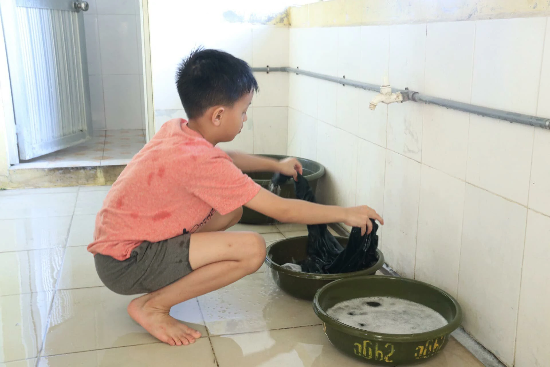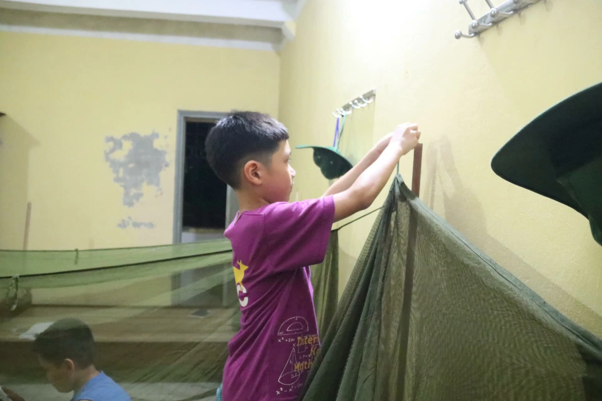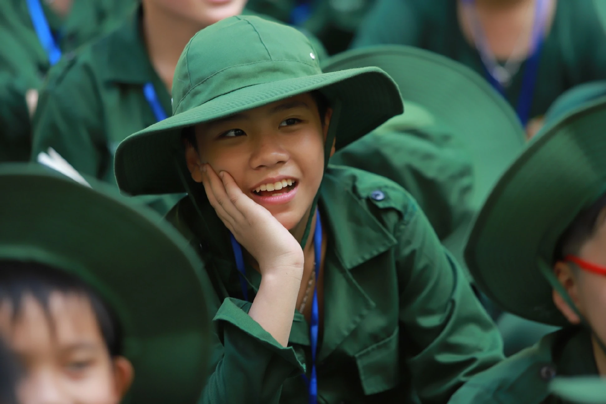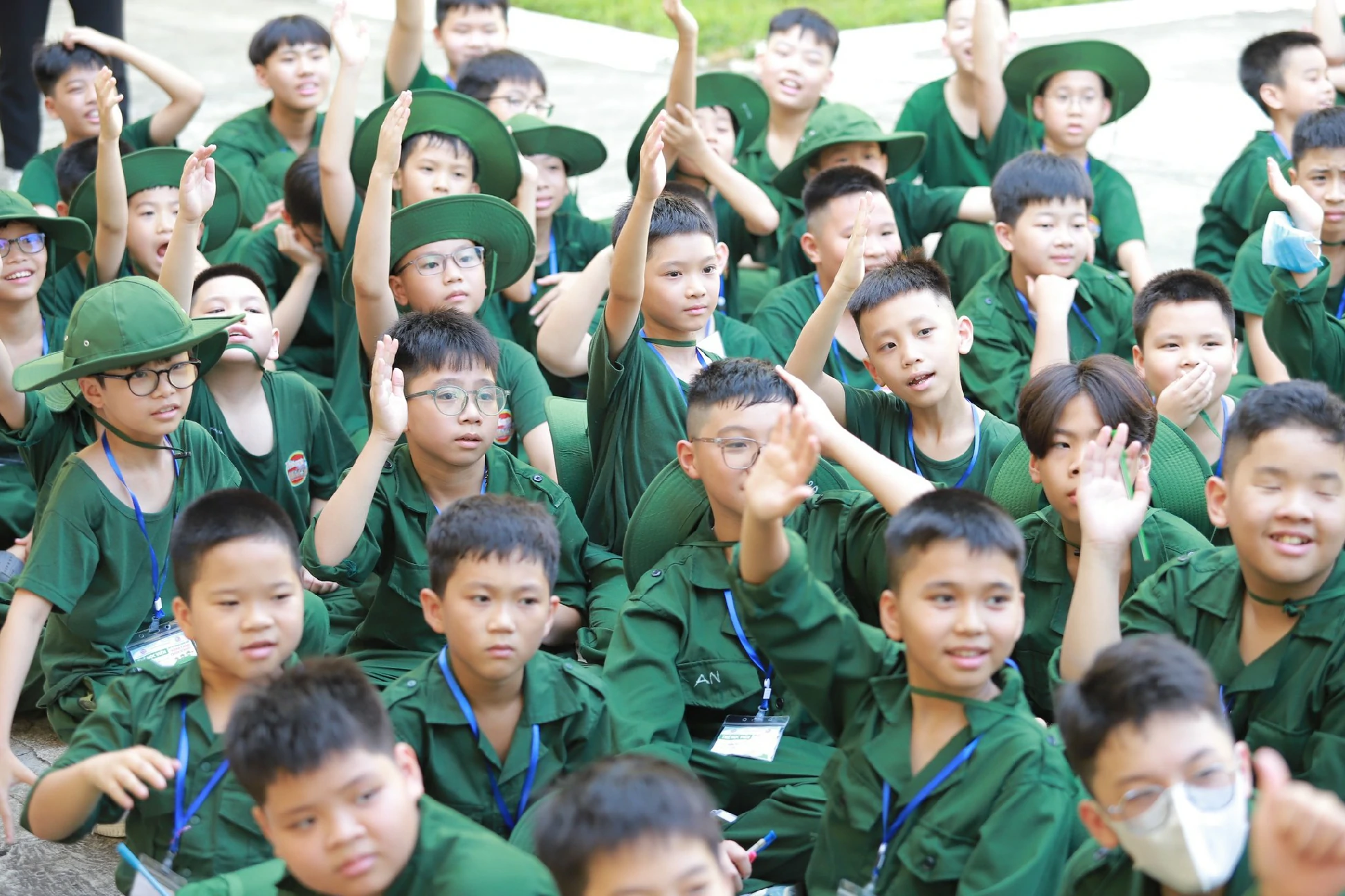 Sau khi đến địa điểm huấn luyện, các chiến sĩ đã được phân về các phòng và sinh hoạt theo tiểu đội của mình. Những giây phút làm quen còn rụt rè, e ngại lộ rõ trên khuôn mặt của các chiến sĩ nhí thật đáng yêu biết nhường nào. Nhưng với sự động viên khích lệ của các đồng chí điều phối viên, các chiến sĩ nhí của chúng ta cũng dần làm quen được với nhau, làm quen với những nội quy kỷ luật trong quân ngũ. ![]()