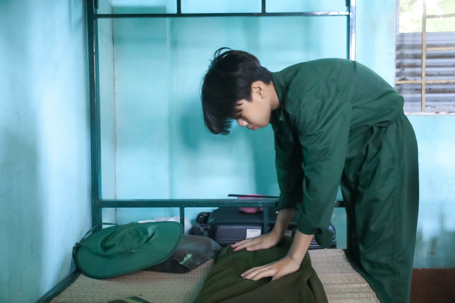 Sau khi ăn uống và nghỉ trưa xong, các chiến sĩ được tham gia kiểm tra sức khoẻ và học sắp xếp nội vụ (chăn, màn, quân tư trang cá nhân, giặt quần áo…) ![]()