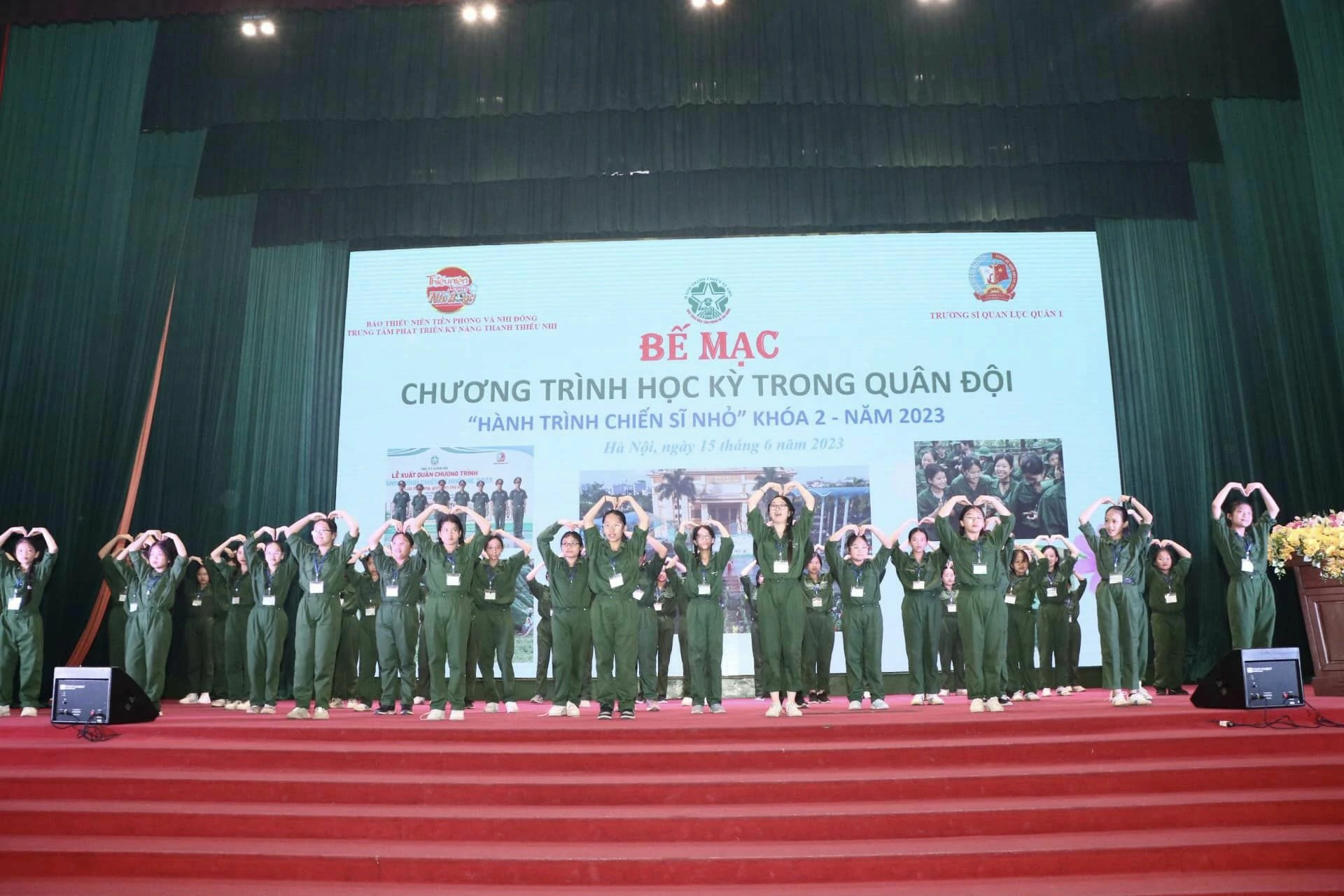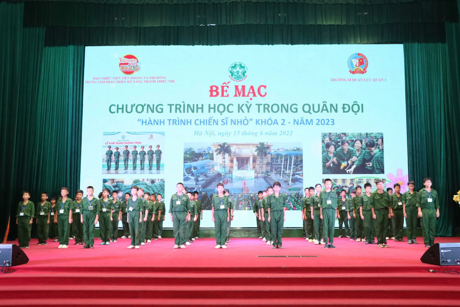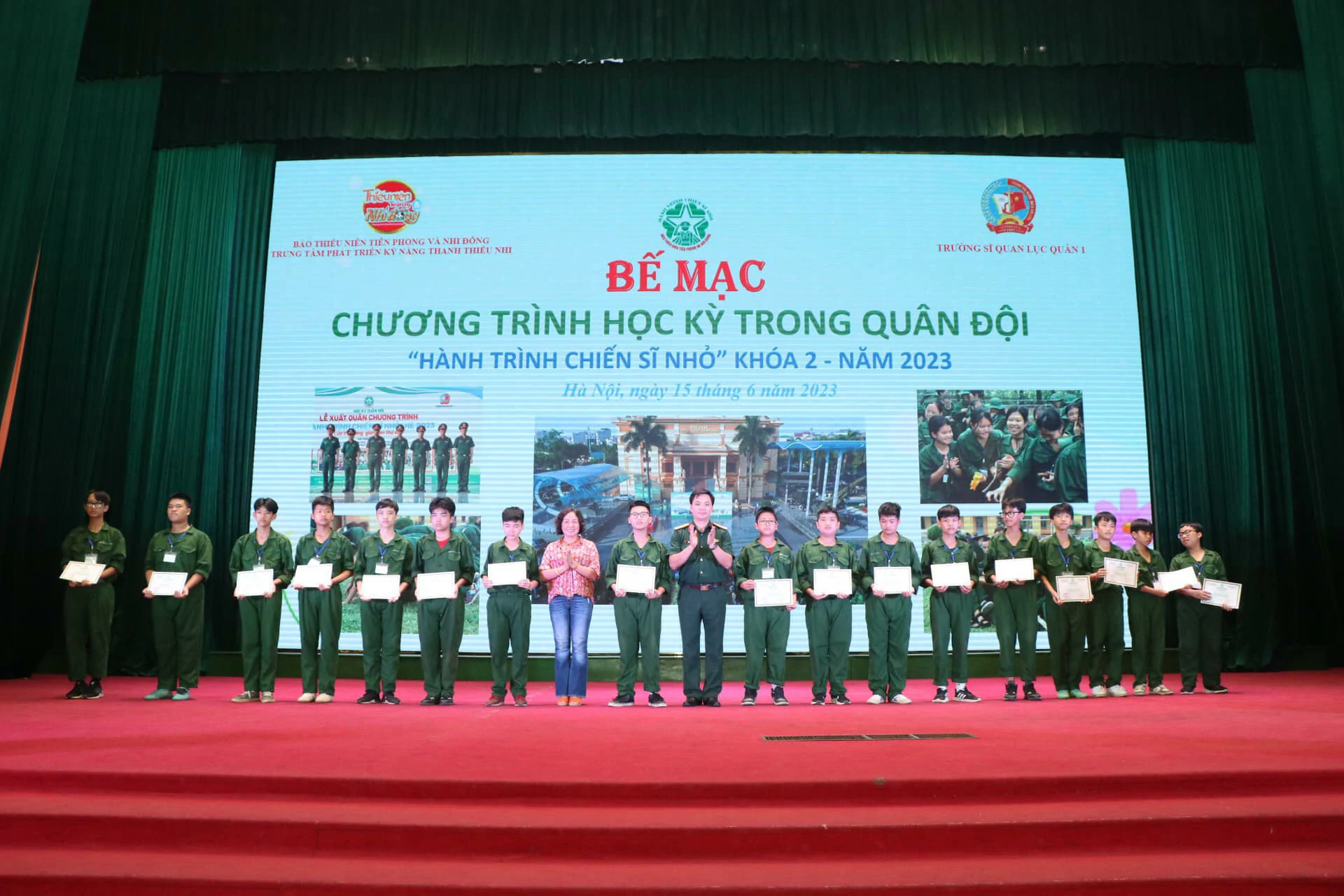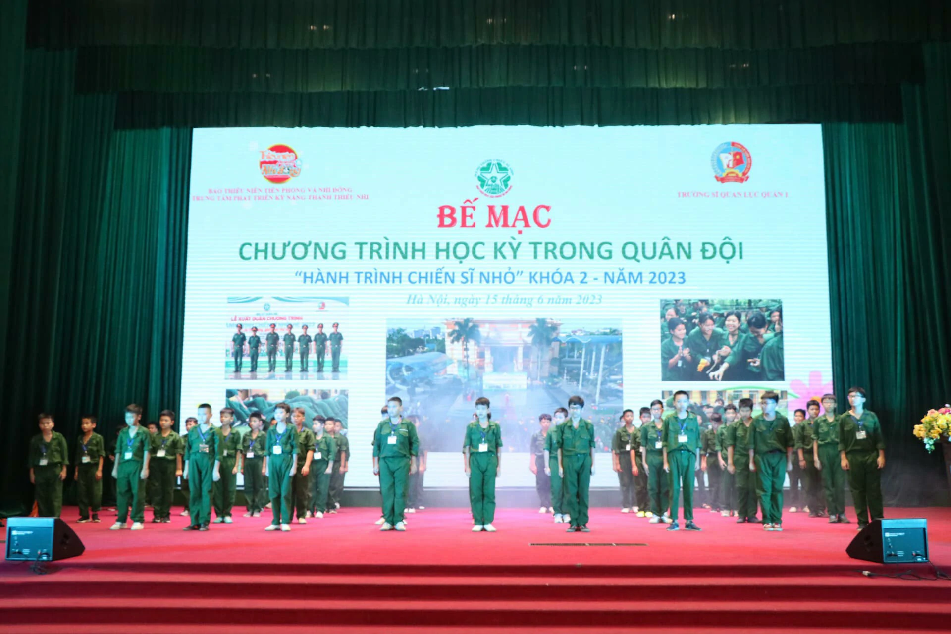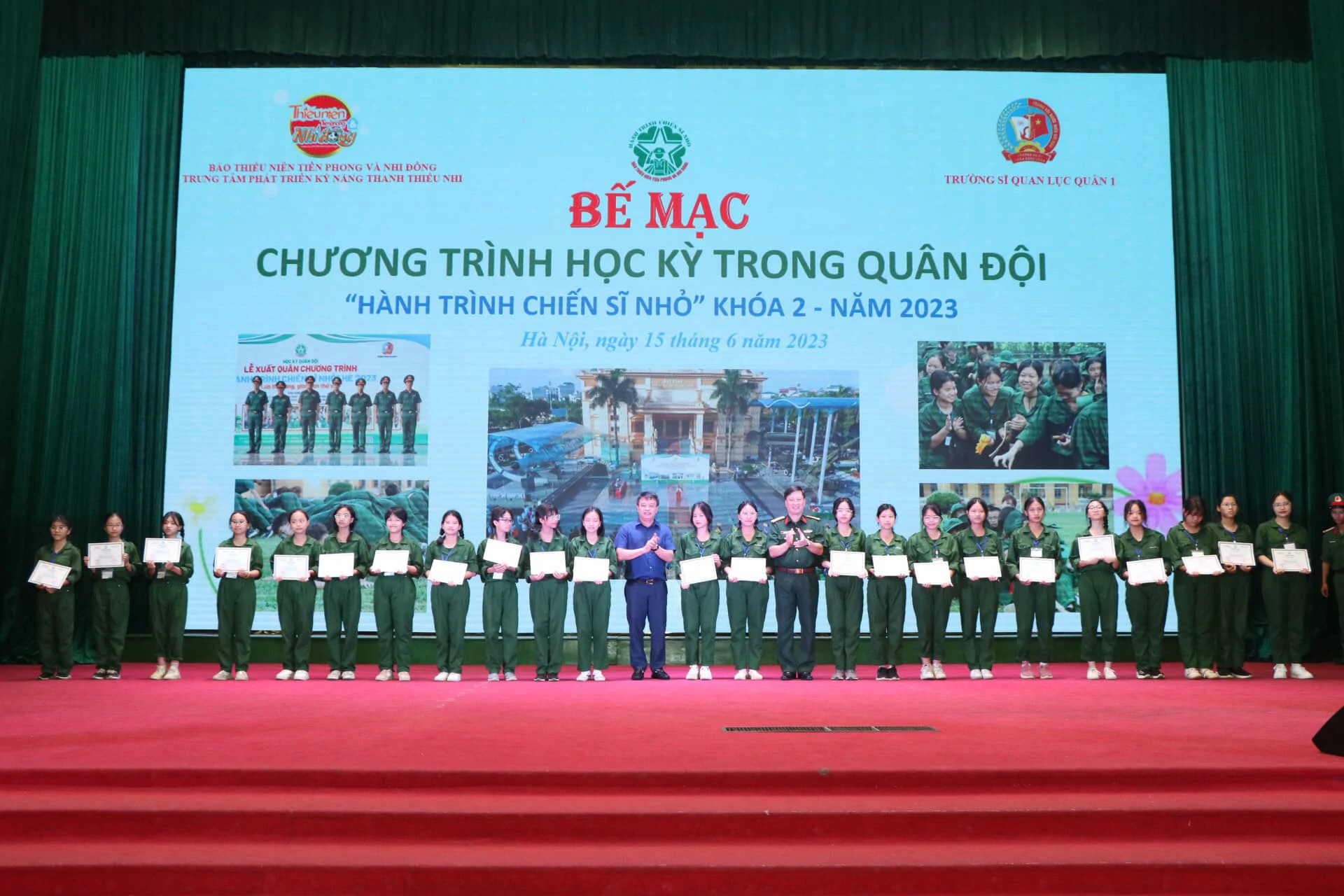 Thay mặt cho những người làm chương trình, chúng tôi xin được gửi lời cảm ơn chân thành nhất đến ban lãnh đạo, cán bộ Trường Sĩ quan Lục quân 1 đã quan tâm, chỉ sát sao để chương trình được diễn ra thành công. Cảm ơn Quý vị phụ huynh đã tin tưởng, ủng hộ và tạo điều kiện cho con em mình tham gia chương trình. Đặc biệt, xin được gửi lời cảm ơn sâu sắc nhất đến hơn 250 chiến sĩ nhí của chúng ta đã luôn cố gắng, nỗ lực trong suốt 8 ngày vừa qua. ![]()
