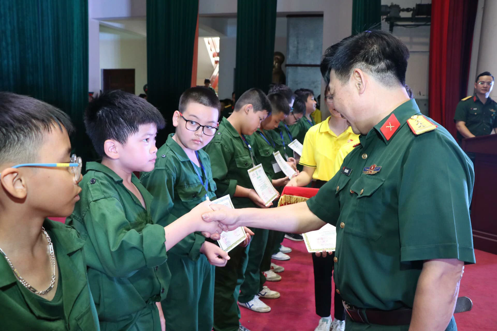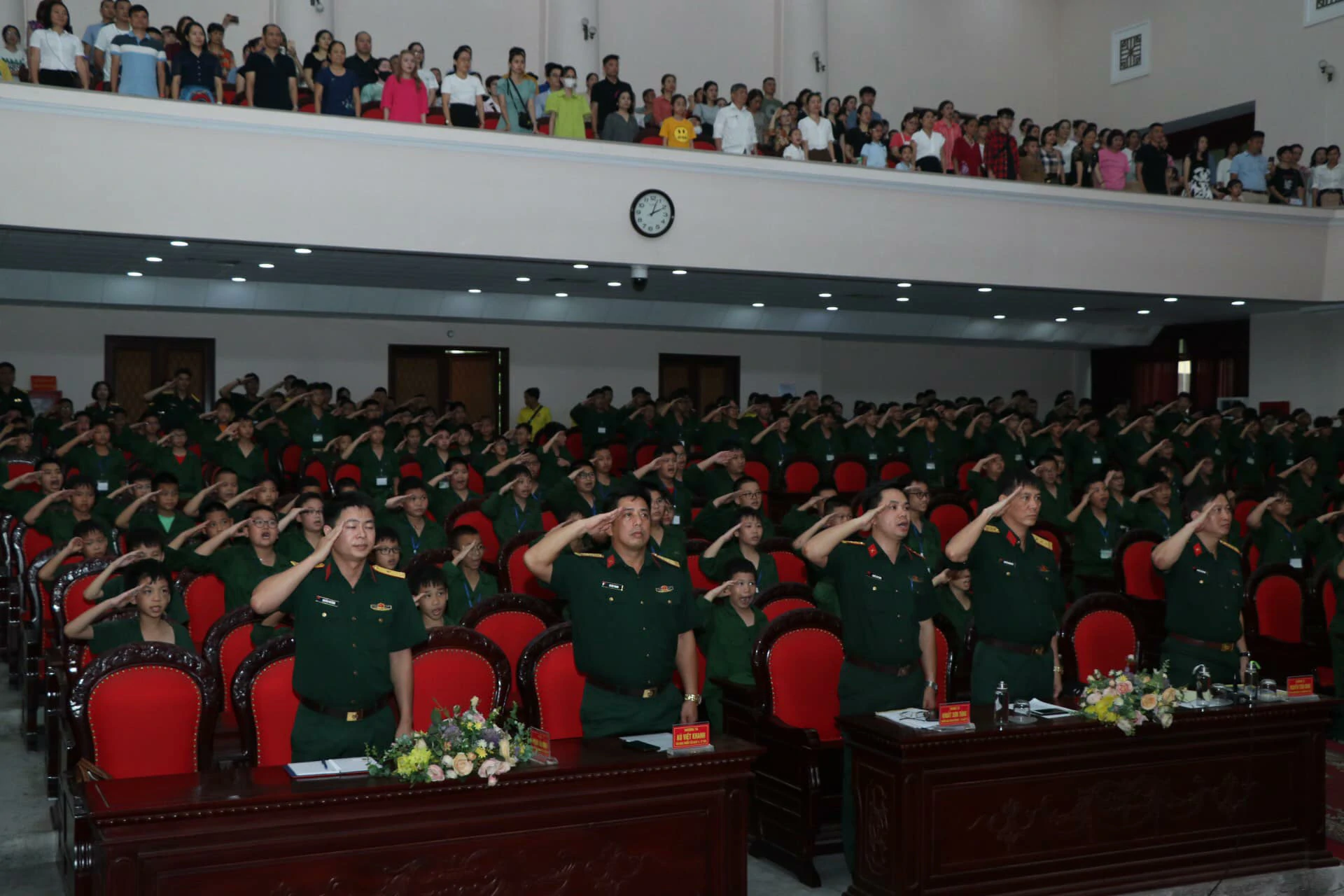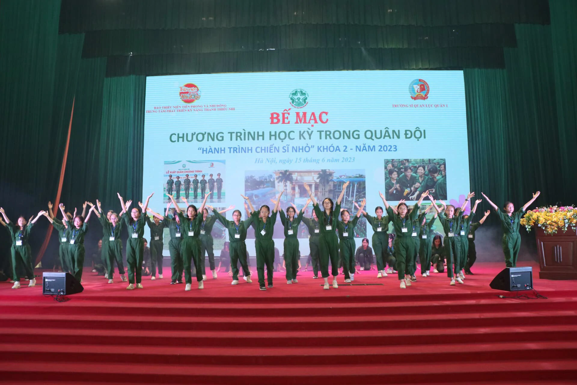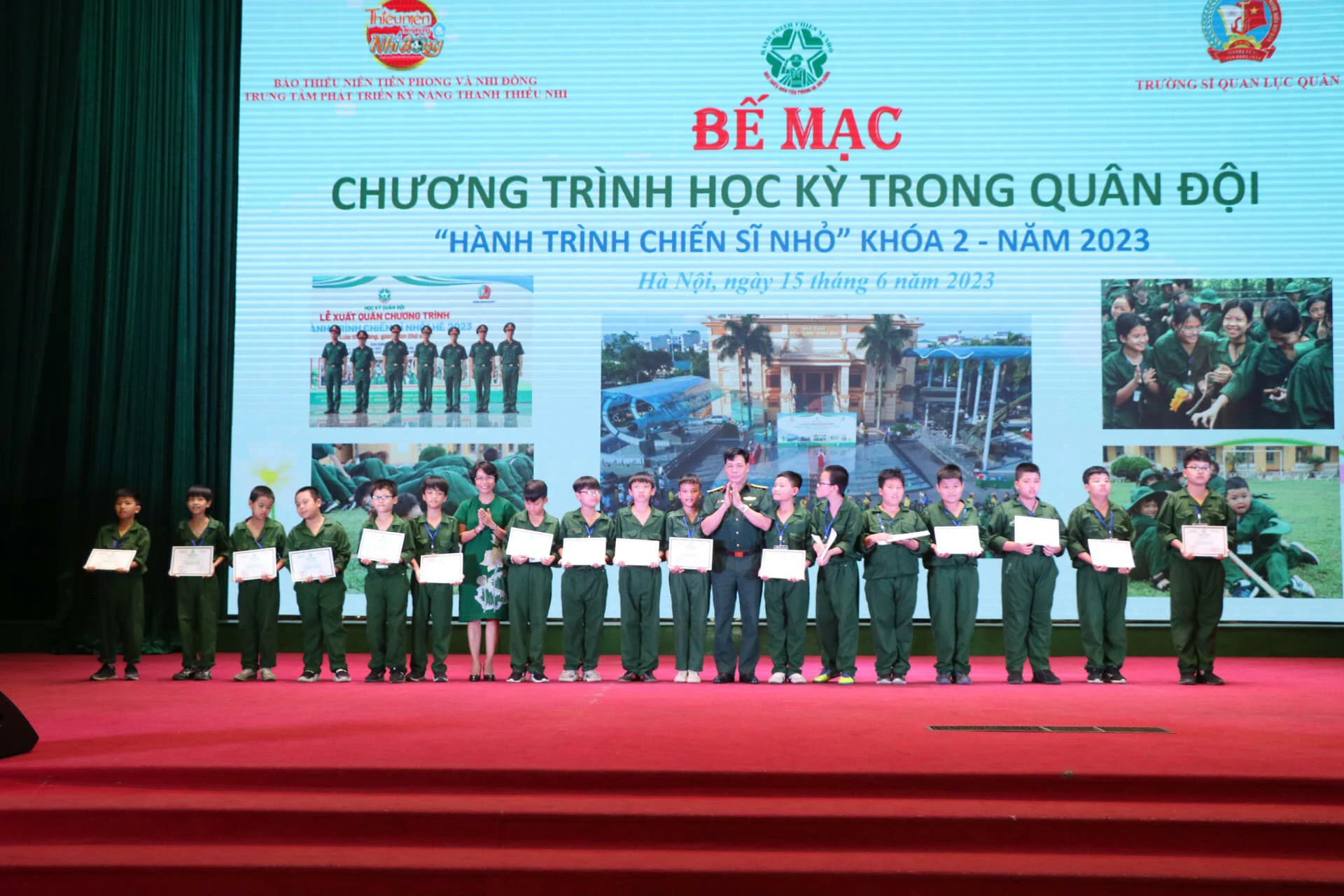 Thay mặt cho những người làm chương trình, chúng tôi xin được gửi lời cảm ơn chân thành nhất đến ban lãnh đạo, cán bộ Trường Sĩ quan Lục quân 1 đã quan tâm, chỉ sát sao để chương trình được diễn ra thành công. Cảm ơn Quý vị phụ huynh đã tin tưởng, ủng hộ và tạo điều kiện cho con em mình tham gia chương trình. Đặc biệt, xin được gửi lời cảm ơn sâu sắc nhất đến hơn 250 chiến sĩ nhí của chúng ta đã luôn cố gắng, nỗ lực trong suốt 8 ngày vừa qua. ![]()