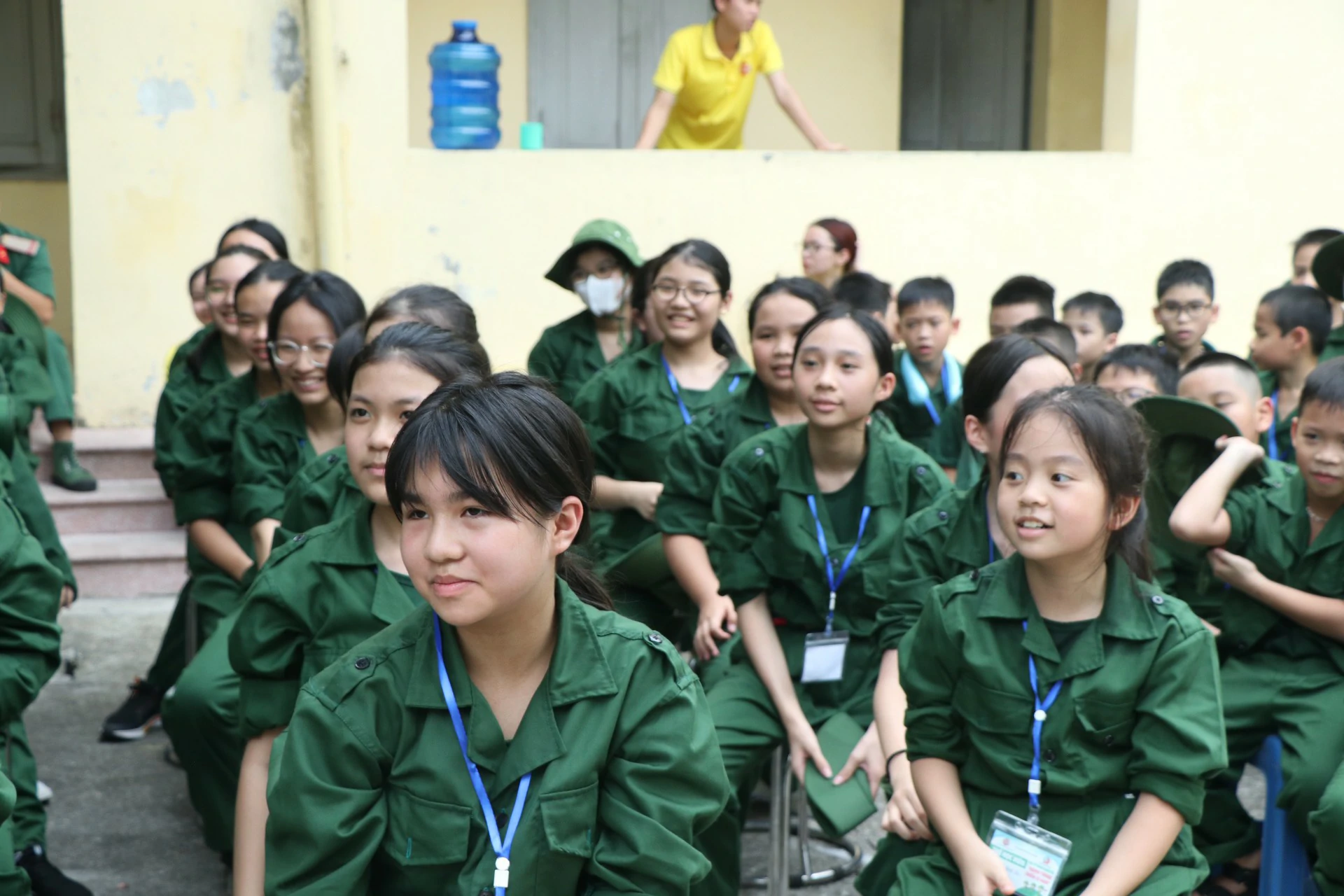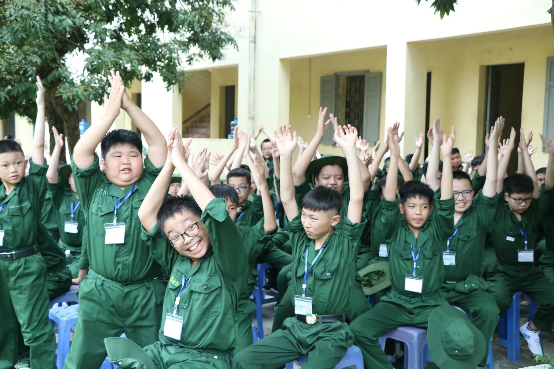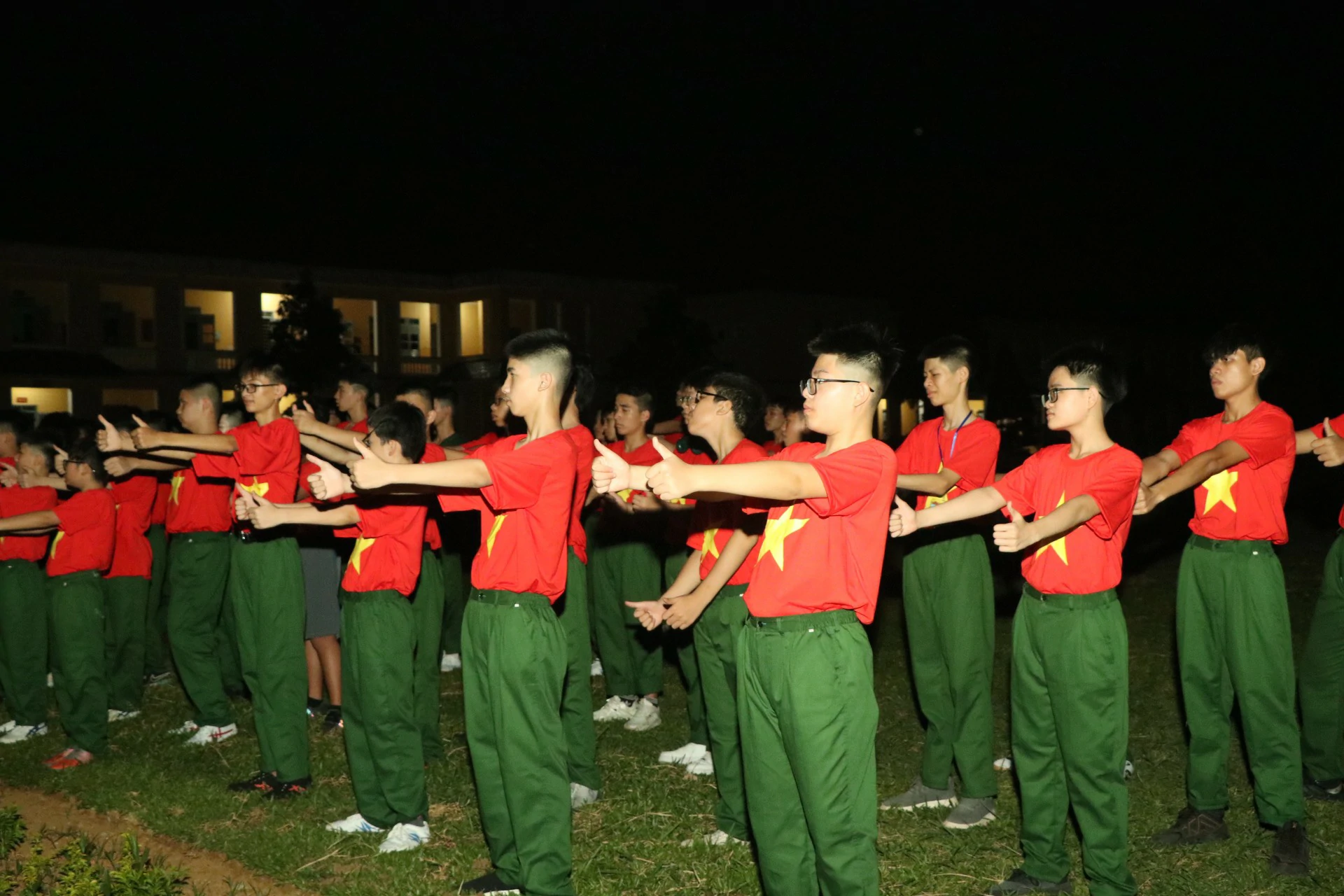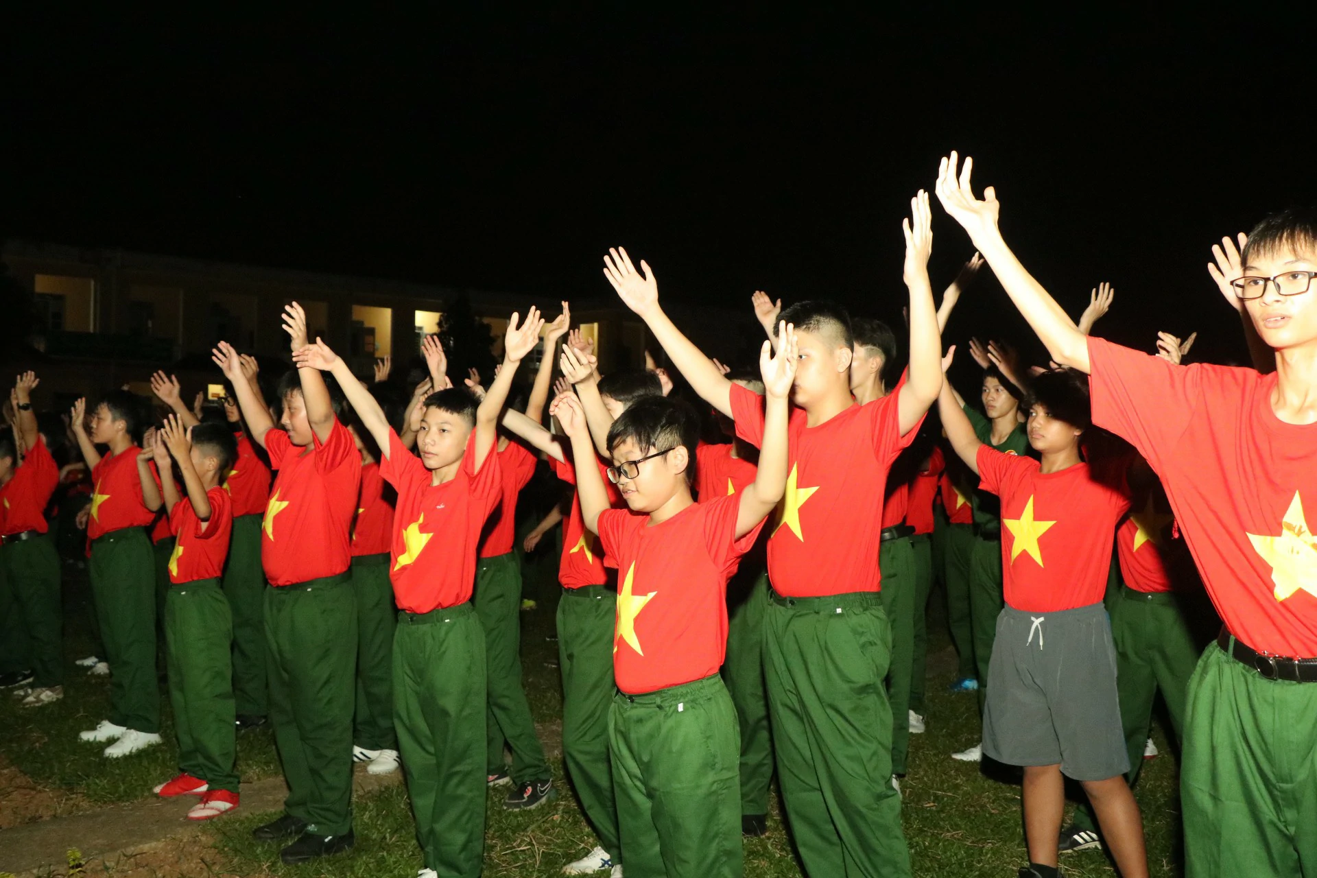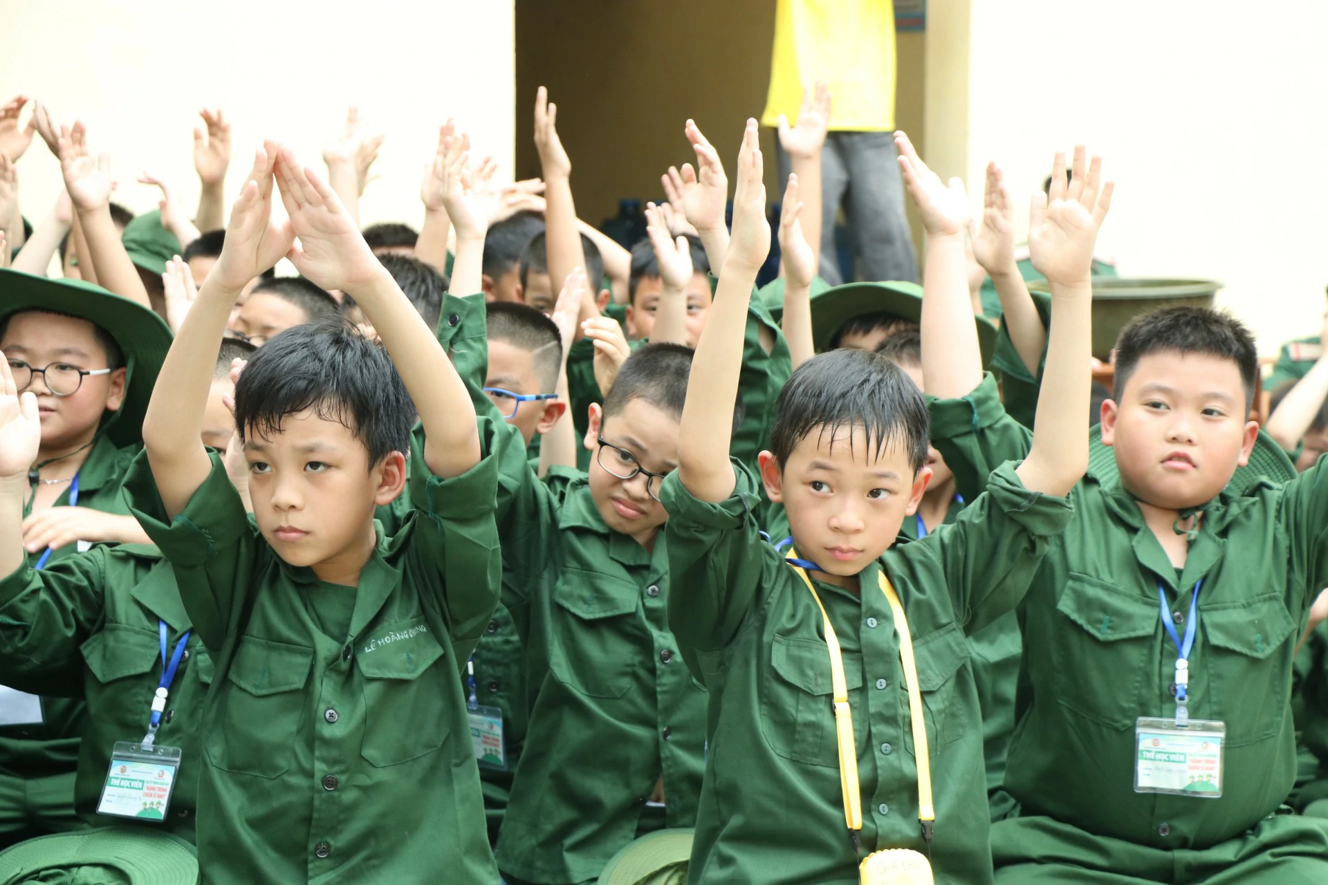 Sau khi đến địa điểm huấn luyện, các chiến sĩ đã được phân về các phòng và sinh hoạt theo tiểu đội của mình. Những giây phút làm quen còn rụt rè, e ngại lộ rõ trên khuôn mặt của các chiến sĩ nhí thật đáng yêu biết nhường nào. Nhưng với sự động viên khích lệ của các đồng chí điều phối viên, các chiến sĩ nhí của chúng ta cũng dần làm quen được với nhau, làm quen với những nội quy kỷ luật trong quân ngũ. ![]()