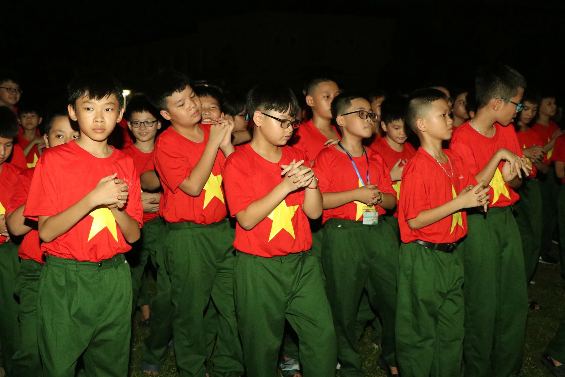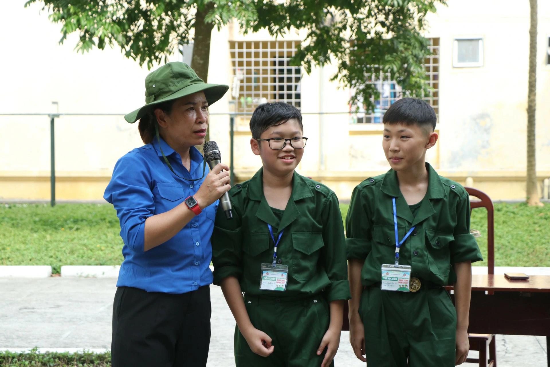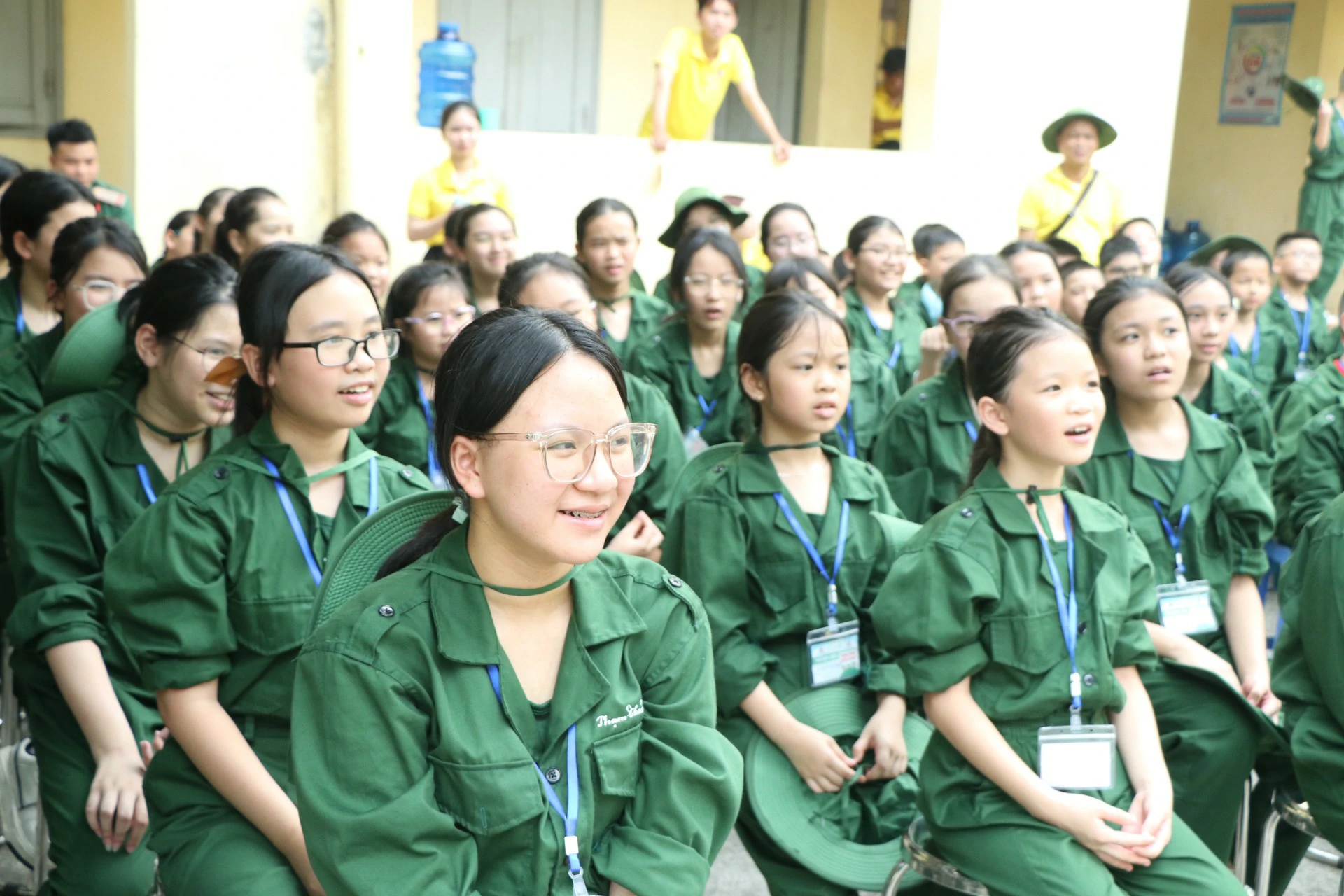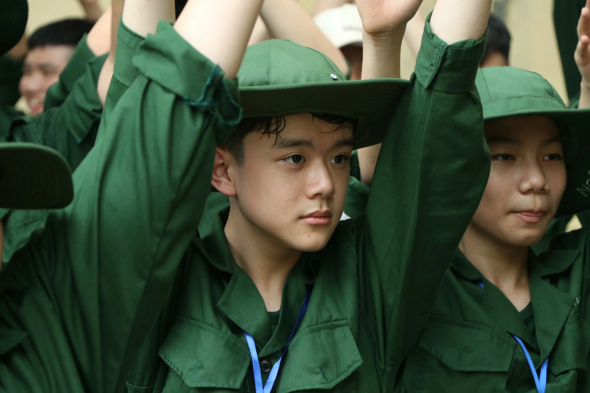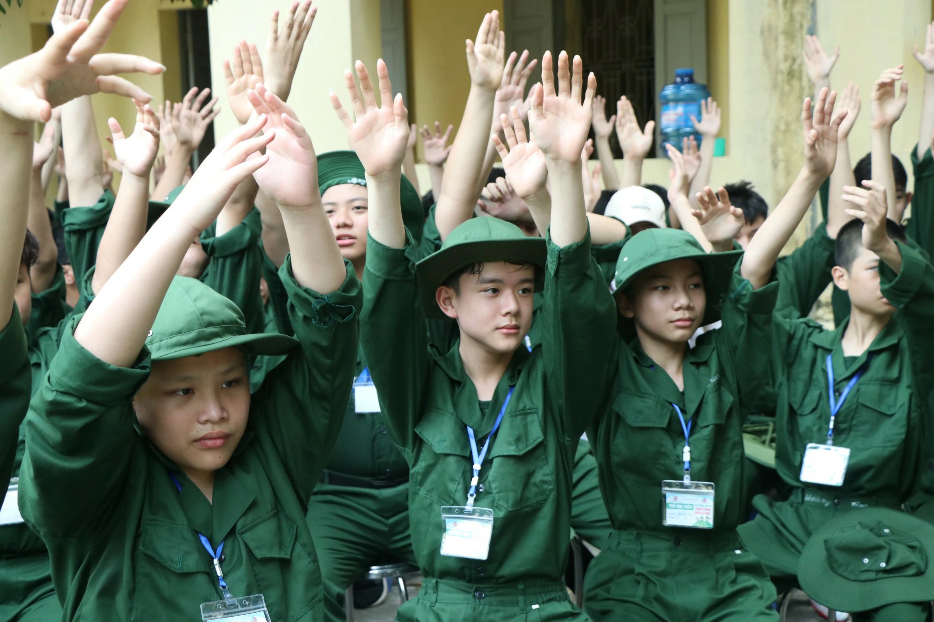 Sau khi đến địa điểm huấn luyện, các chiến sĩ đã được phân về các phòng và sinh hoạt theo tiểu đội của mình. Những giây phút làm quen còn rụt rè, e ngại lộ rõ trên khuôn mặt của các chiến sĩ nhí thật đáng yêu biết nhường nào. Nhưng với sự động viên khích lệ của các đồng chí điều phối viên, các chiến sĩ nhí của chúng ta cũng dần làm quen được với nhau, làm quen với những nội quy kỷ luật trong quân ngũ. ![]()