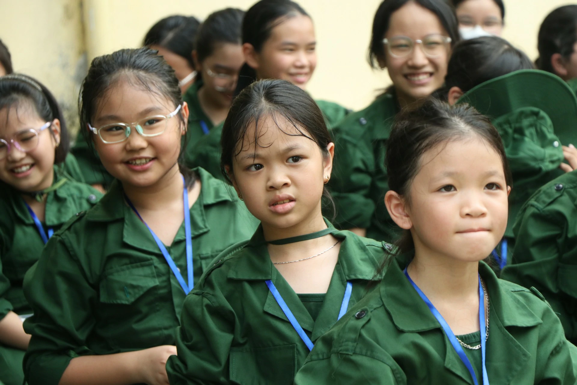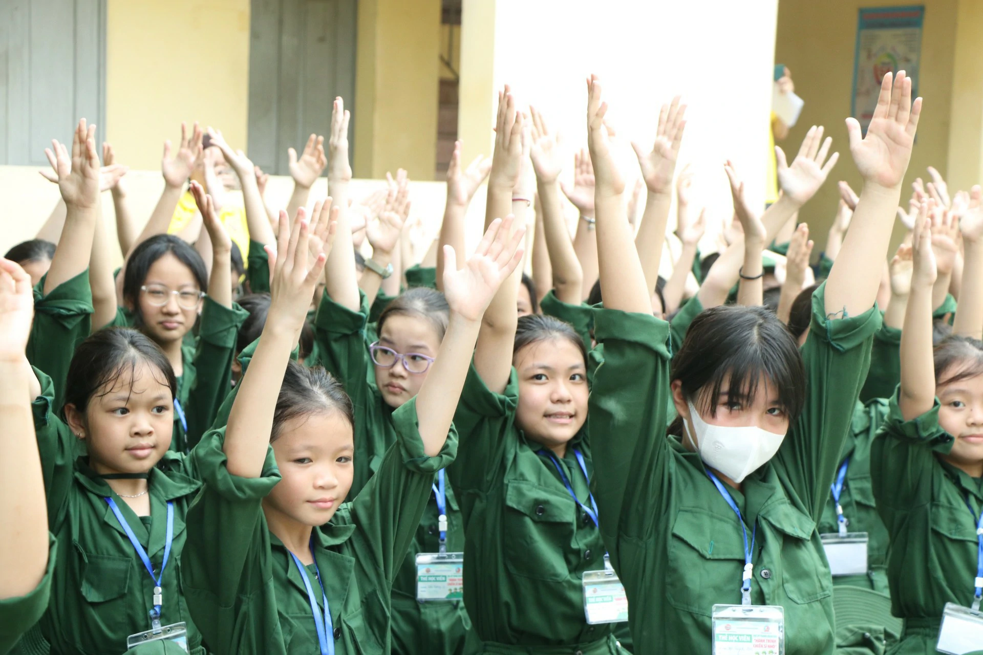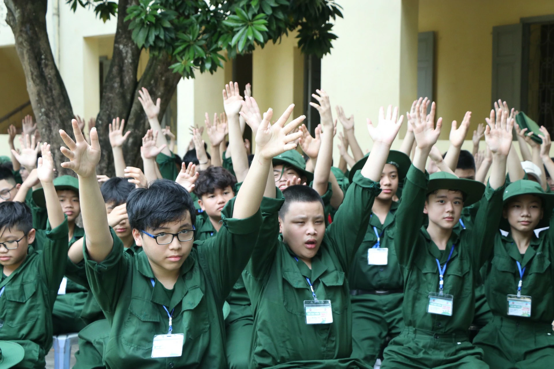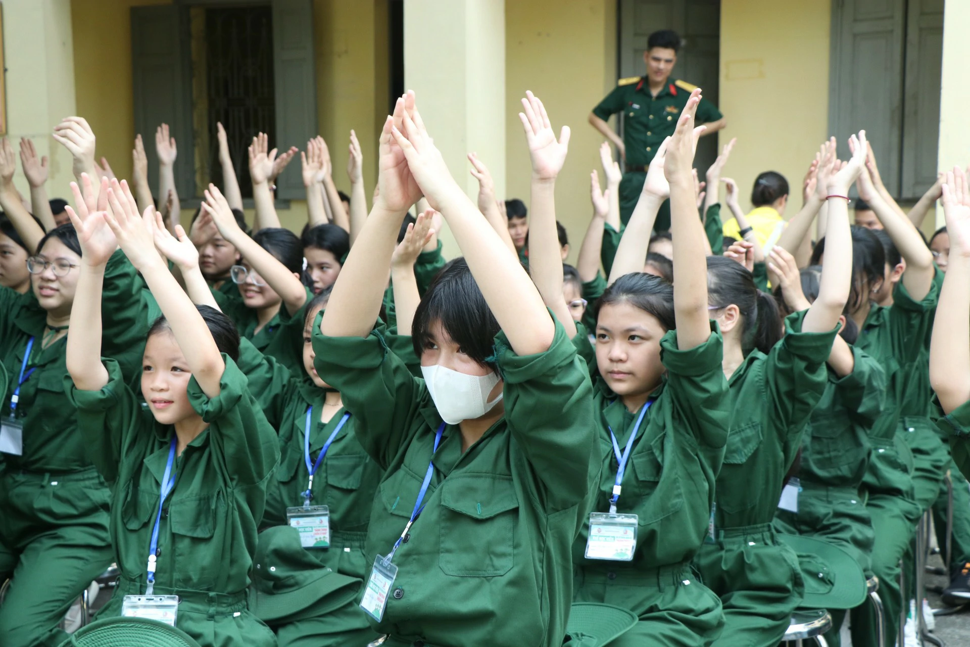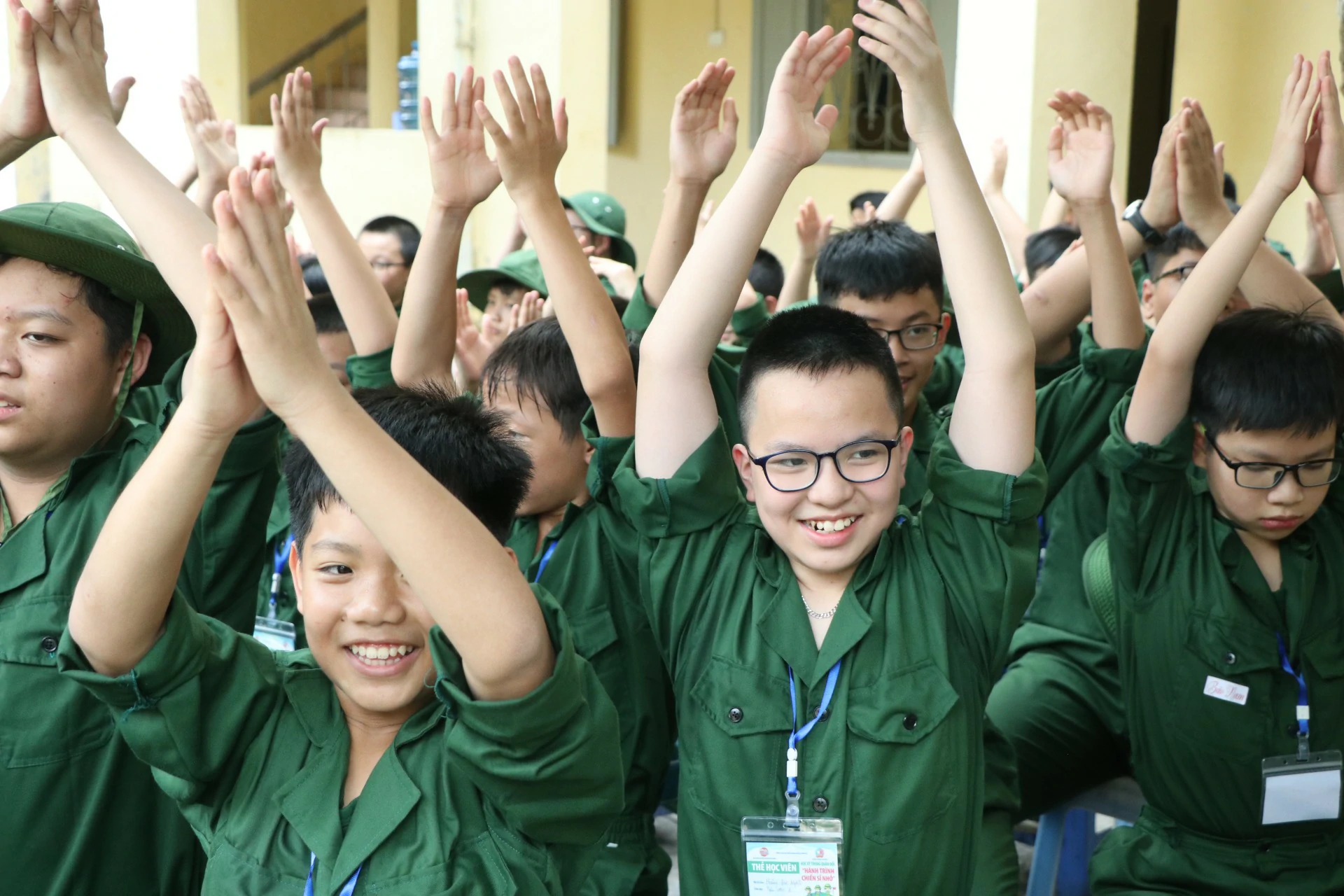 Sau khi đến địa điểm huấn luyện, các chiến sĩ đã được phân về các phòng và sinh hoạt theo tiểu đội của mình. Những giây phút làm quen còn rụt rè, e ngại lộ rõ trên khuôn mặt của các chiến sĩ nhí thật đáng yêu biết nhường nào. Nhưng với sự động viên khích lệ của các đồng chí điều phối viên, các chiến sĩ nhí của chúng ta cũng dần làm quen được với nhau, làm quen với những nội quy kỷ luật trong quân ngũ. ![]()