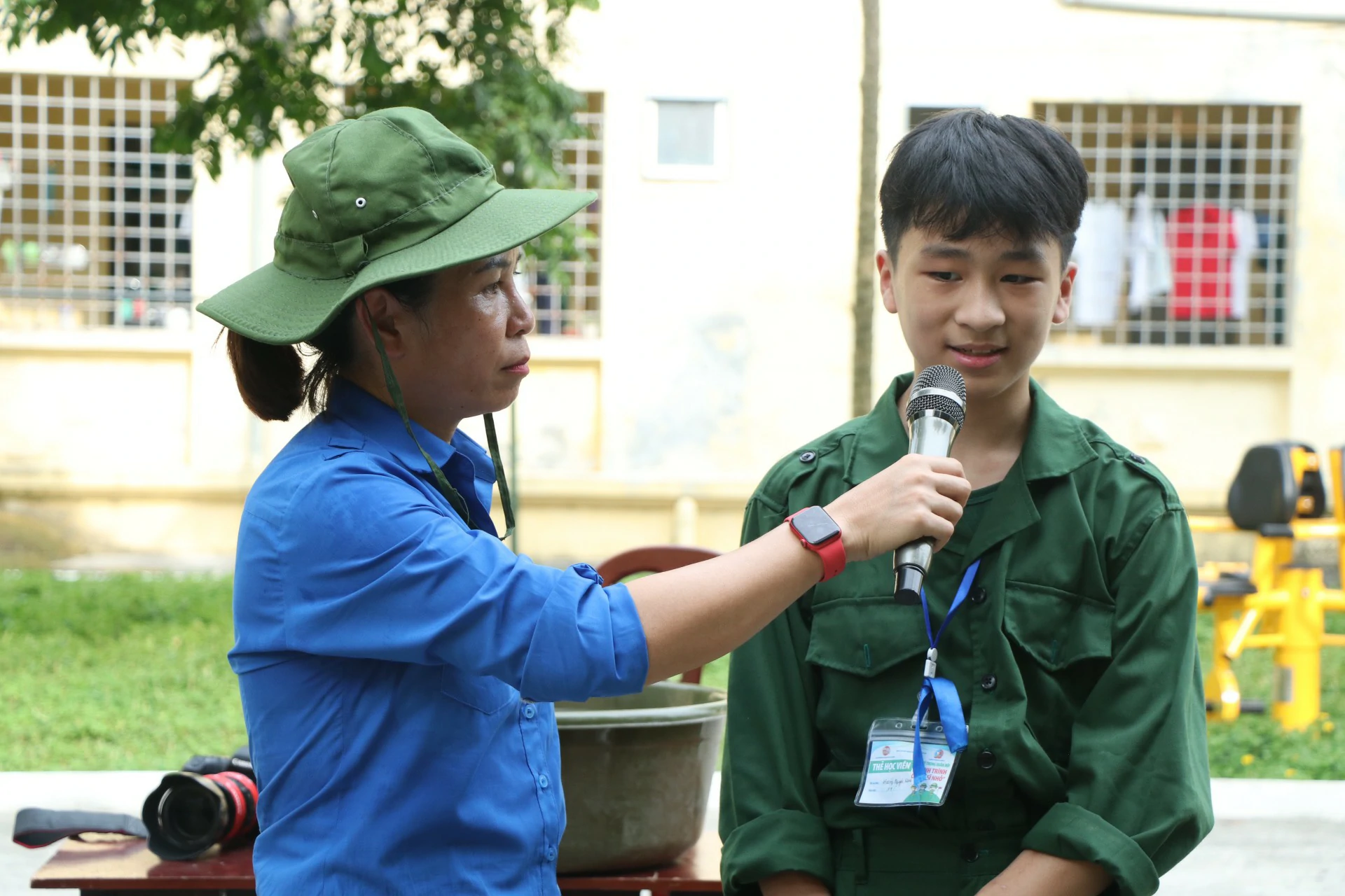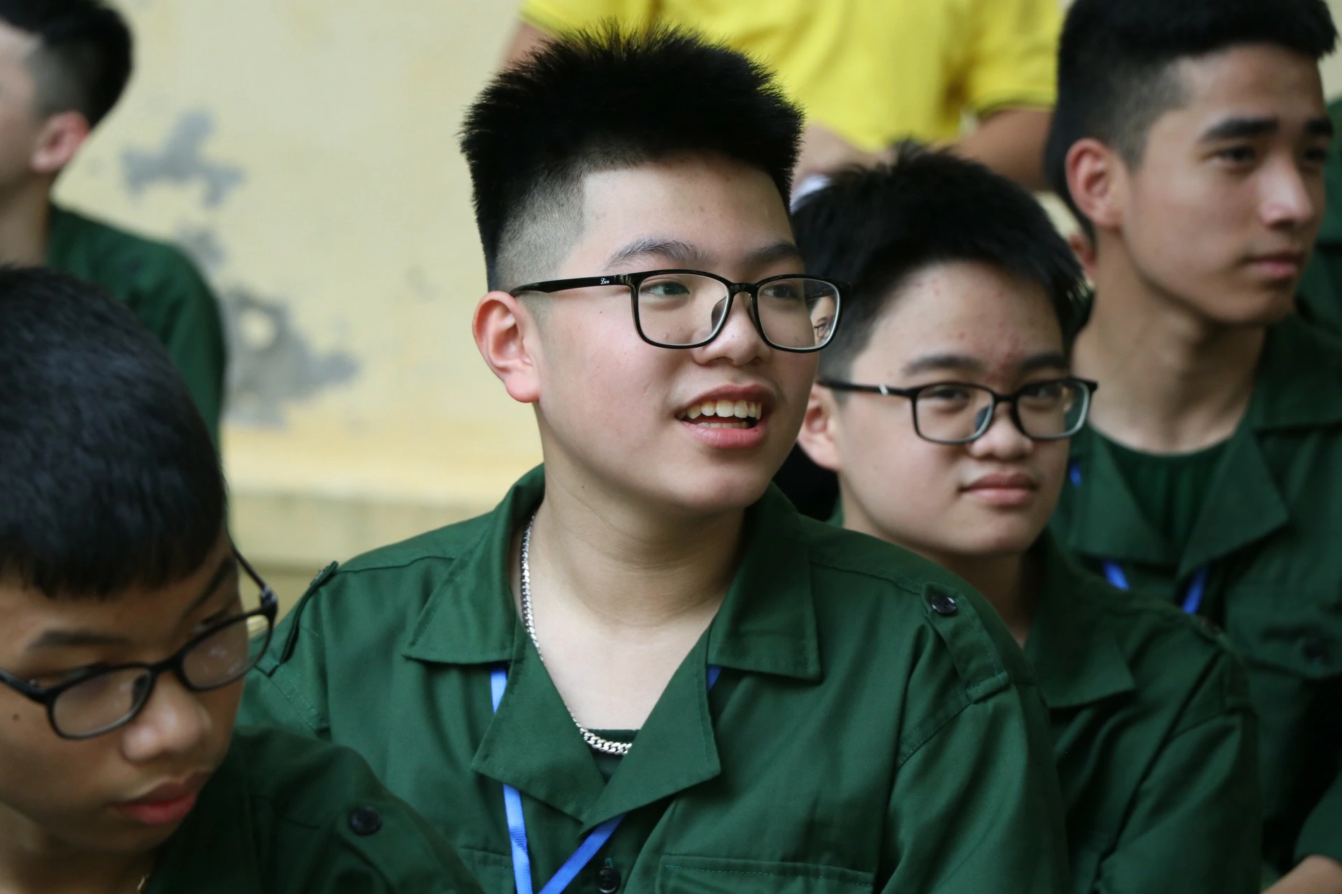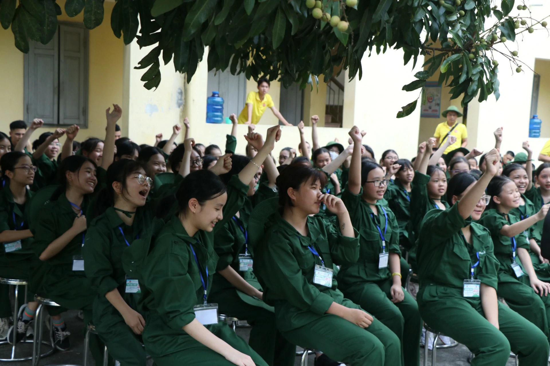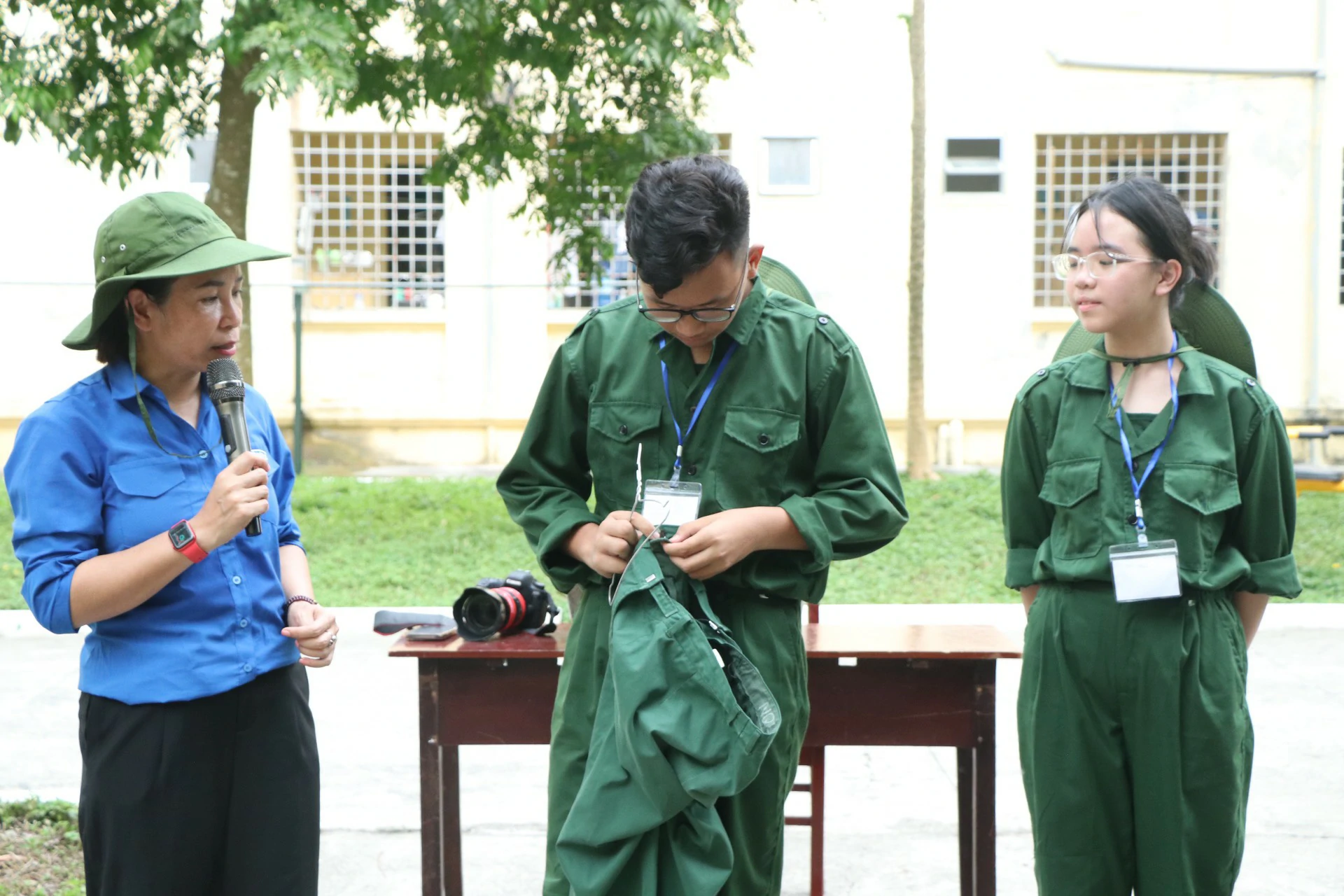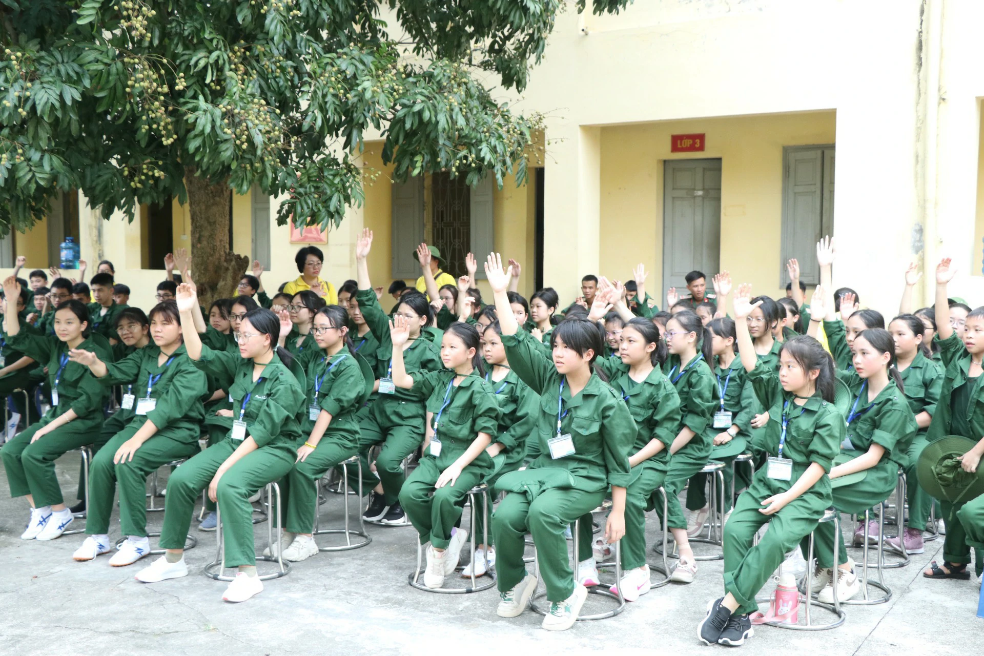 Sau khi đến địa điểm huấn luyện, các chiến sĩ đã được phân về các phòng và sinh hoạt theo tiểu đội của mình. Những giây phút làm quen còn rụt rè, e ngại lộ rõ trên khuôn mặt của các chiến sĩ nhí thật đáng yêu biết nhường nào. Nhưng với sự động viên khích lệ của các đồng chí điều phối viên, các chiến sĩ nhí của chúng ta cũng dần làm quen được với nhau, làm quen với những nội quy kỷ luật trong quân ngũ. ![]()