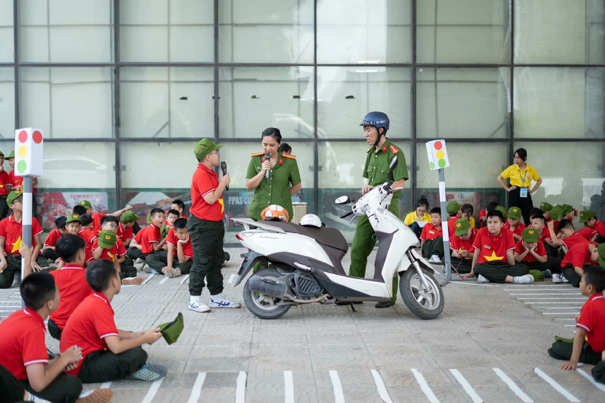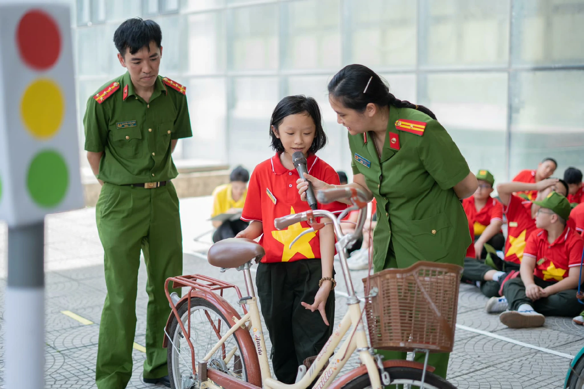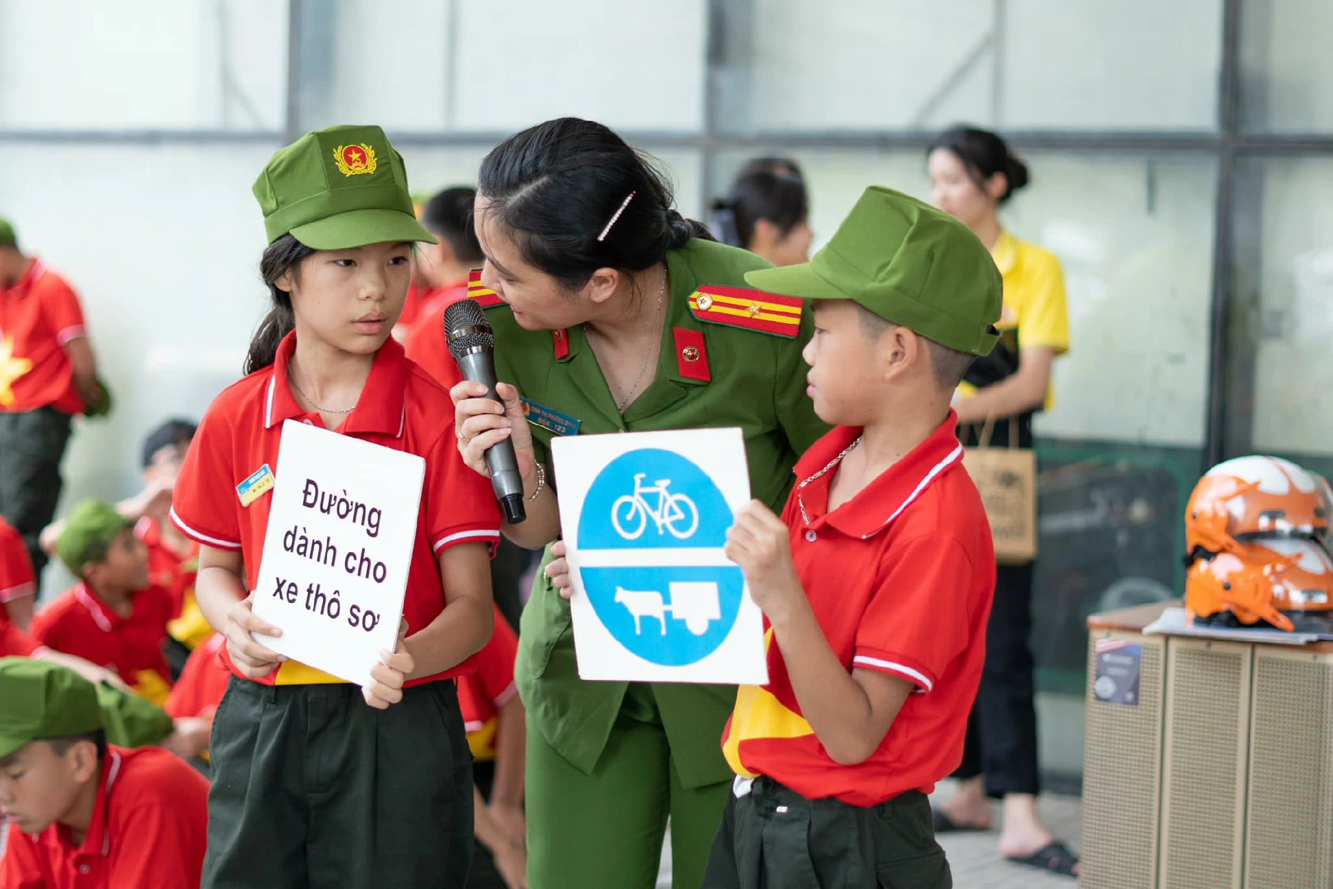 Hôm nay, các chiến sĩ công an nhí được học Chuyên đề: AN TOÀN KHI THAM GIA GIAO THÔNG. Qua chuyên đề này, các chiến sĩ nhí có thể nhận biết được các biển báo, các tín hiệu đèn giao thông, cách sang đường an toàn, những quy tắc giao thông đường bộ cùng các nguy cơ gây ra tai nạn giao thông tiềm ẩn...