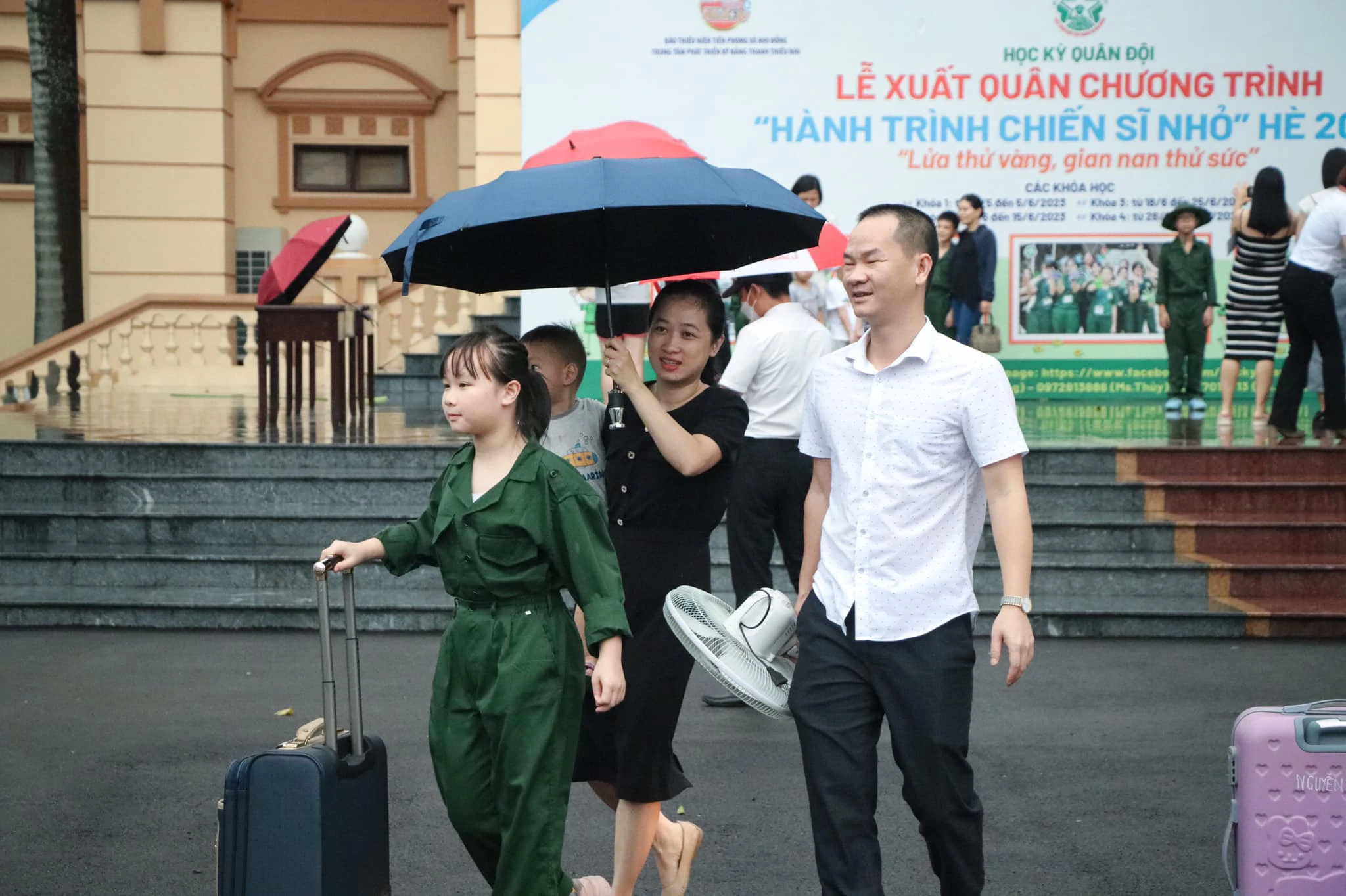 Mặc dù thời tiết chưa thực sự thuận lợi nhưng Lễ Khai mạc đã diễn ra thành công. Ban tổ chức kính chúc các quý vị đại biểu khách quý, các quý phụ huynh sức khoẻ, hạnh phúc và thành công. Chúc các chiến sĩ nhí hoàn thành tốt nhiệm vụ và sẽ có nhiều kỷ niệm đẹp trong những ngày huấn luyện tại đơn vị. ![]()