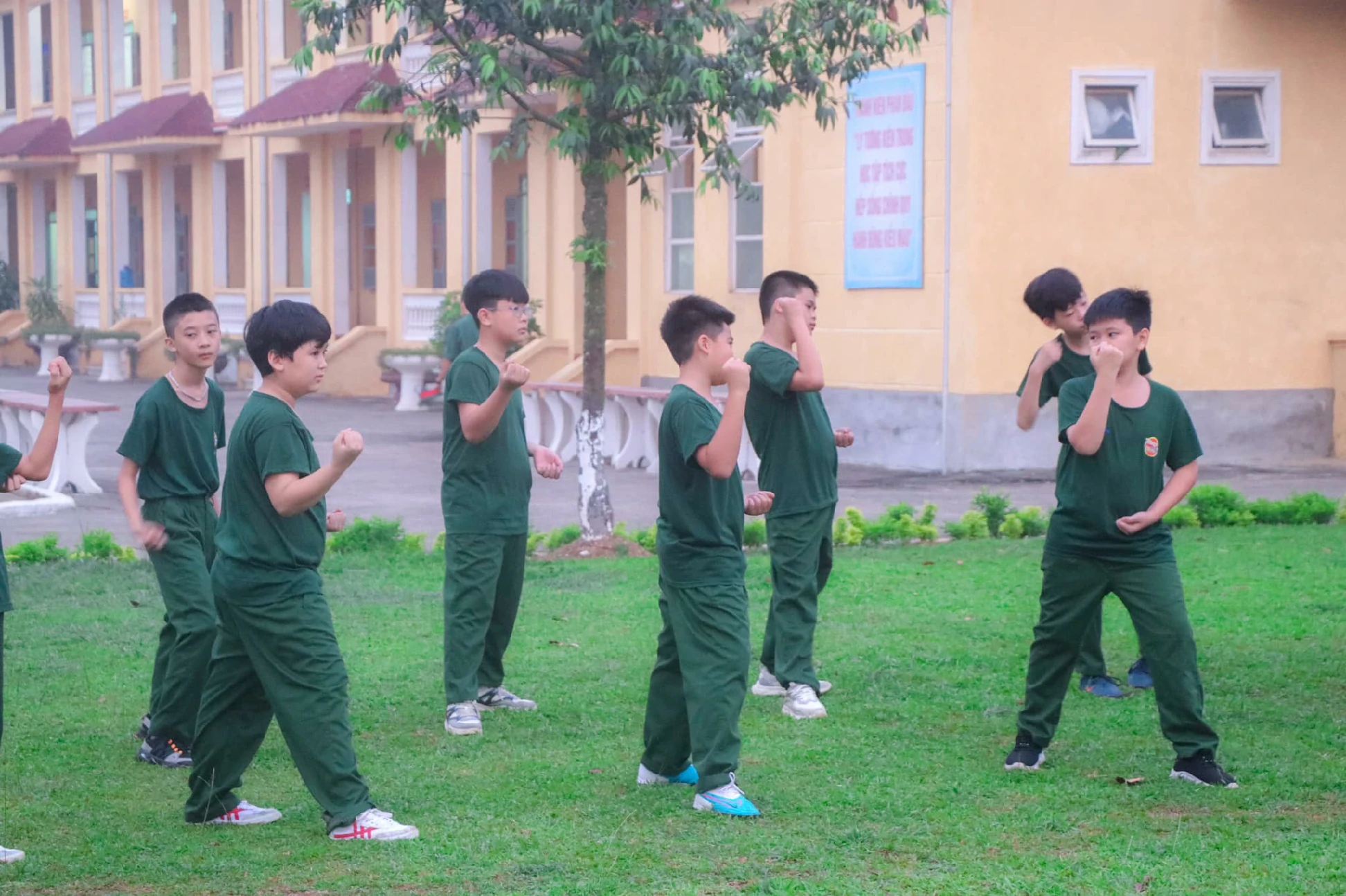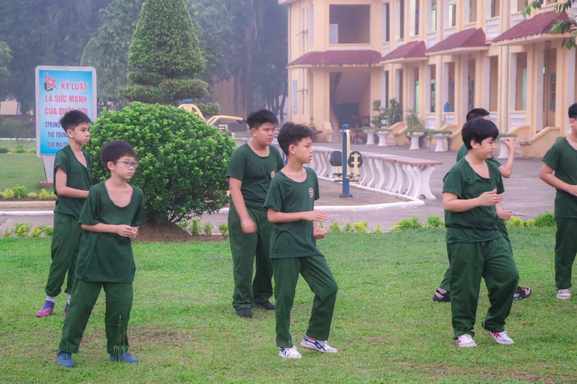 5 giờ sáng còi báo thức đã lại vang lên, các chiến sĩ nhí đã thức dậy, nhanh chân xếp hàng tập thể dục để có một tâm thế sảng khoái nhất trước khi đến với các hoạt động học tập, trải nghiệm trong ngày. ![]()