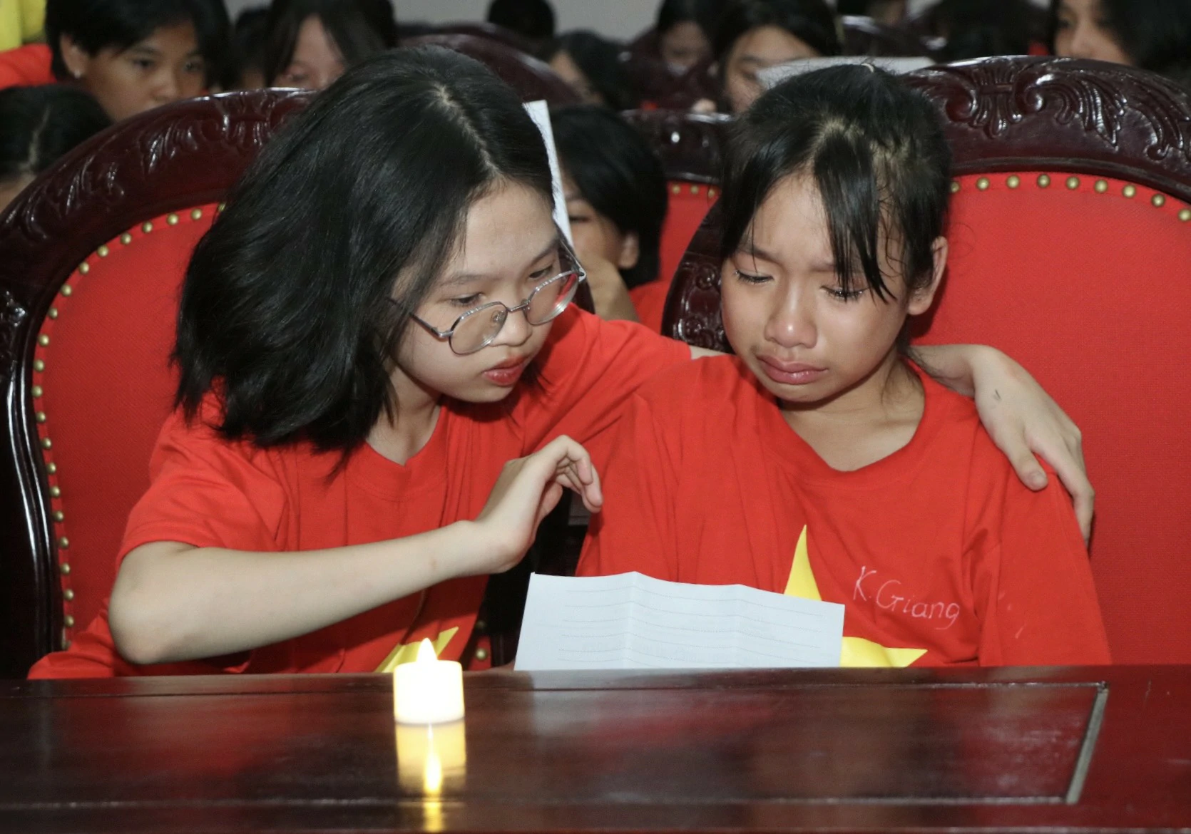 Những giọt nước mắt yêu thương với cảm xúc dâng trào của các chiến sĩ nhí trong Chương trình Chuyên đề: "Giá trị yêu thương” thật khiến chúng ta cảm động.