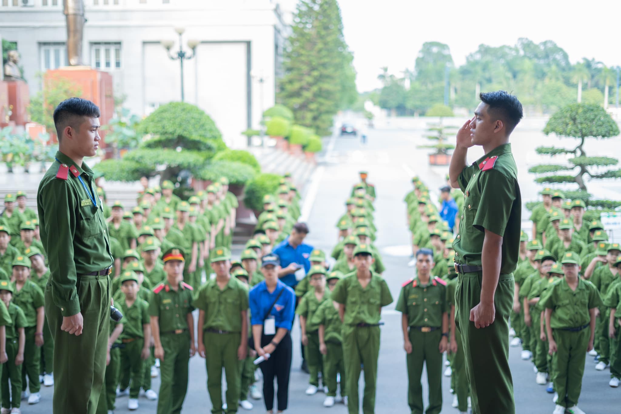 Tiếp đó, các chiến sĩ được tập đội hình, đội ngũ và nghi lễ của Công an nhân dân. ![]()