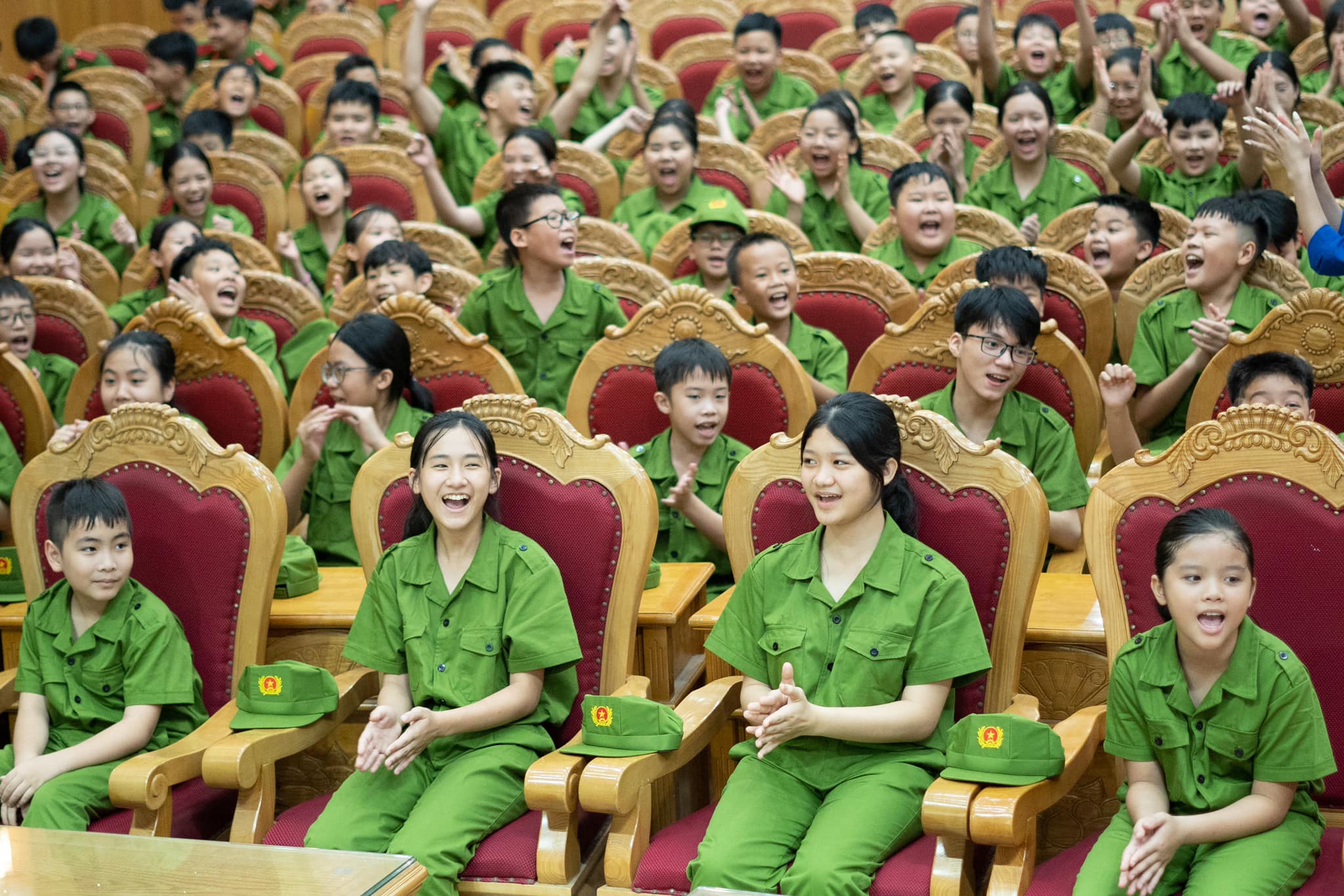 Buổi chiều đầu tiên tại quân ngũ của các chiến sĩ công an nhí đã kết thúc với thật nhiều niềm vui và hứng khởi. ![]()