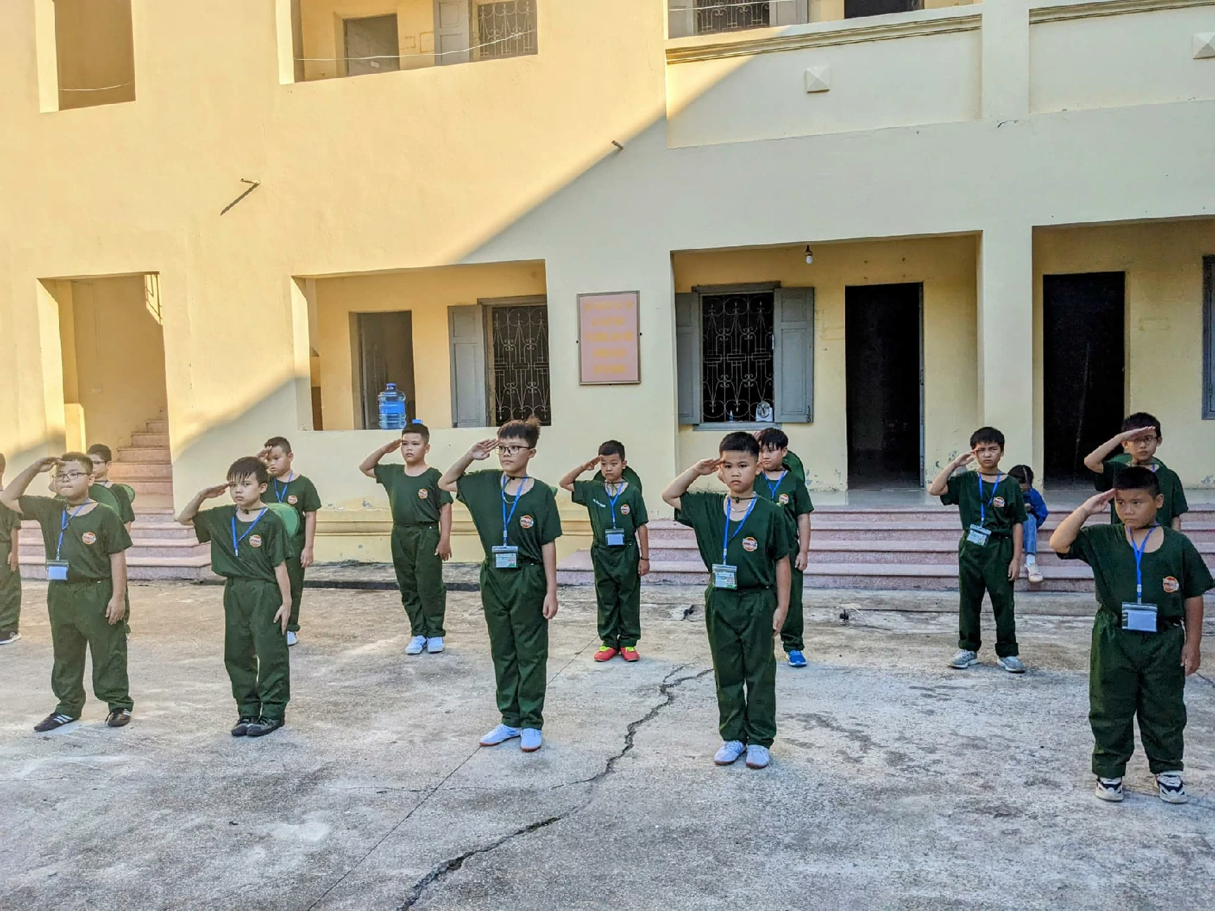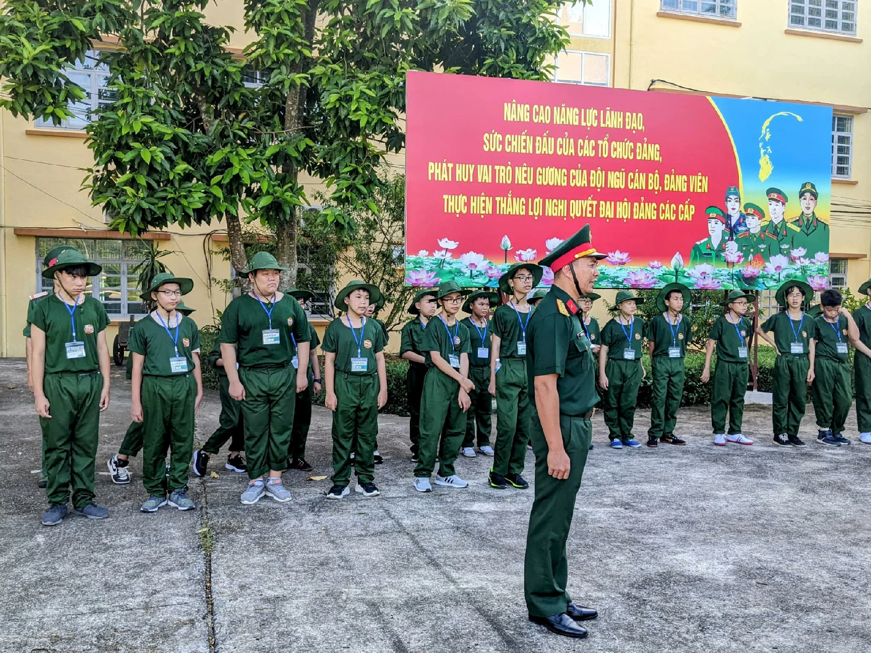 Thú vị hơn, hôm nay gần 200 chiến sĩ nhỏ tuổi của chúng ta được tham gia tập bài báo cáo theo trung đội rất vui.