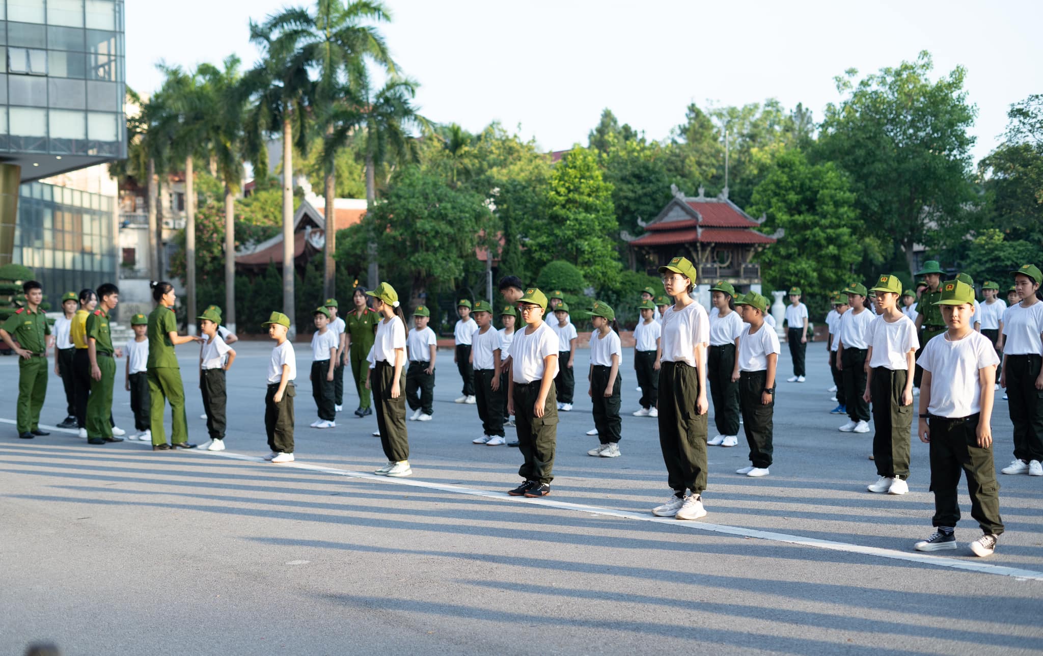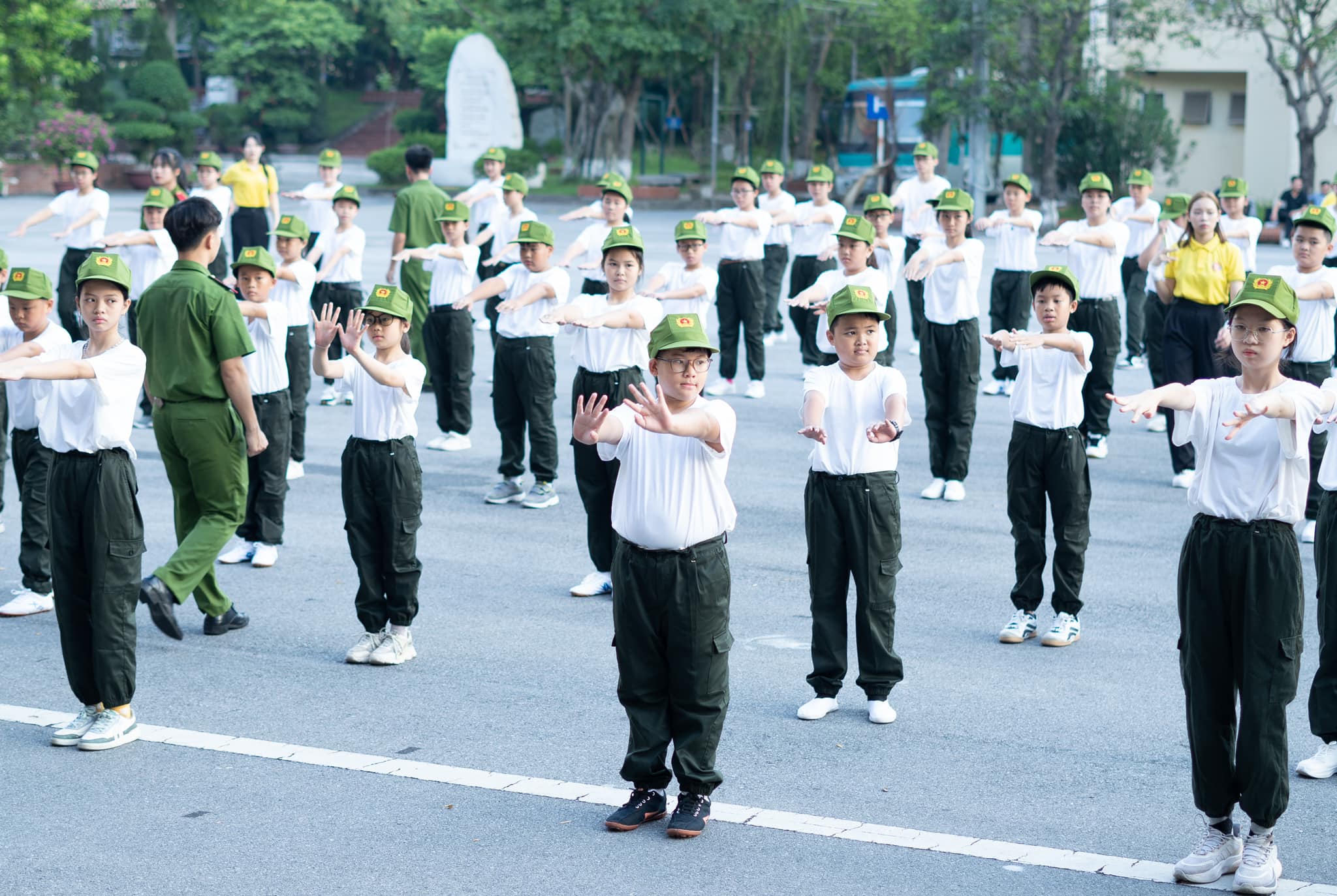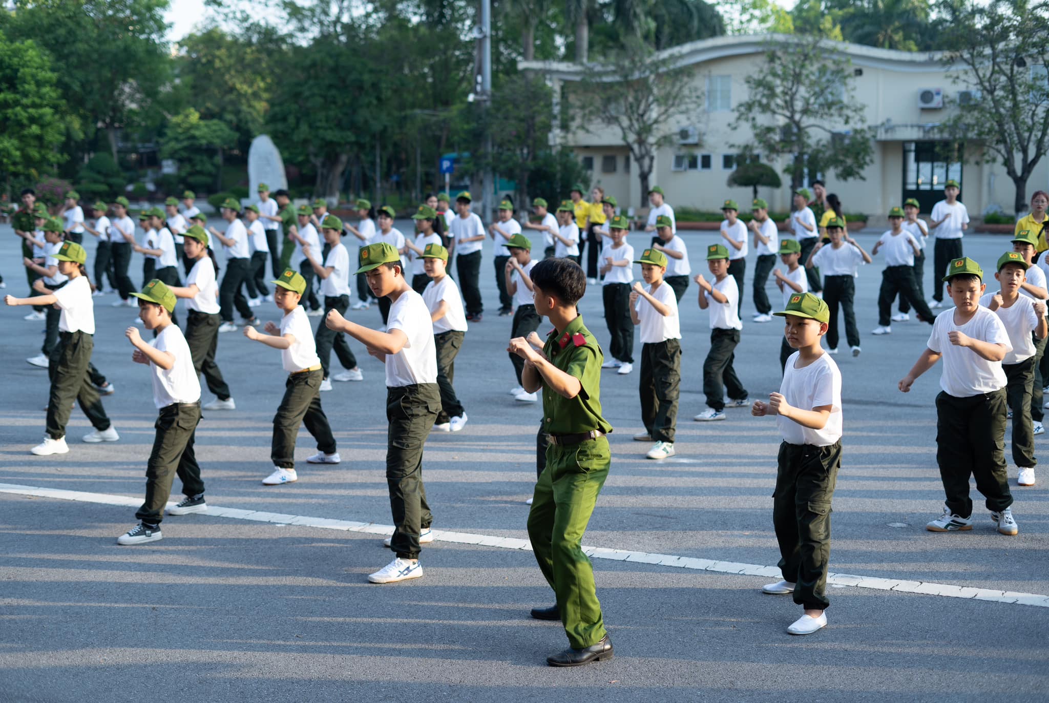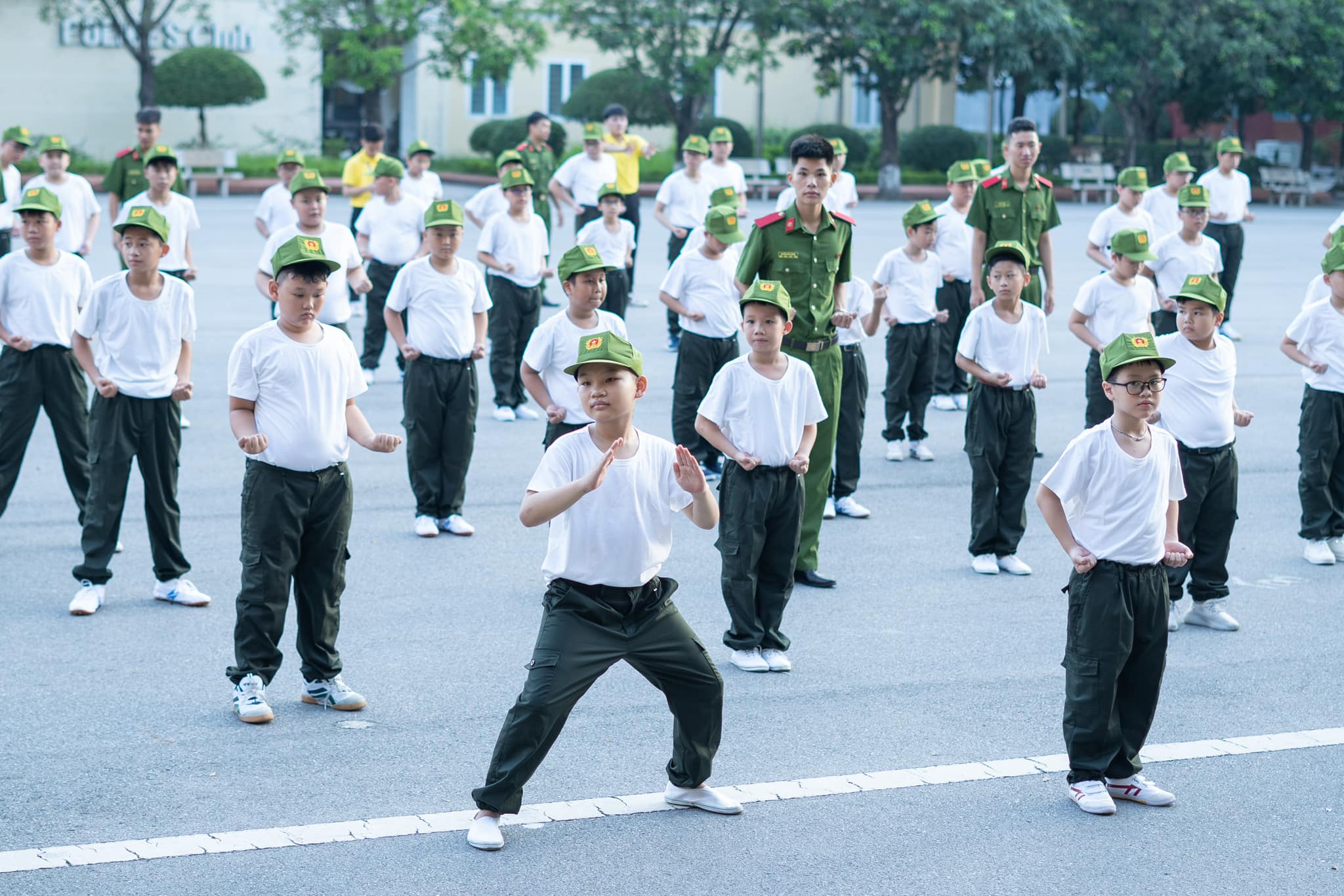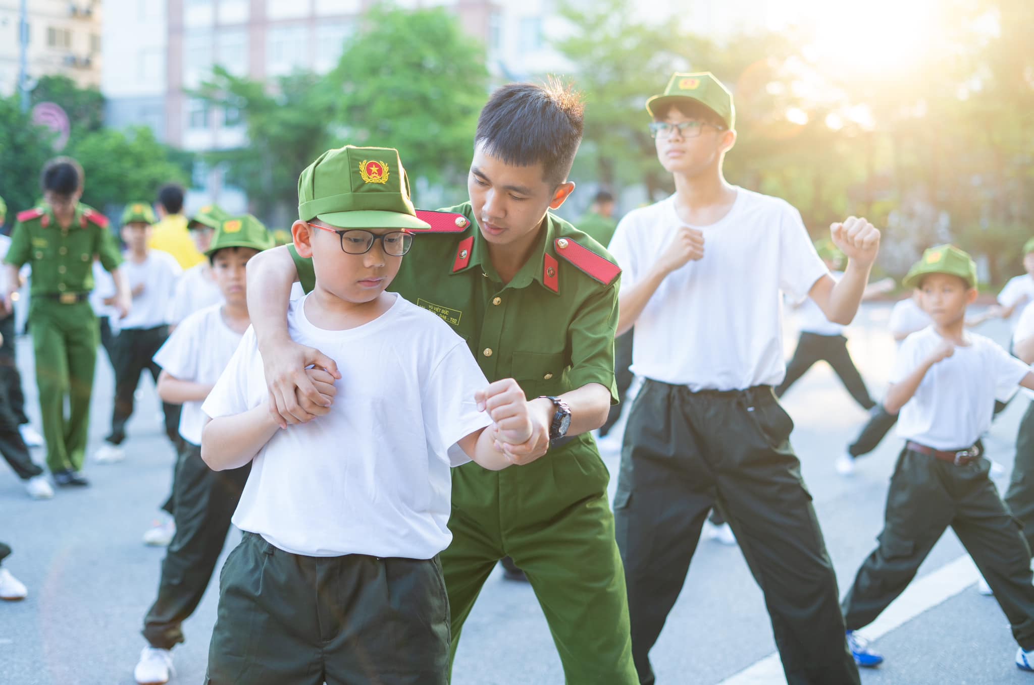 Buổi sáng đầu tiên thức dậy tại Học viện Cảnh sát nhân dân với không khí trong lành, thoáng mát, các chiến sĩ nhí đã được báo thức từ 5 giờ 15 theo đúng quy định để tập thể dục.
