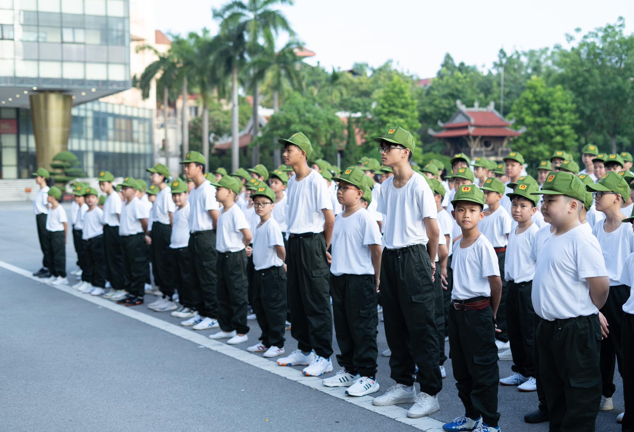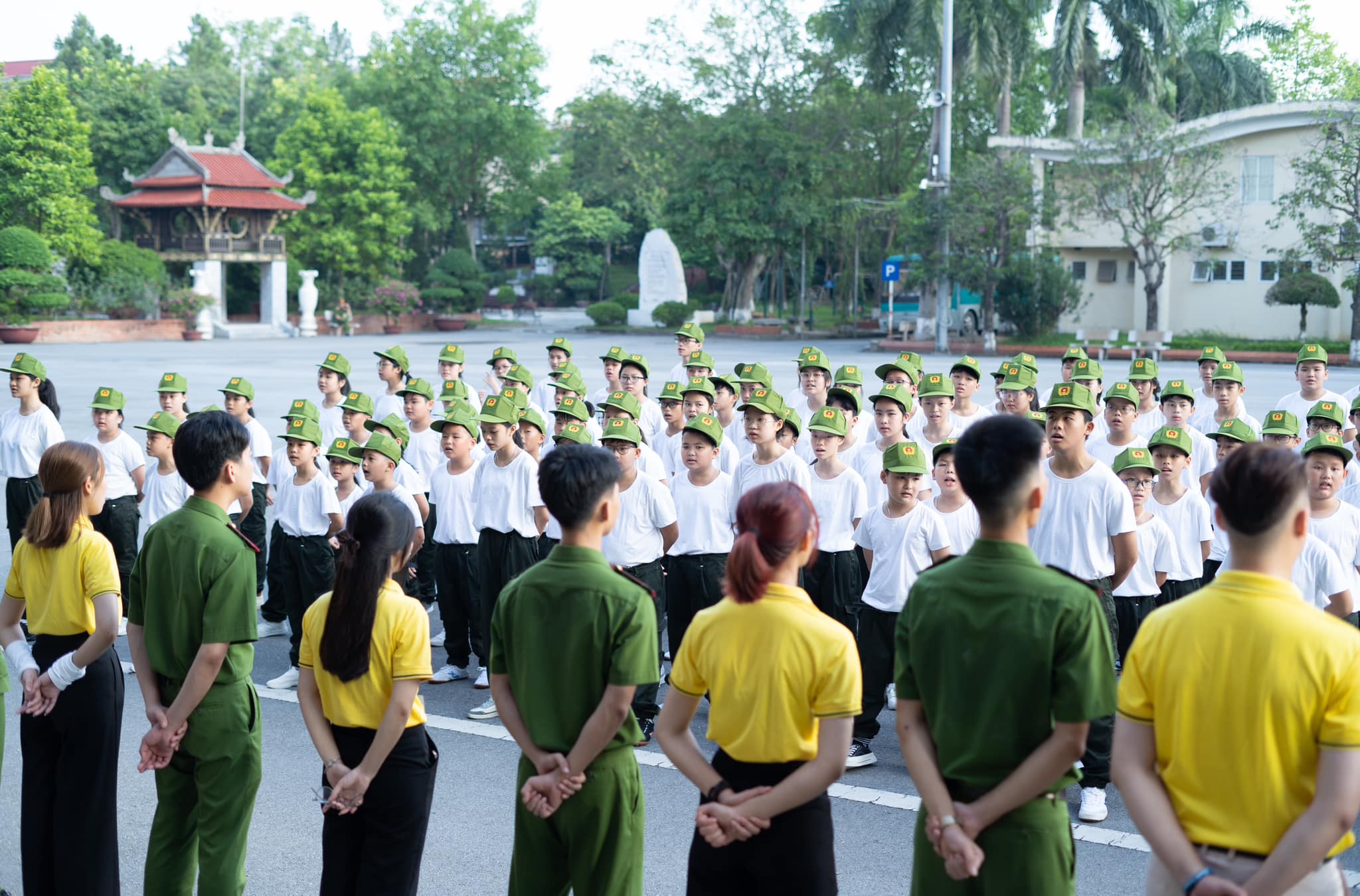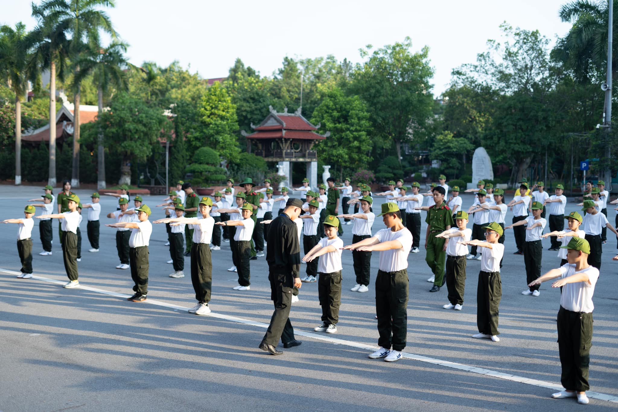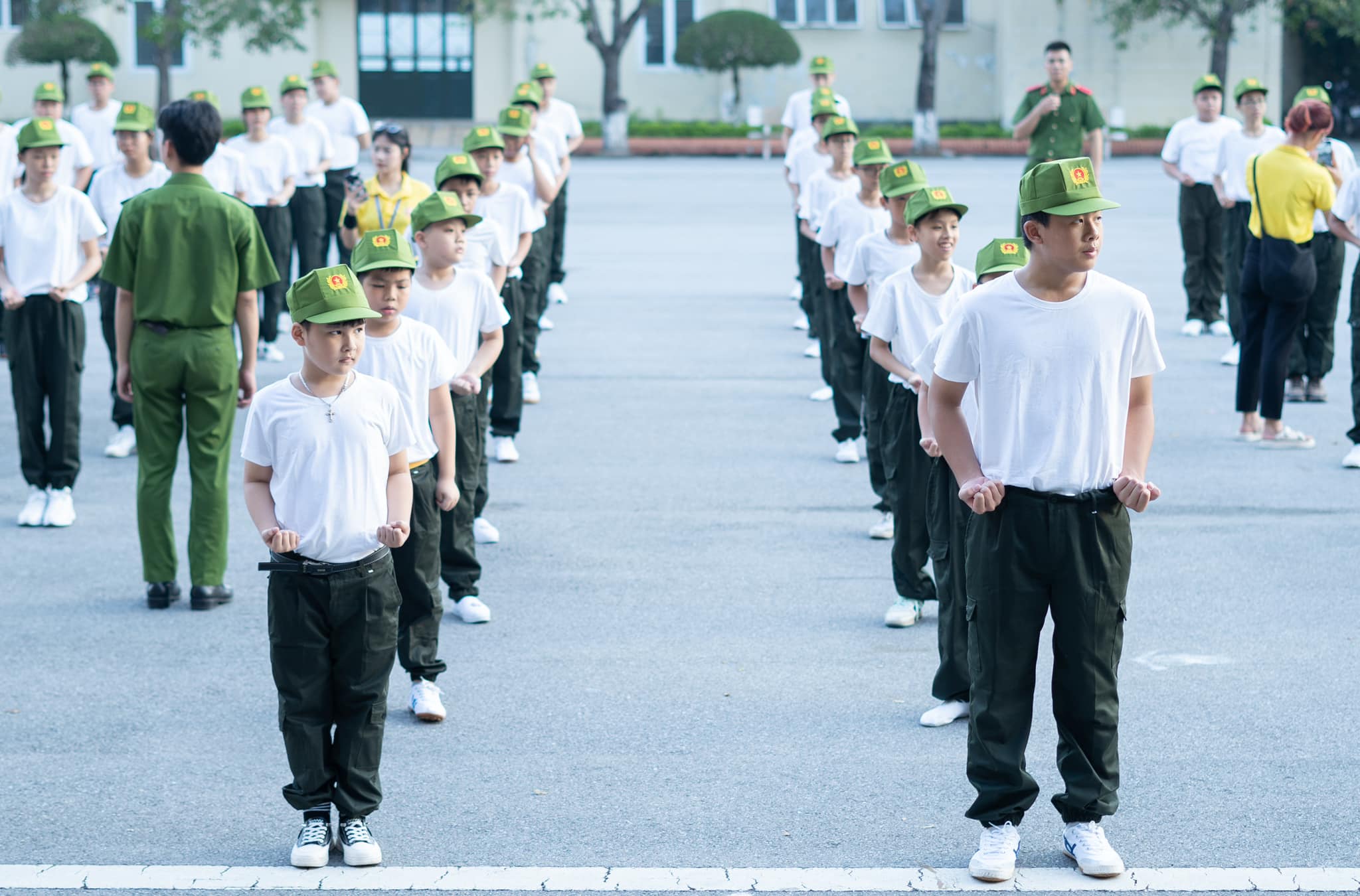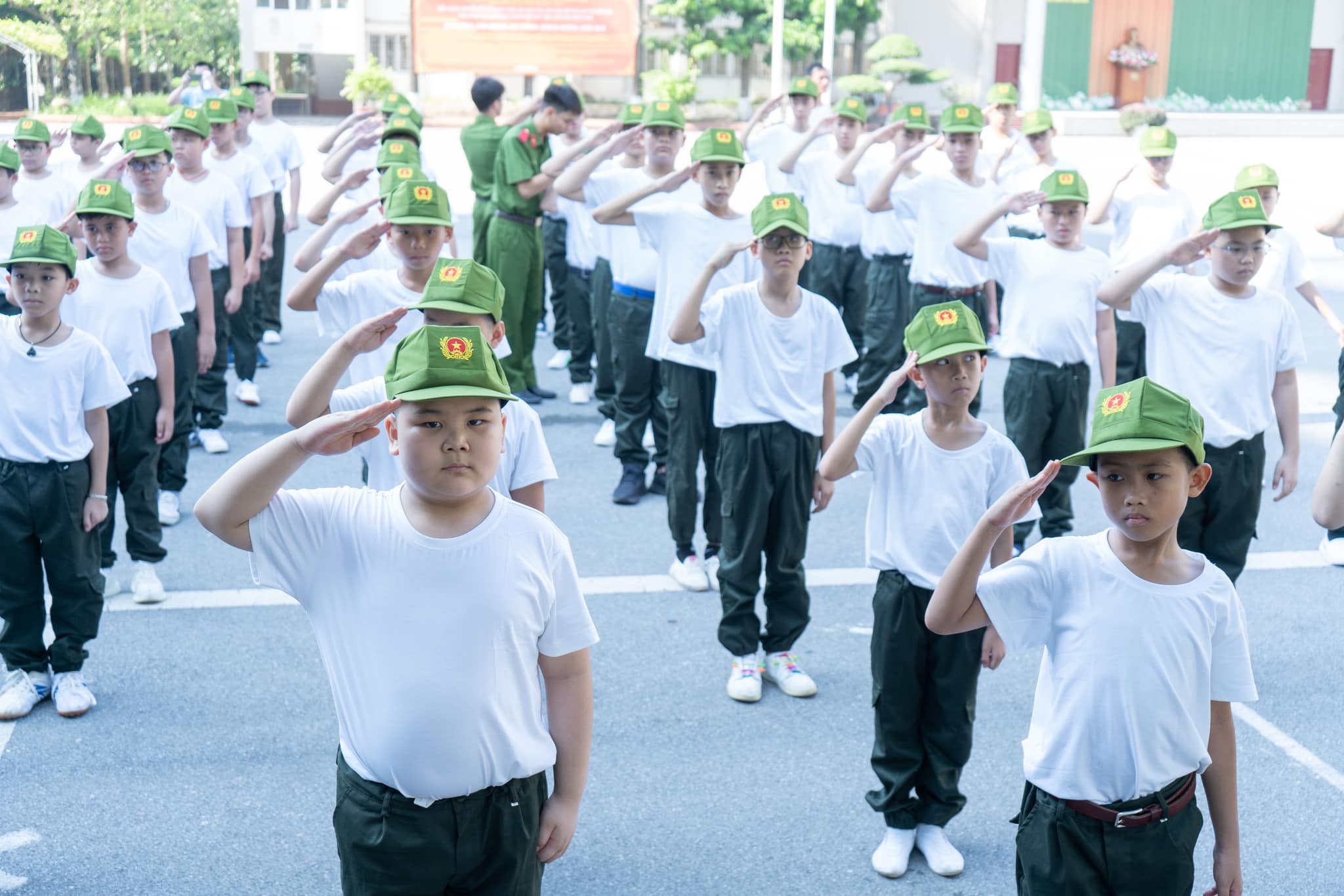 Buổi sáng đầu tiên thức dậy tại Học viện Cảnh sát nhân dân với không khí trong lành, thoáng mát, các chiến sĩ nhí đã được báo thức từ 5 giờ 15 theo đúng quy định để tập thể dục.