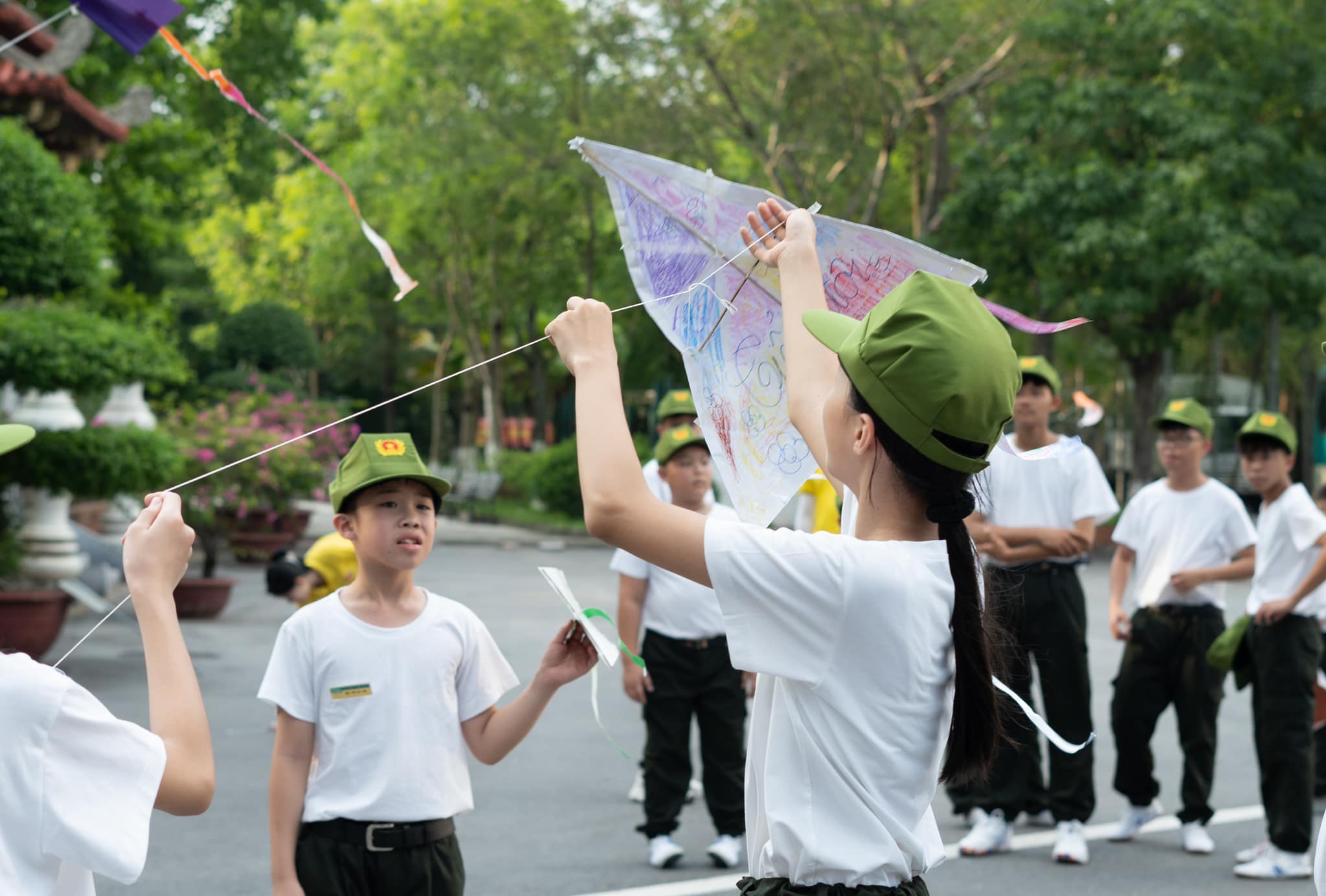 Hoạt động thả diều vừa giúp các chiến sĩ vận động, vừa hòa mình vào thiên nhiên, thư giãn sau ngày dài học tập, rèn luyện. Từ đó, giúp tinh thần của các chiến sĩ nhí cũng khoan khoái và vui vẻ hơn. ![]()