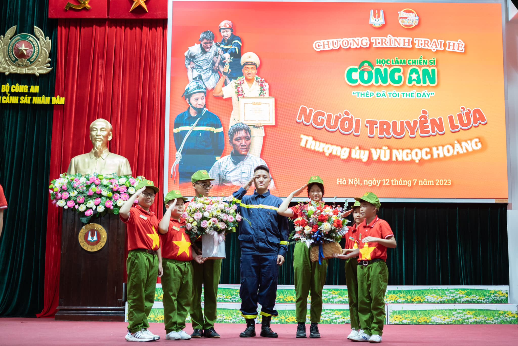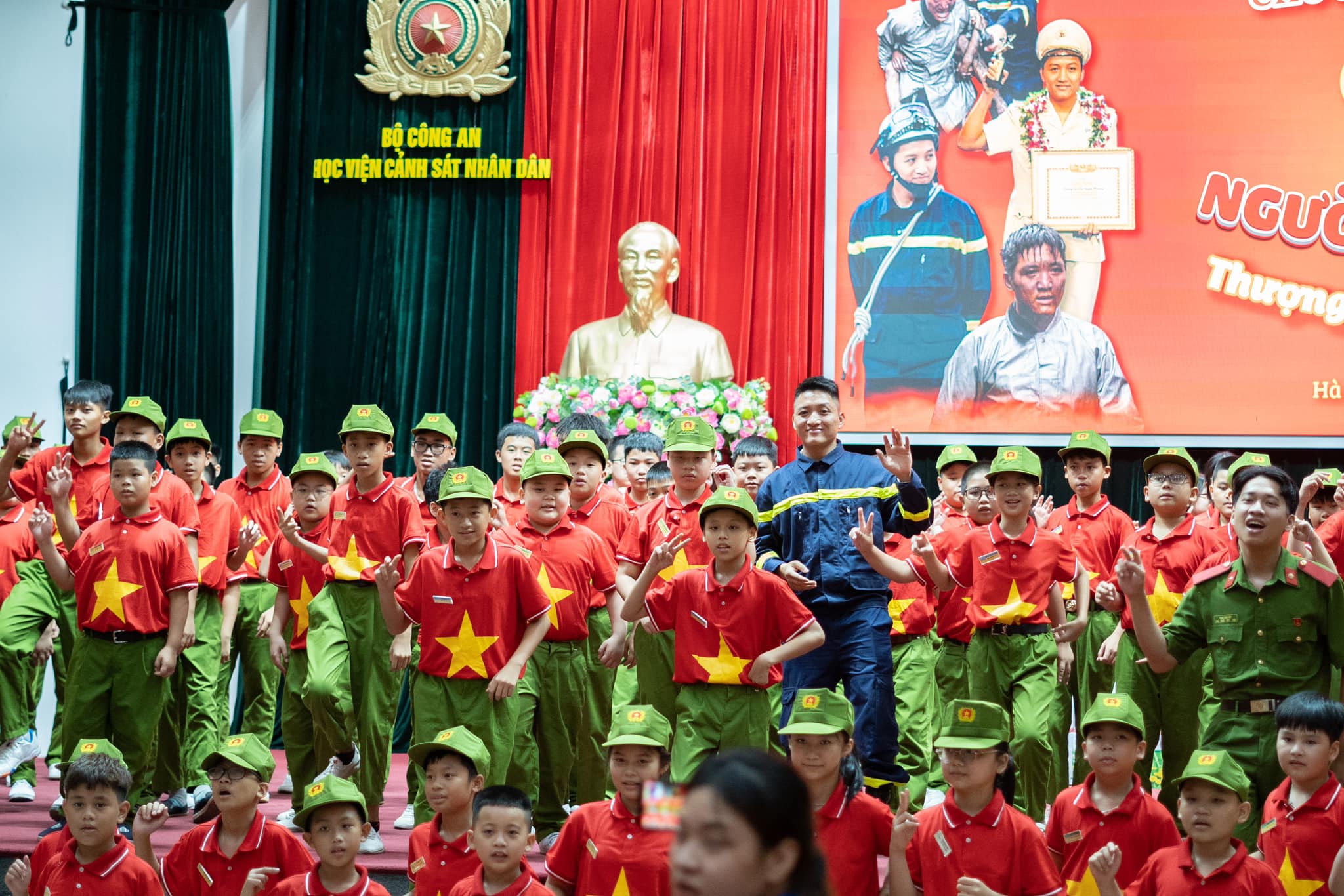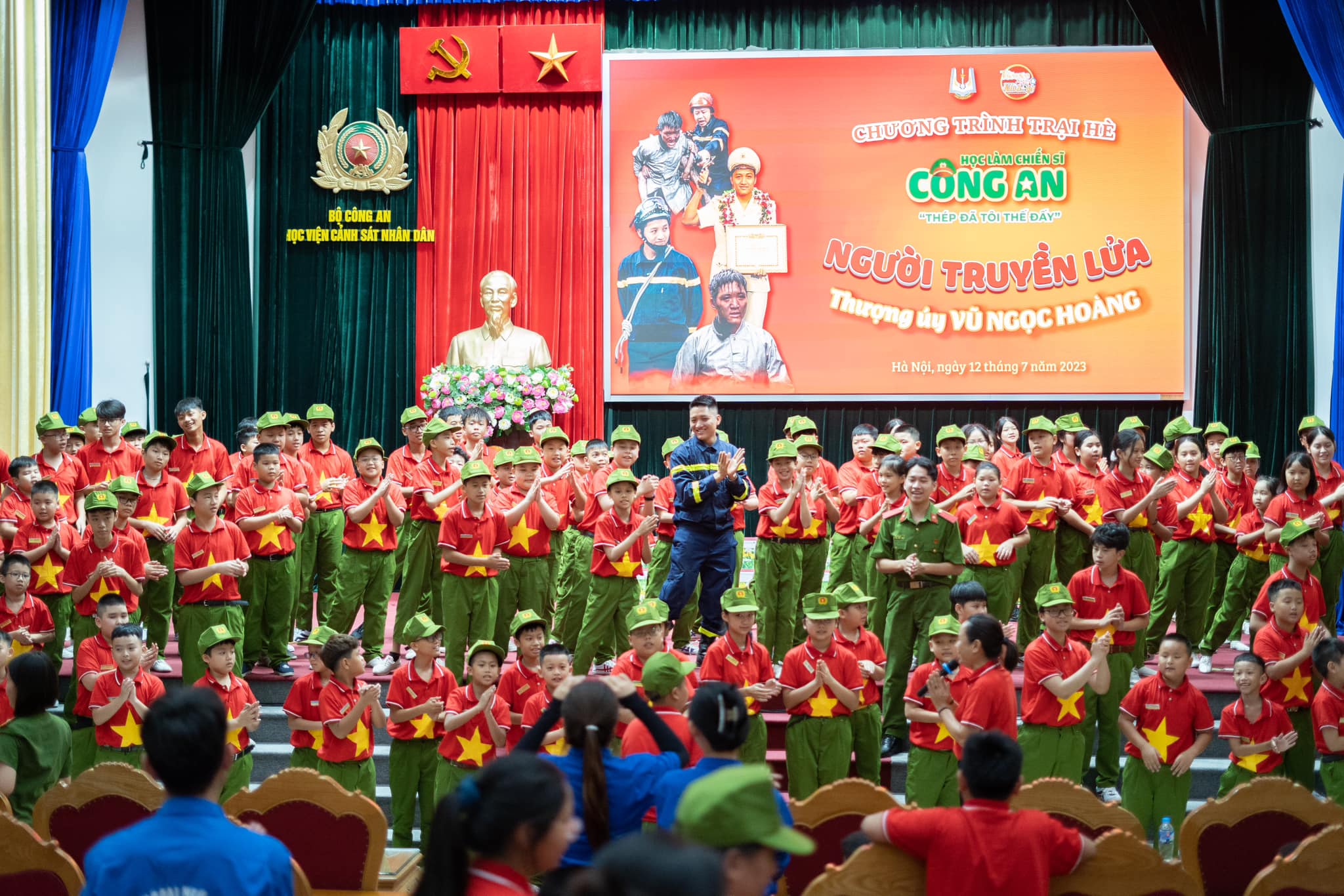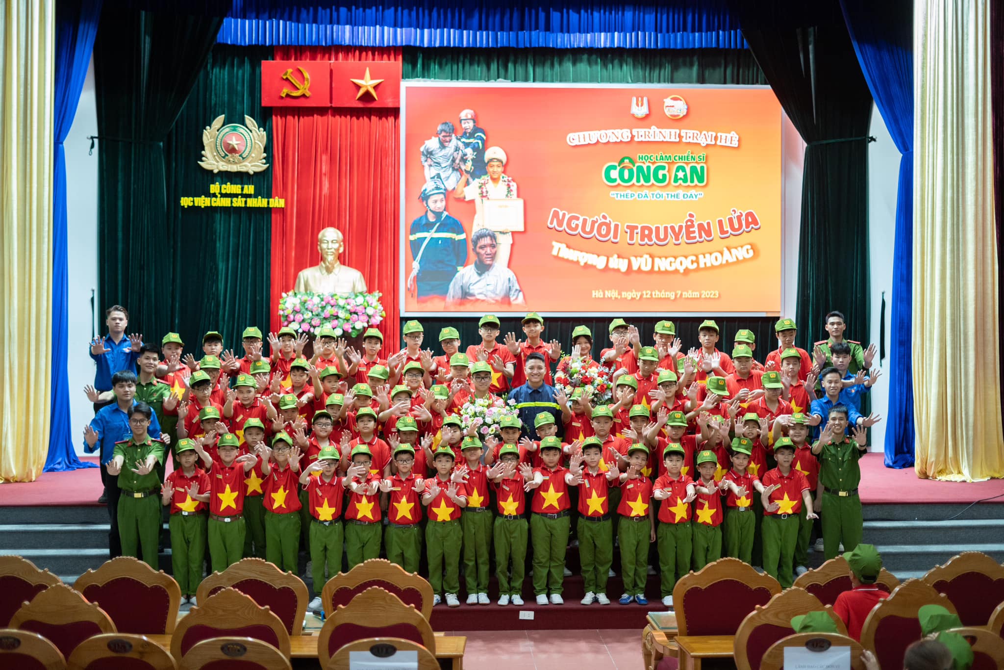 Chiều nay, 156 chiến sĩ Cảnh sát nhí của chương trình “Học làm chiến sĩ Công an Khoá 4 năm 2023” được tham gia chương trình giao lưu với Thượng úy VŨ NGỌC HOÀNG - người hùng cứu nạn trong vụ cháy ở phố Núi Trúc trong chuyên đề “Người truyền lửa”. ![]()