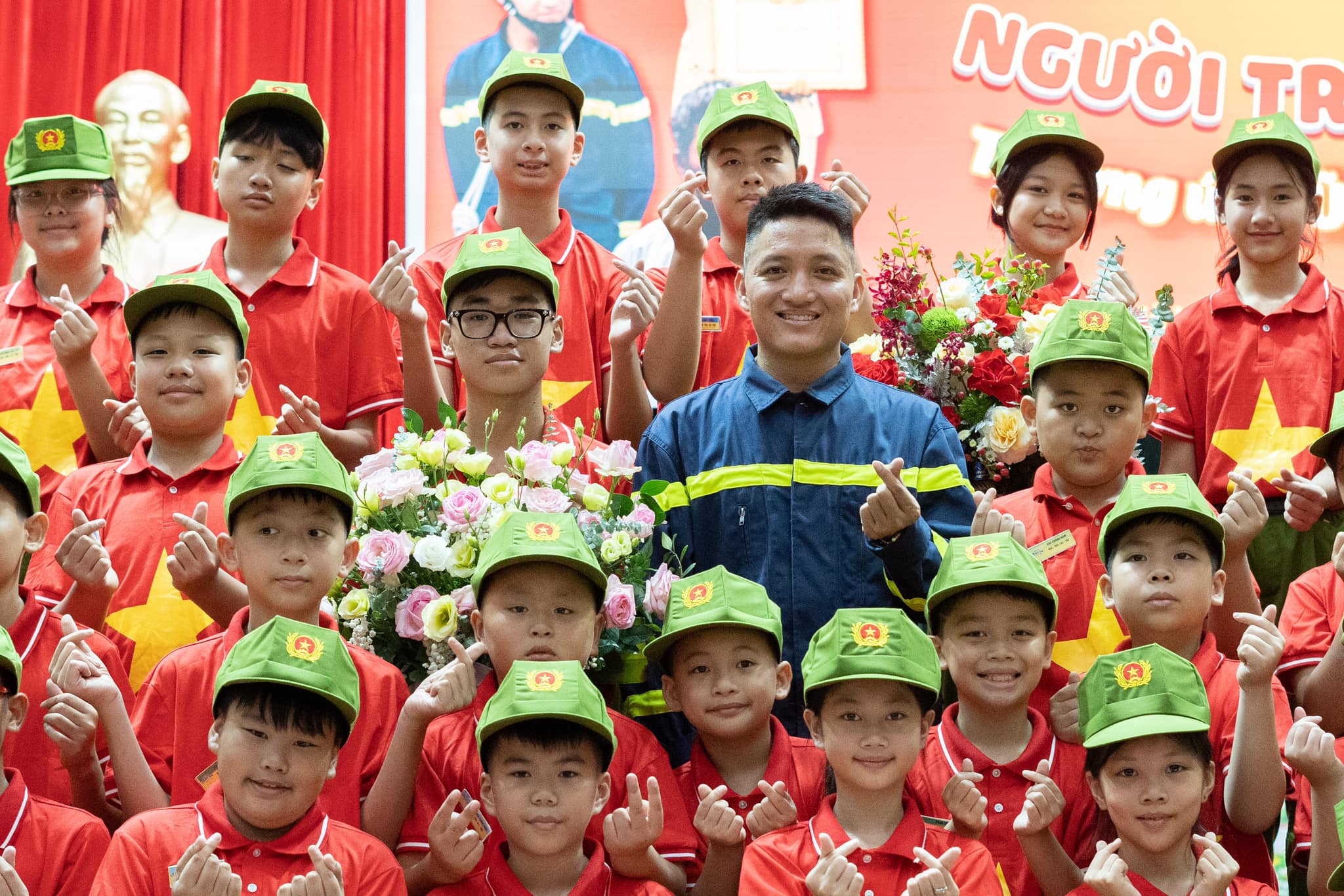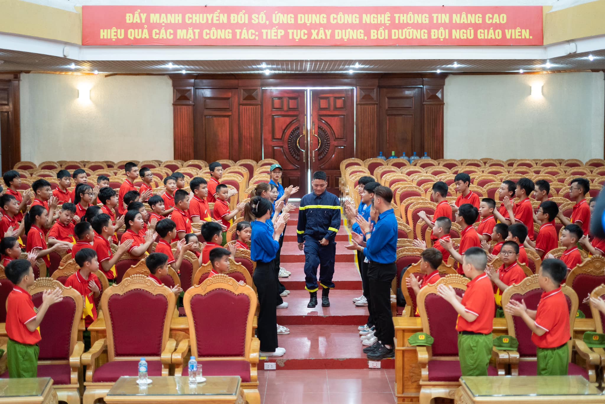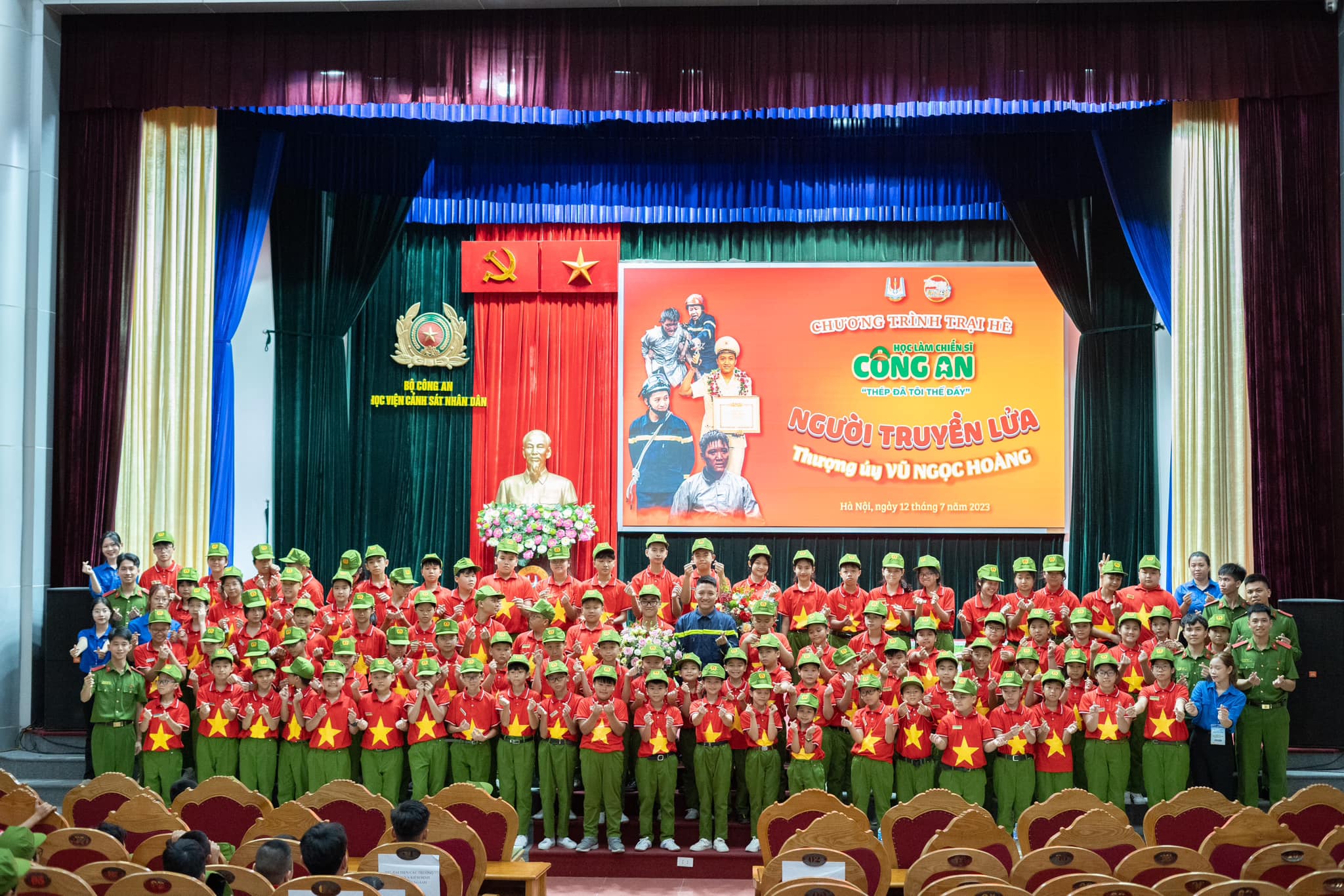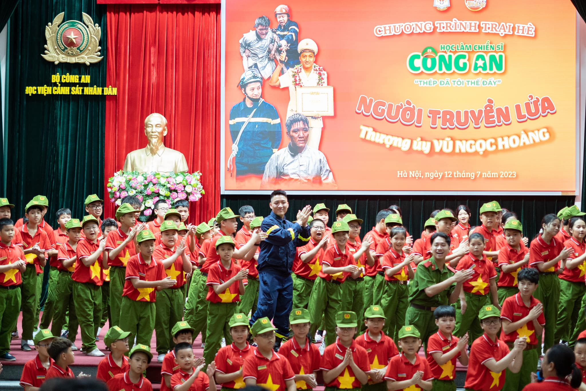 Chiều nay, 156 chiến sĩ Cảnh sát nhí của chương trình “Học làm chiến sĩ Công an Khoá 4 năm 2023” được tham gia chương trình giao lưu với Thượng úy VŨ NGỌC HOÀNG - người hùng cứu nạn trong vụ cháy ở phố Núi Trúc trong chuyên đề “Người truyền lửa”. ![]()