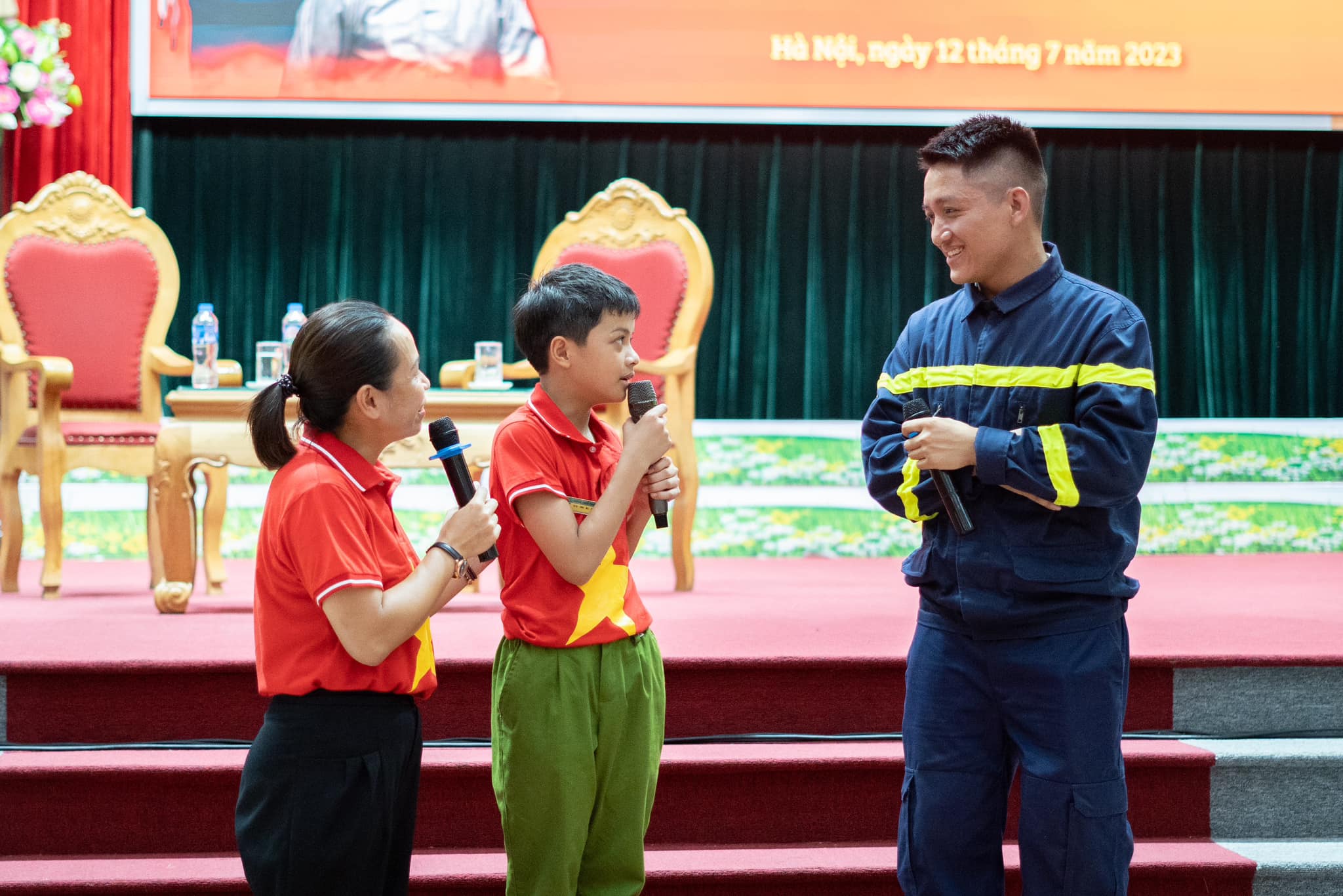 Trong buổi giao lưu chiều nay, Thượng úy Vũ Ngọc Hoàng đã có những chia sẻ rất chân thật về công tác đấu tranh với “giặc lửa” trong sự chăm chú lắng nghe của các chiến sĩ nhí. Bên cạnh đó, đồng chí Hoàng còn có một số khuyến cáo dành cho các chiến sĩ nhí khi trở về gia đình để ngăn ngừa, đối phó với các tình huống hỏa hoạn.