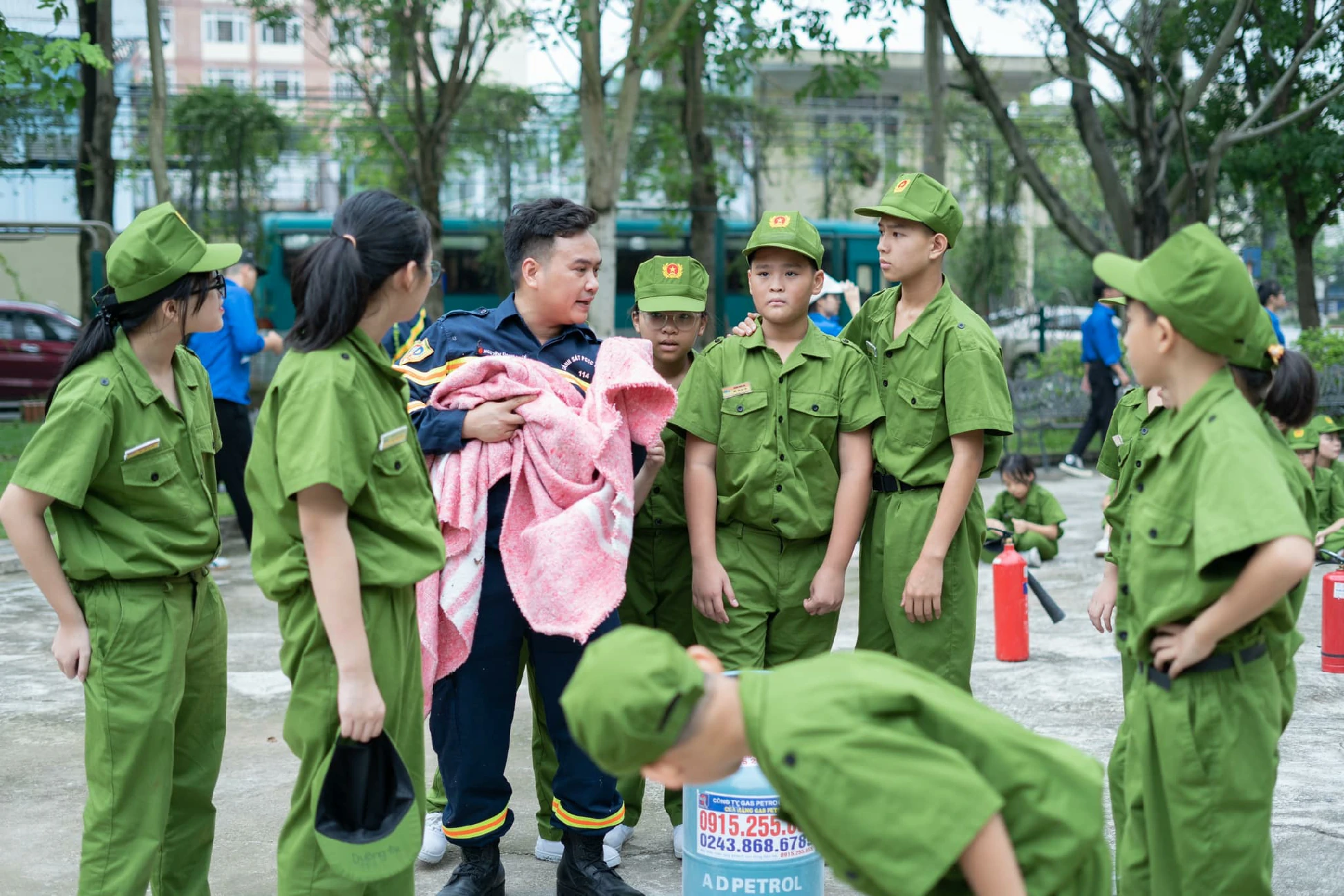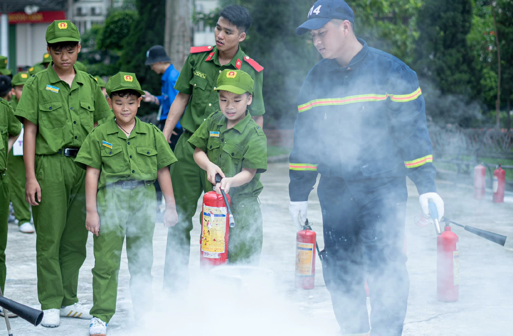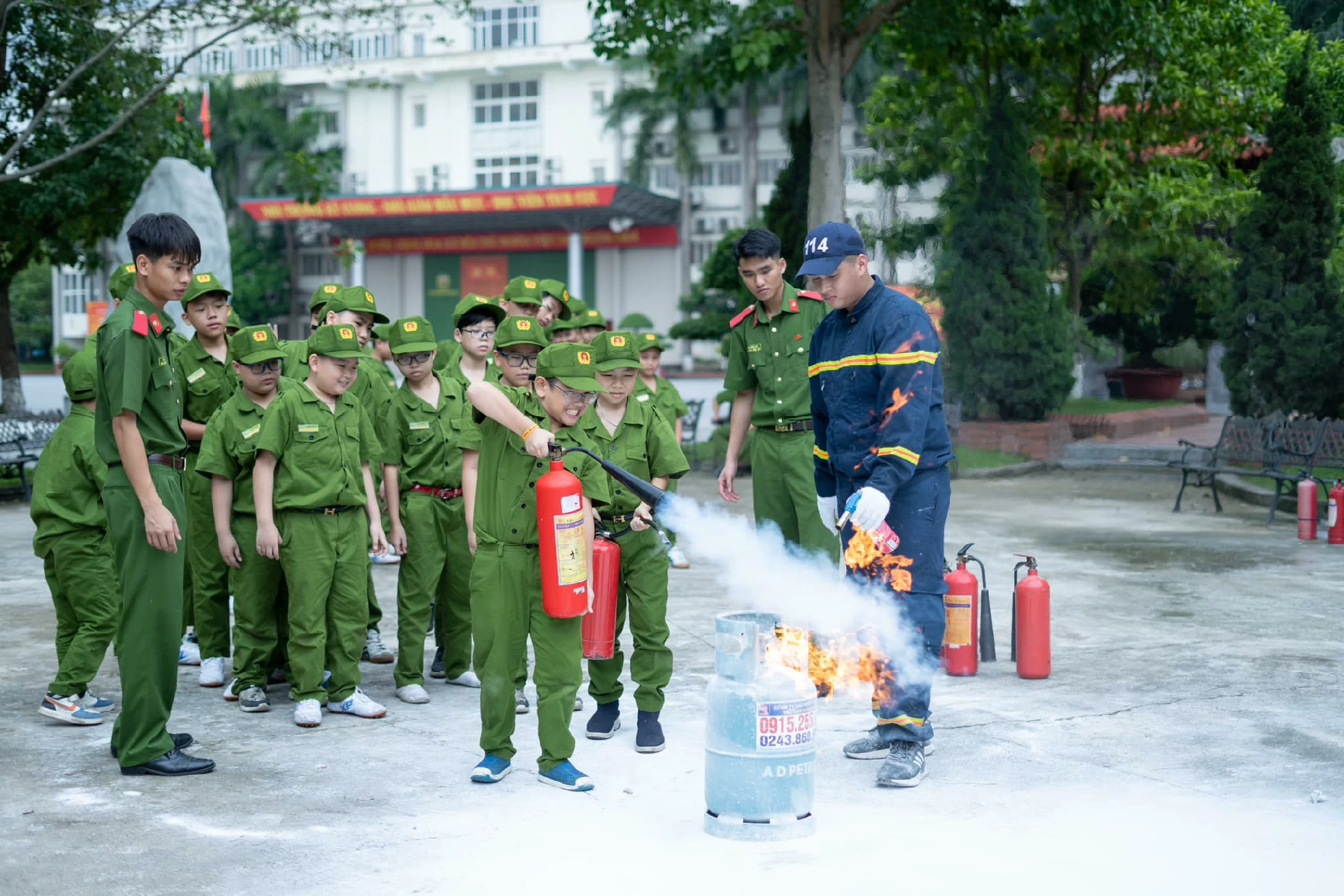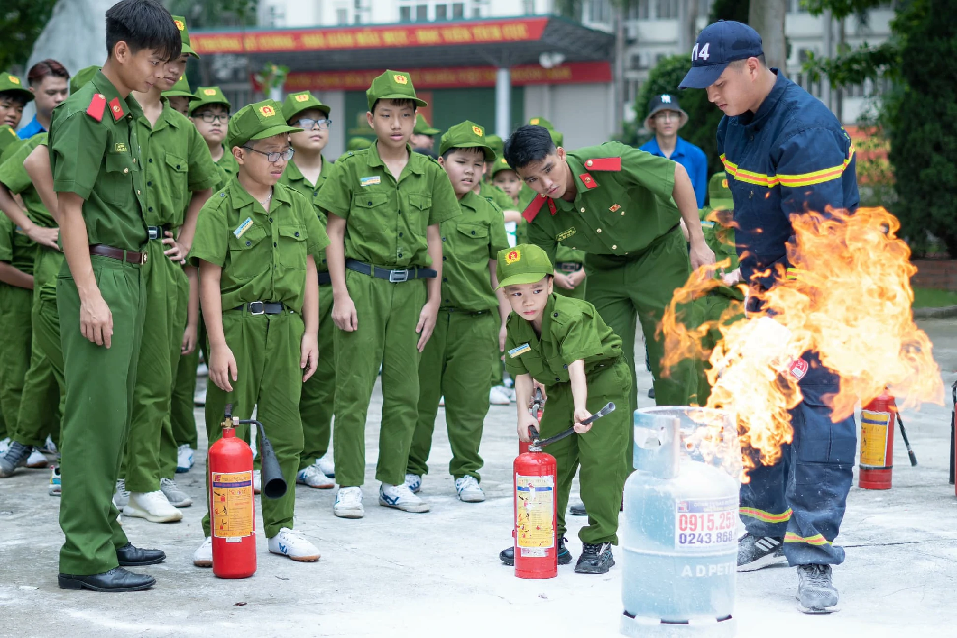 Với không khí vui tươi và cách truyền đạt rất dễ hiểu của giảng viên, Thiếu tá Nguyễn Danh Luân cán bộ Cục Cảnh sát phòng cháy, chữa cháy và cứu nạn, cứu hộ (Bộ Công an) các chiến sĩ công an nhí đã được tiếp thu rất nhiều kiến thức bổ ích về kỹ năng phòng, chống cháy nổ. Sau khi học lý thuyết xong, các chiến sĩ được tham gia thực hành kỹ năng sử dụng bình chữa cháy, thoát hiểm trong phòng khói, thoát hiểm từ tầng cao xuống vô cùng thú vị. ![]()
