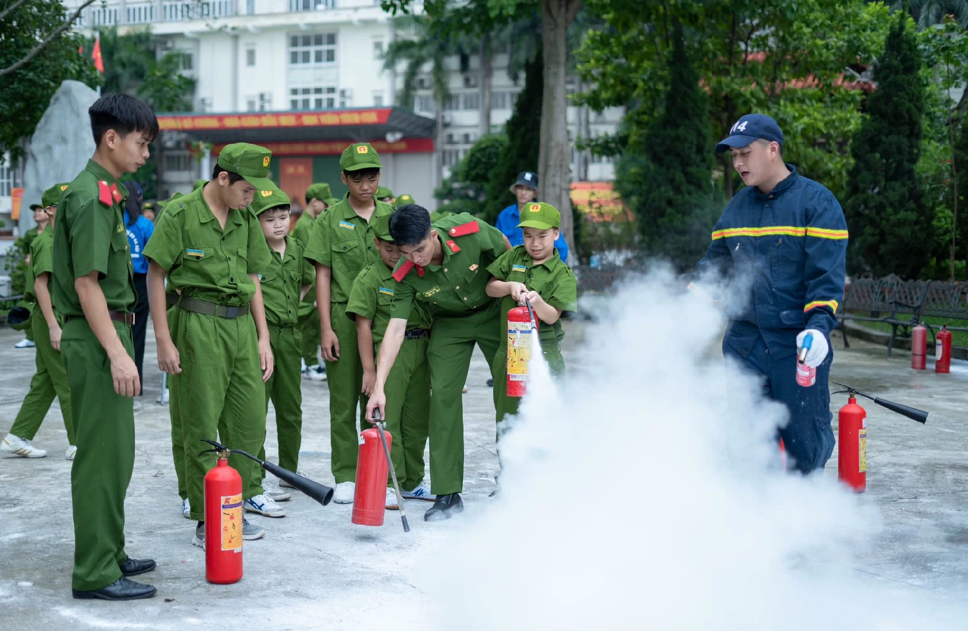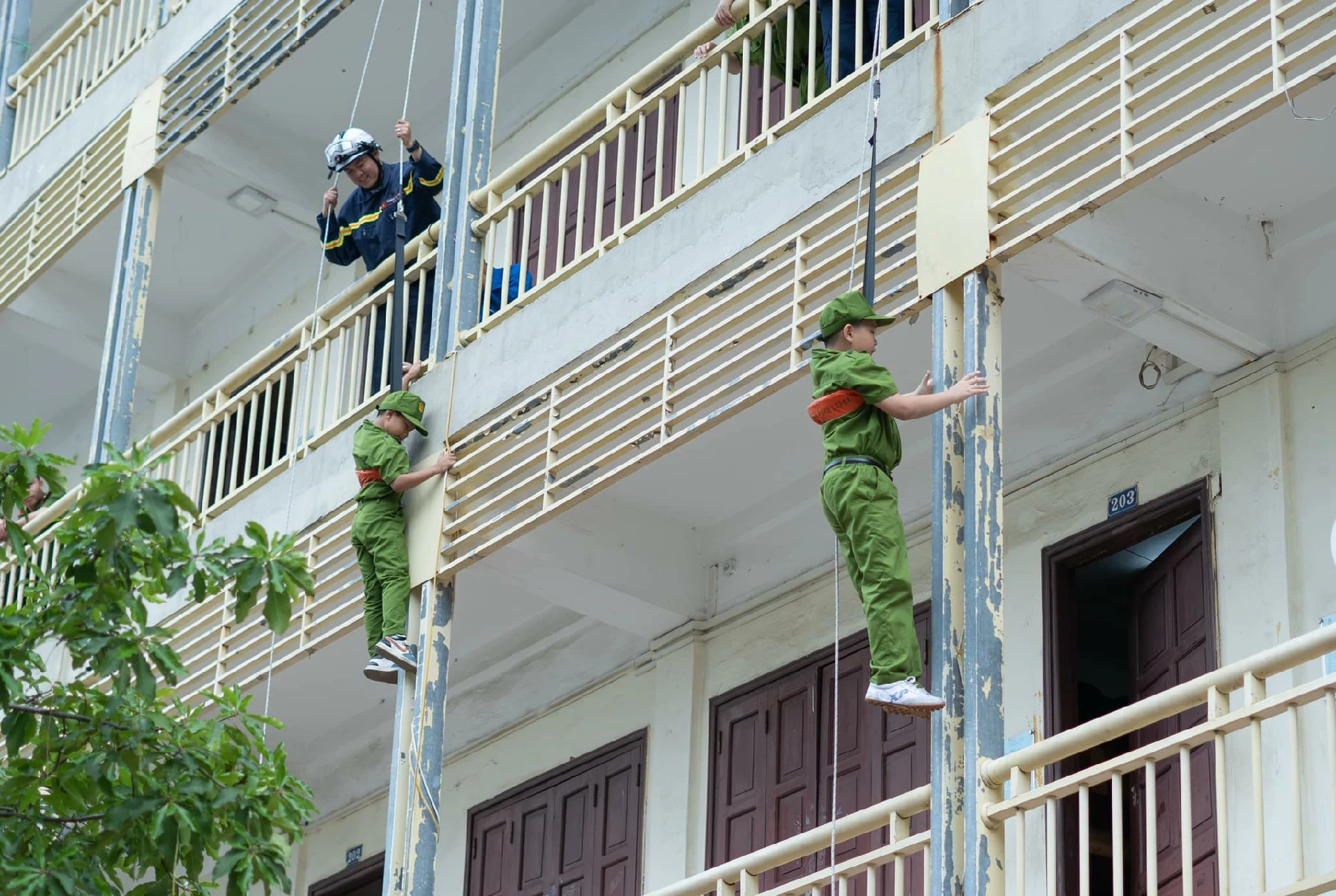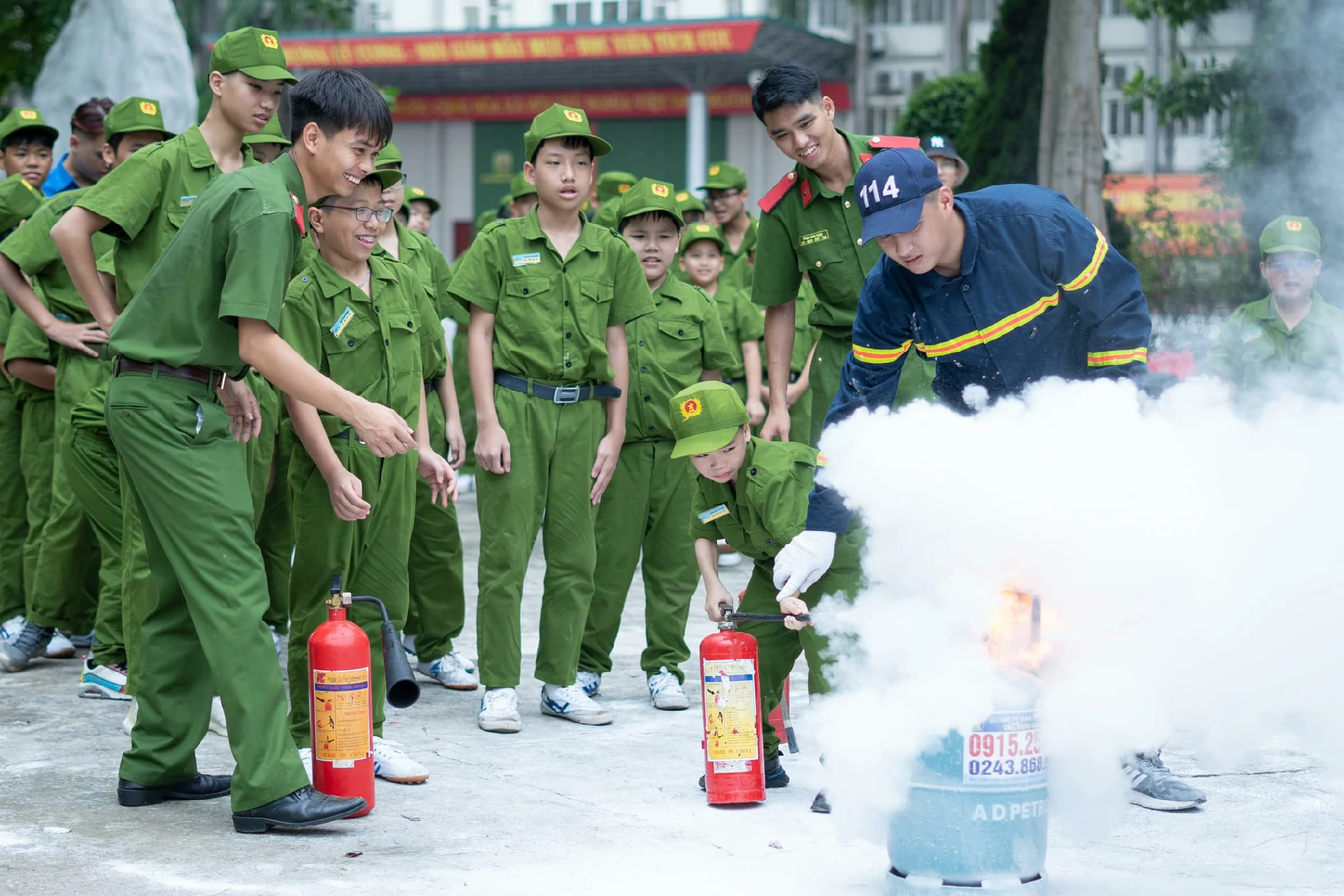 Với không khí vui tươi và cách truyền đạt rất dễ hiểu của giảng viên, Thiếu tá Nguyễn Danh Luân cán bộ Cục Cảnh sát phòng cháy, chữa cháy và cứu nạn, cứu hộ (Bộ Công an) các chiến sĩ công an nhí đã được tiếp thu rất nhiều kiến thức bổ ích về kỹ năng phòng, chống cháy nổ. Sau khi học lý thuyết xong, các chiến sĩ được tham gia thực hành kỹ năng sử dụng bình chữa cháy, thoát hiểm trong phòng khói, thoát hiểm từ tầng cao xuống vô cùng thú vị. ![]()