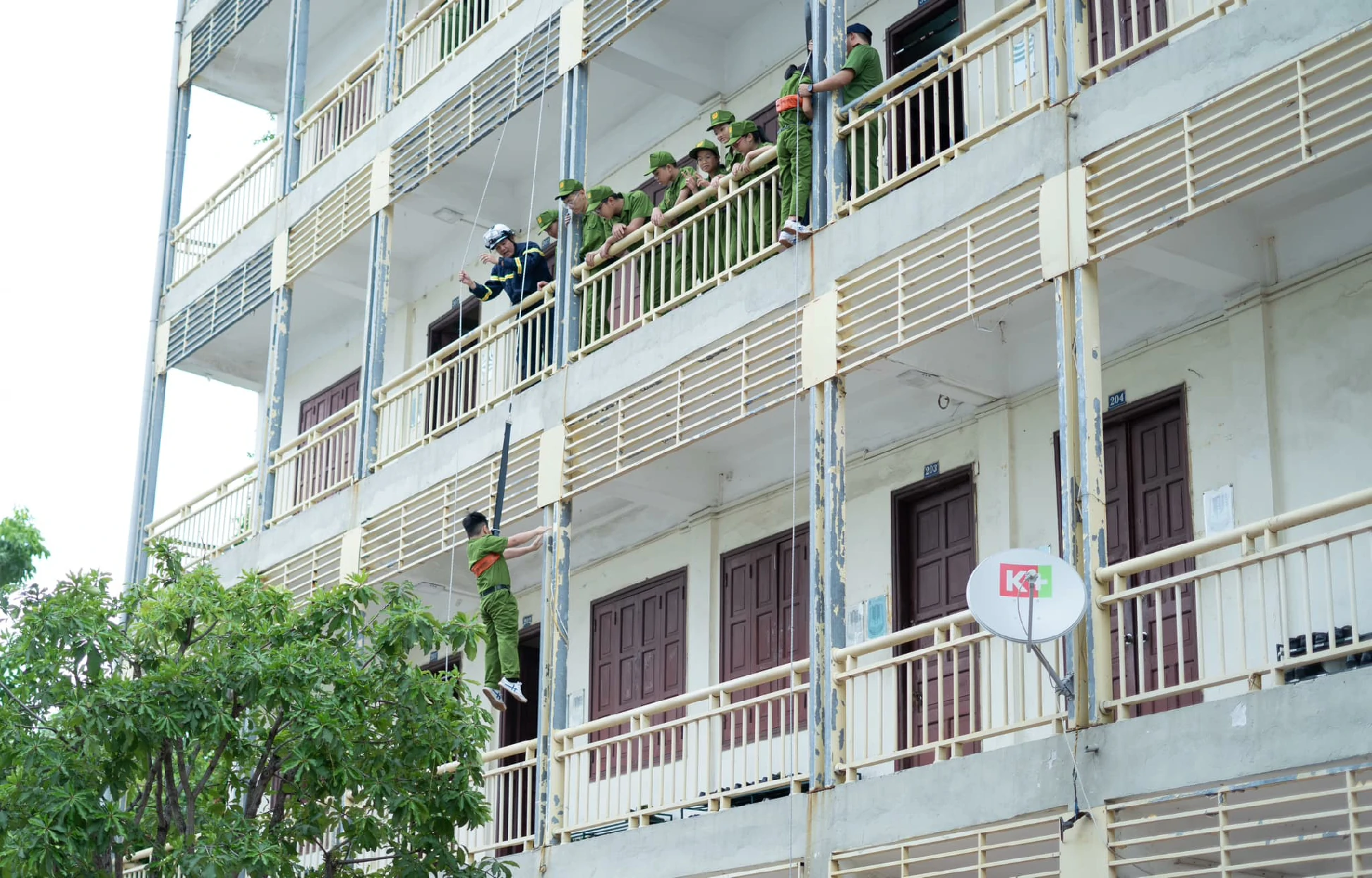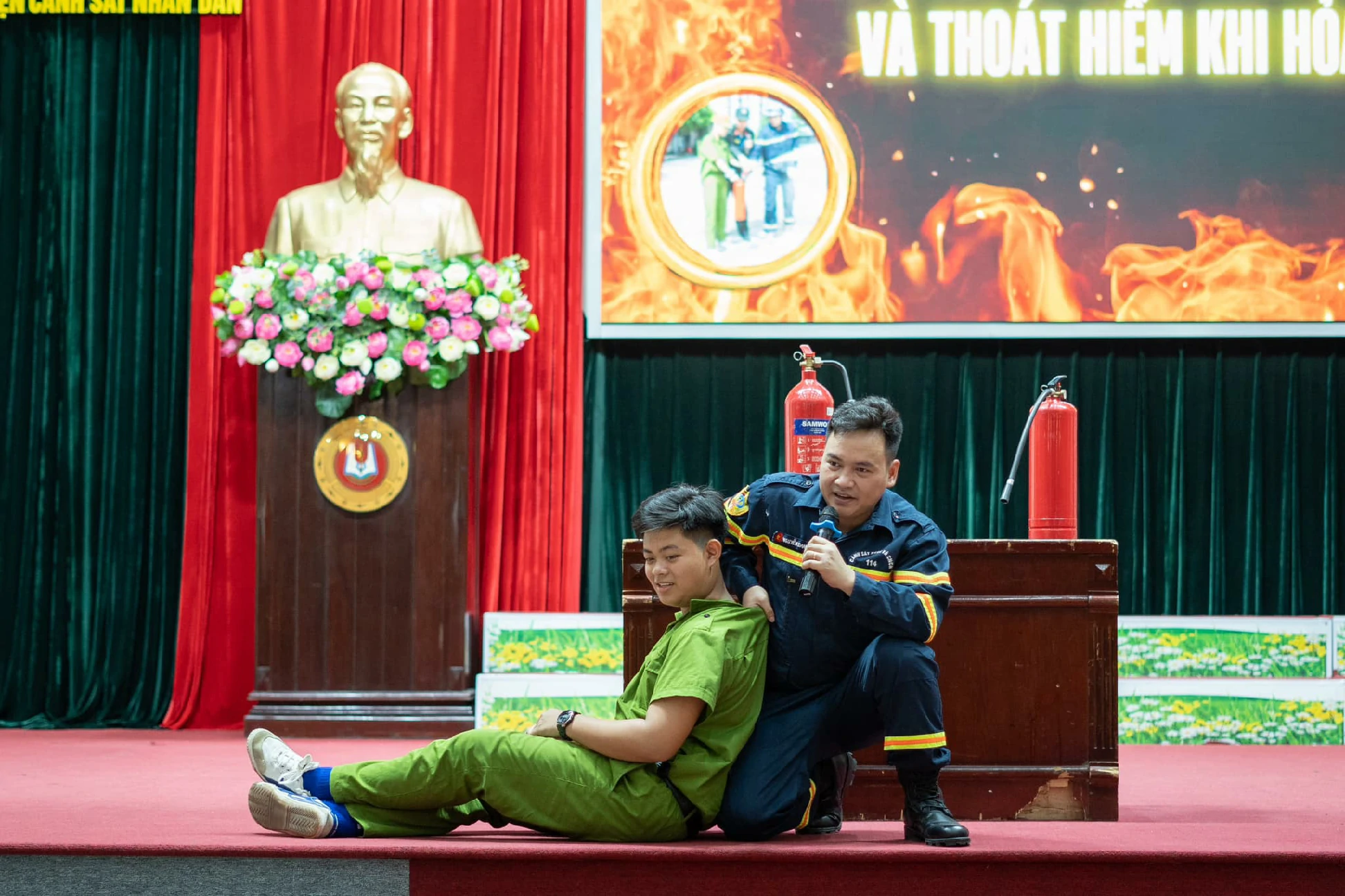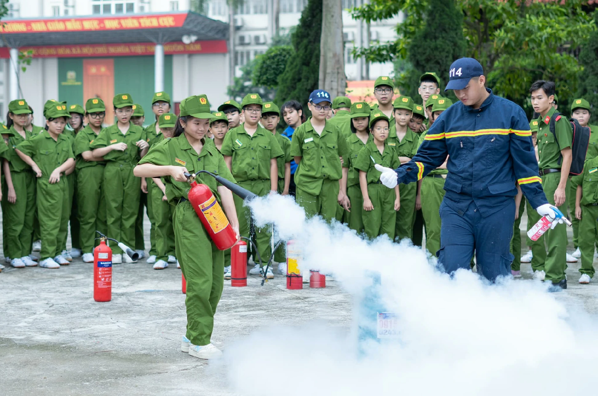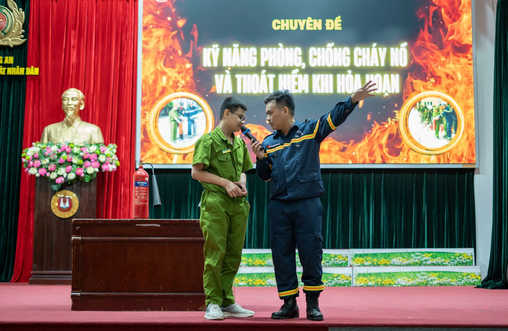 Với không khí vui tươi và cách truyền đạt rất dễ hiểu của giảng viên, Thiếu tá Nguyễn Danh Luân cán bộ Cục Cảnh sát phòng cháy, chữa cháy và cứu nạn, cứu hộ (Bộ Công an) các chiến sĩ công an nhí đã được tiếp thu rất nhiều kiến thức bổ ích về kỹ năng phòng, chống cháy nổ. Sau khi học lý thuyết xong, các chiến sĩ được tham gia thực hành kỹ năng sử dụng bình chữa cháy, thoát hiểm trong phòng khói, thoát hiểm từ tầng cao xuống vô cùng thú vị. ![]()