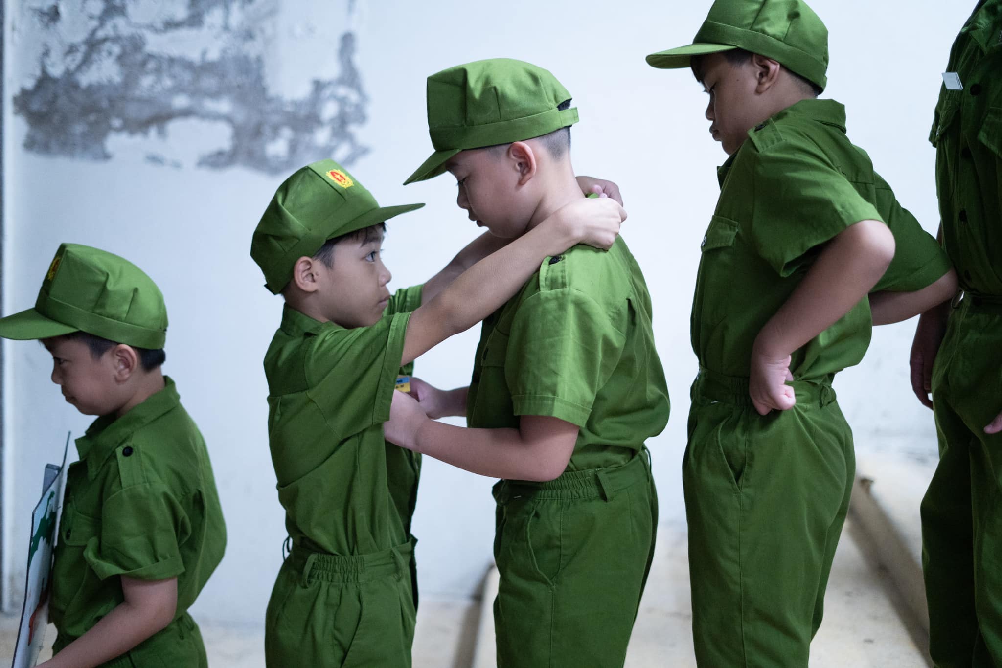 Báo động hành quân, rèn luyện thể lực cho các chiến sĩ nhí ![]()