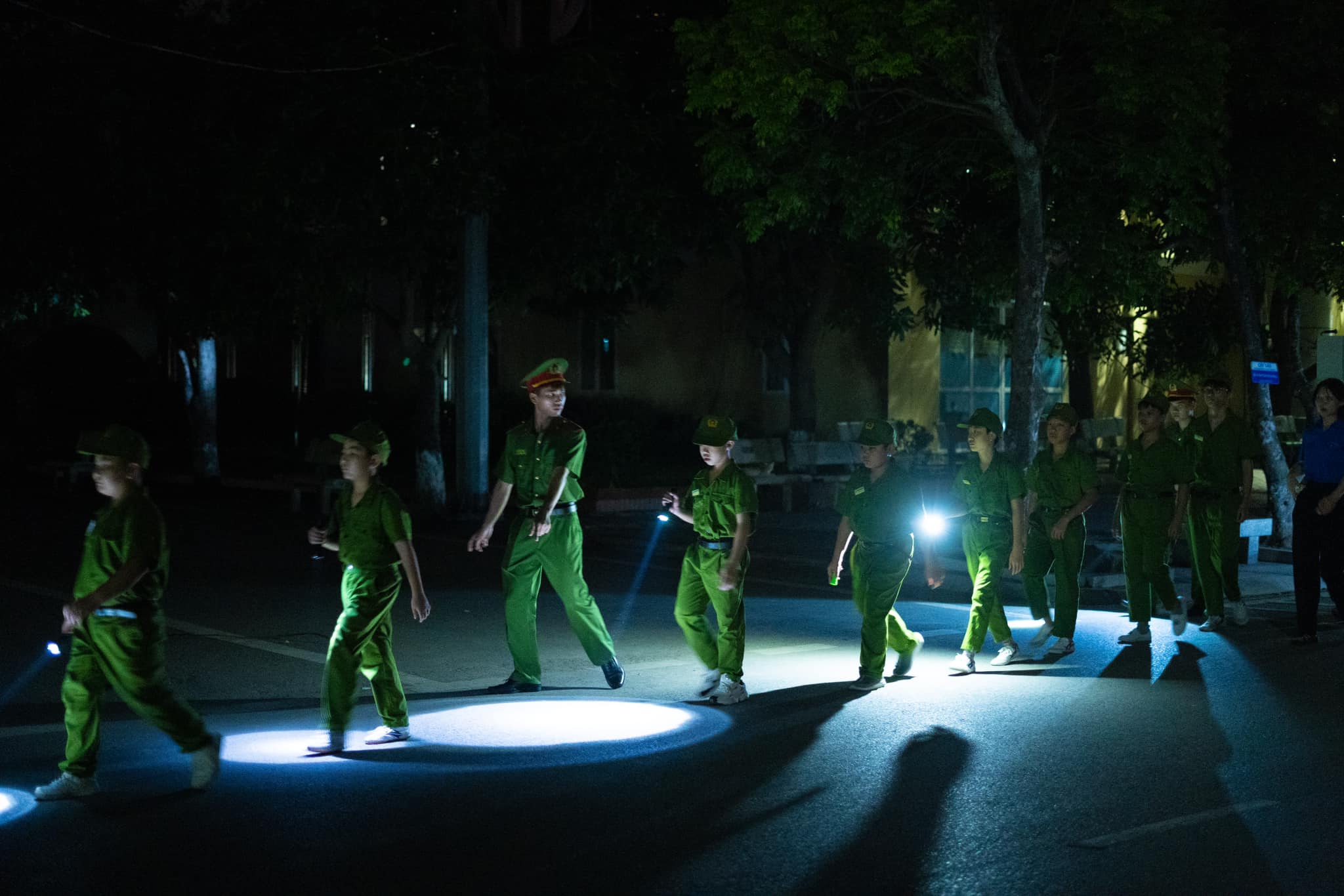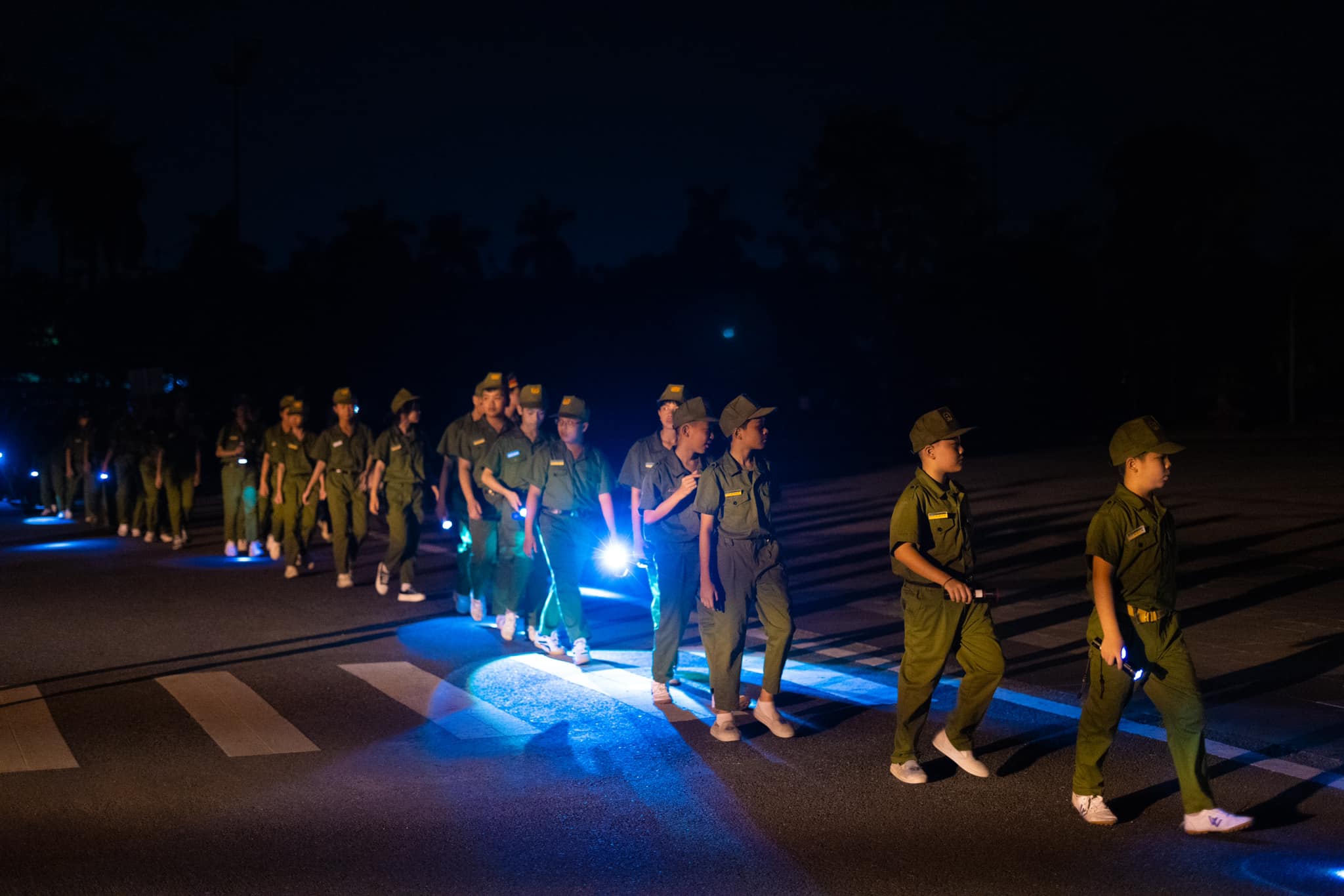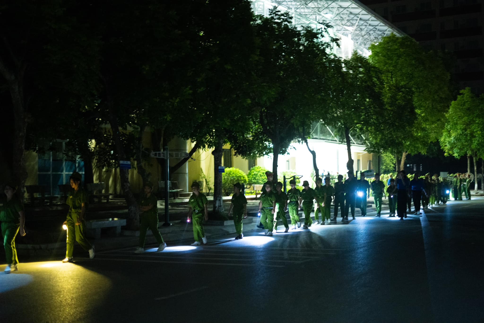 Sau ngày dài học tập và sinh hoạt, các chiến sĩ nhí đột xuất được báo động để hành quân trong đêm. Có đồng chí vừa đi vừa dụi mắt cho tỉnh ngủ, nhìn thương lắm!! Nhưng trên hết, là tinh thần quyết tâm, không ngại khó ngại khổ của các chiến sĩ. Toàn đại đội đã tập trung đúng giờ và hoàn thành xuất sắc nhiệm vụ này ![]()