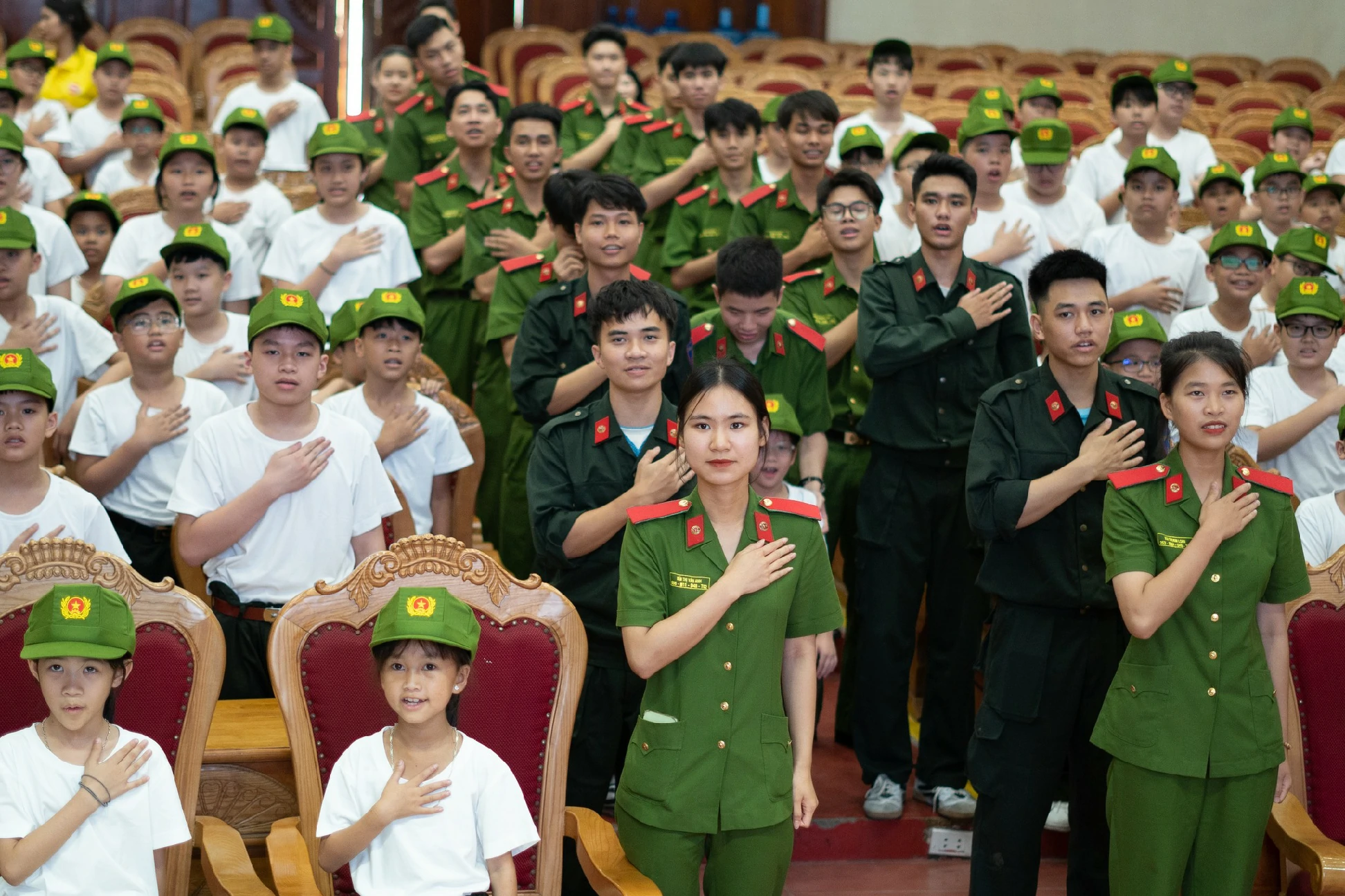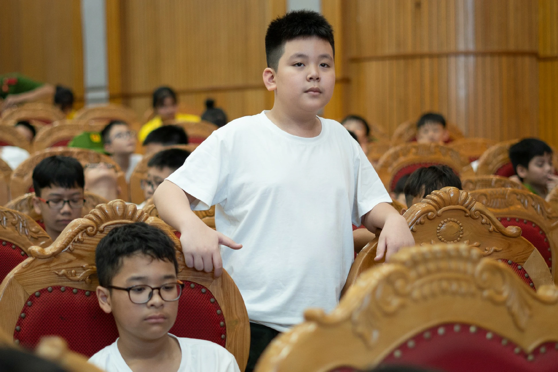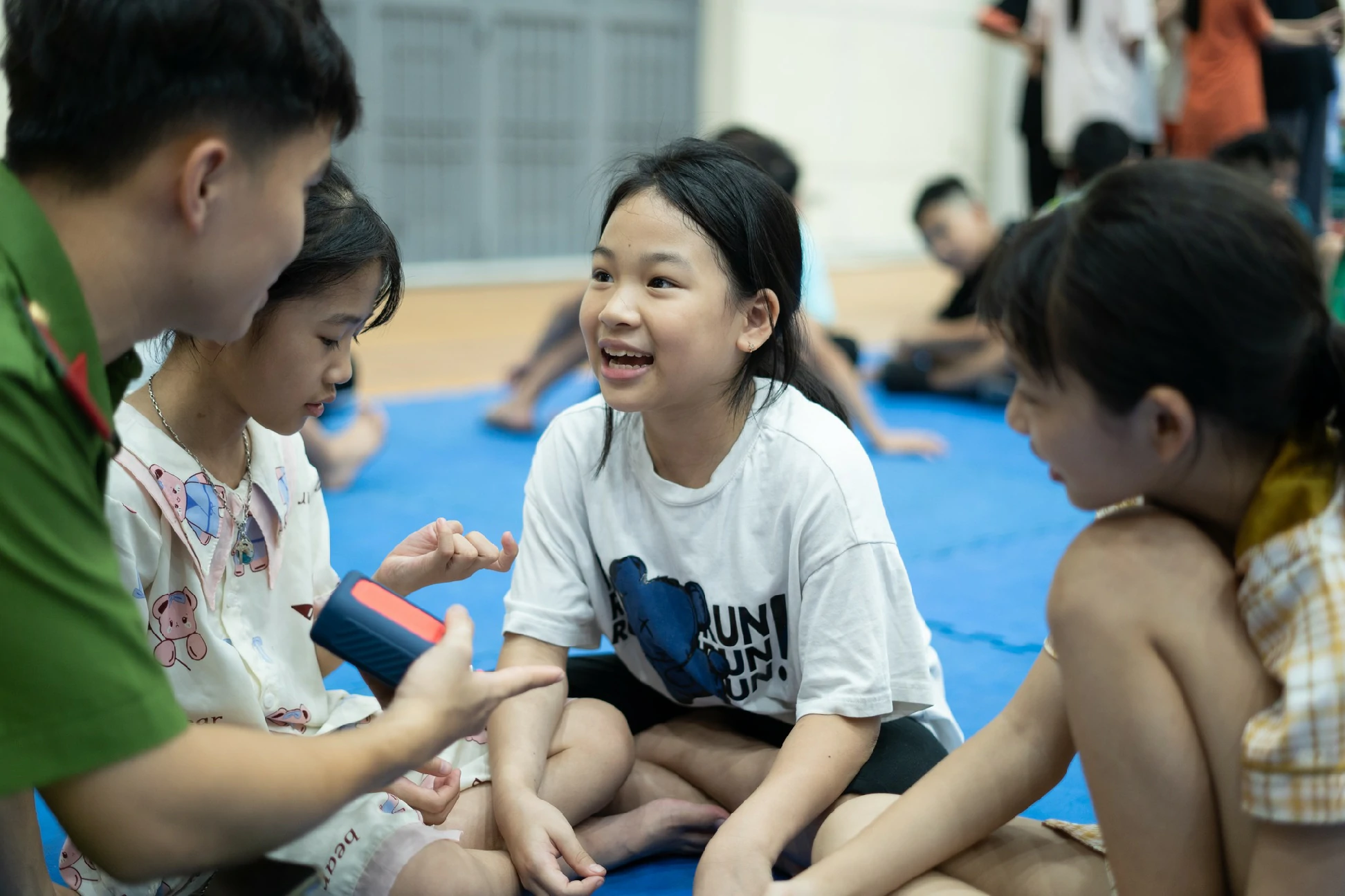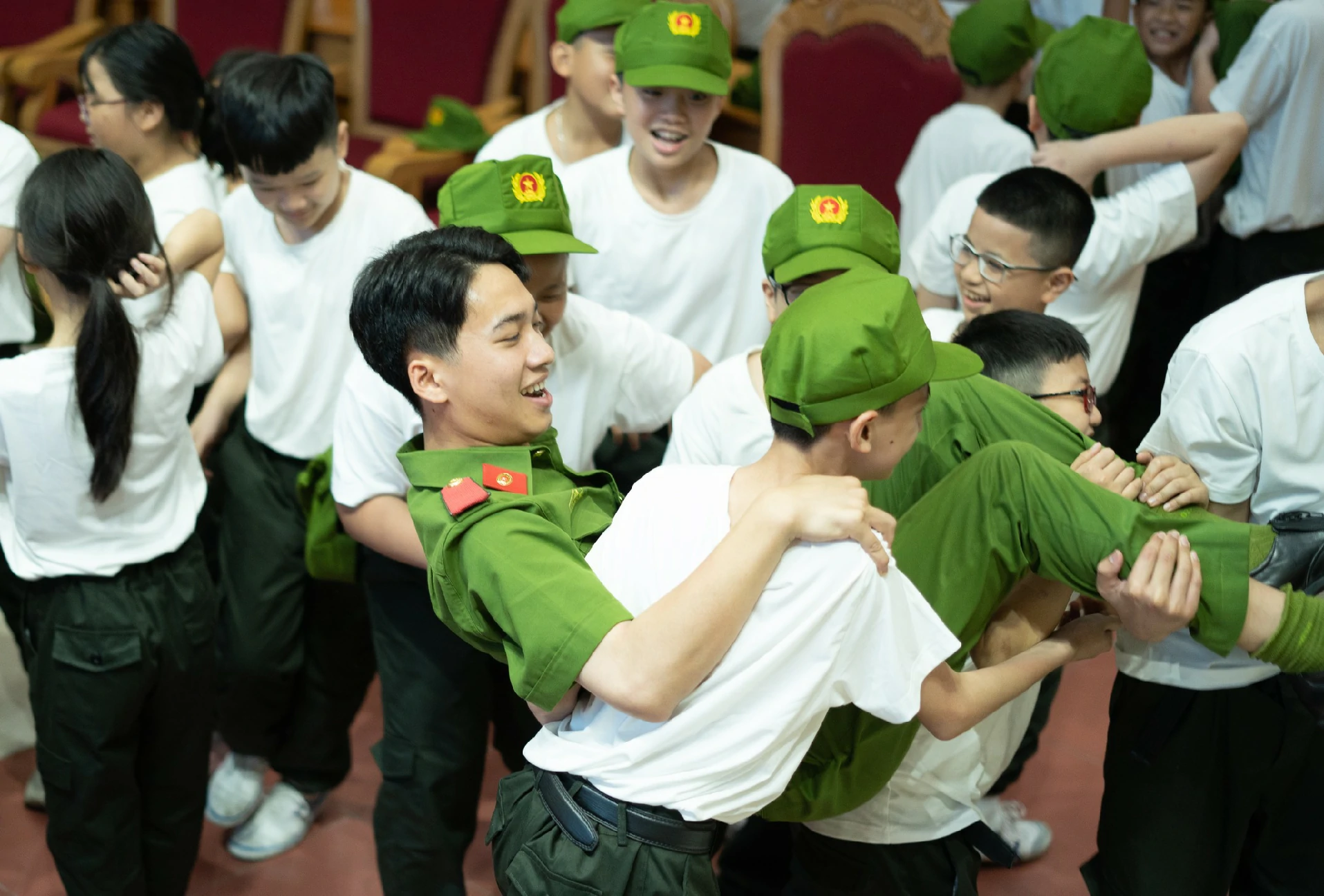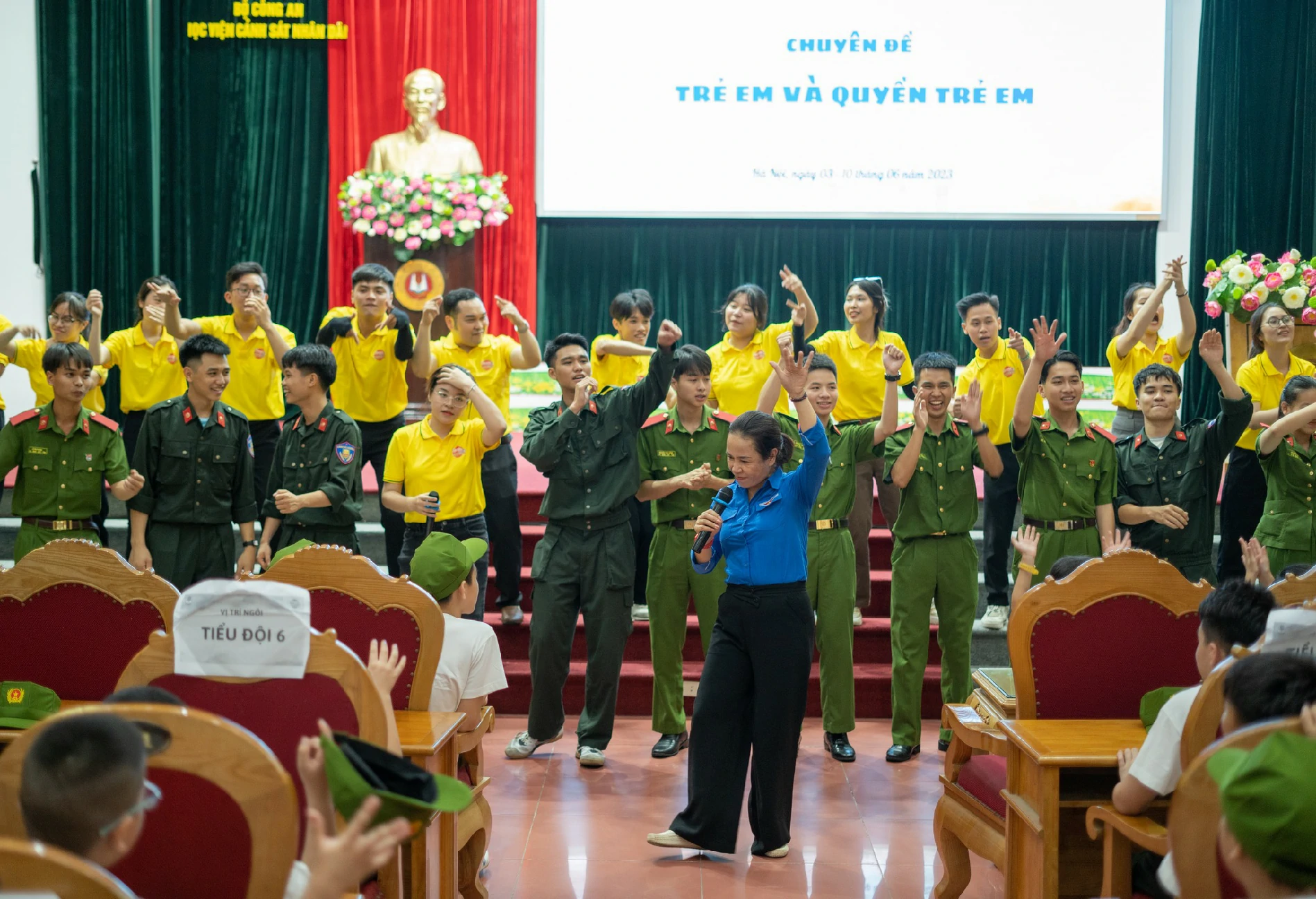 au khi ăn sáng, các chiến sĩ công an nhí bắt đầu sinh hoạt tiểu đội rồi di chuyển về hội trường Trần Đức Trường để đến với chuyên đề: ” Kỹ năng sử dụng Internet an toàn và thông minh” ![]()