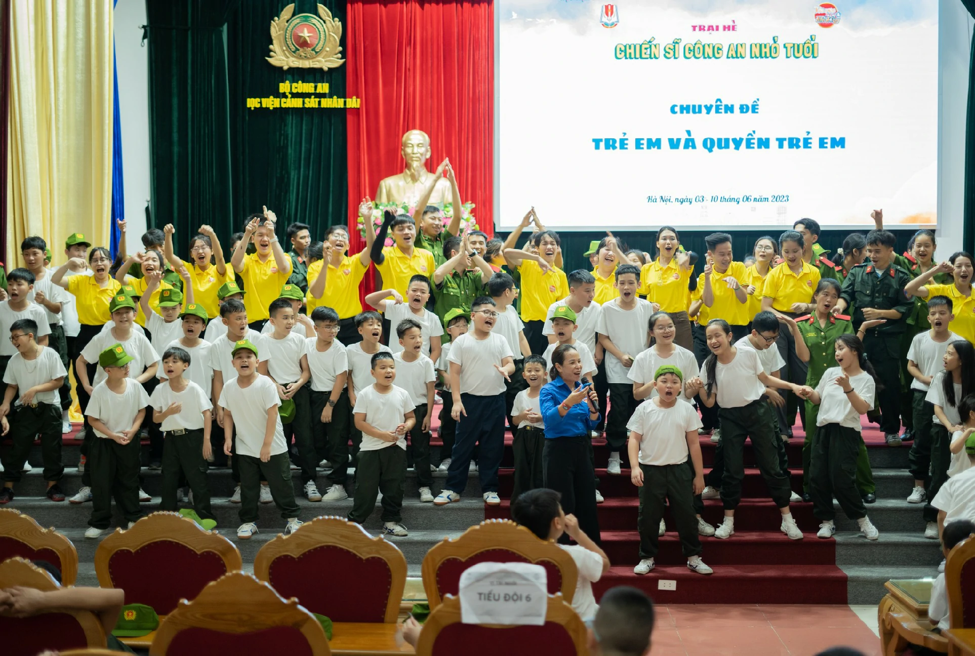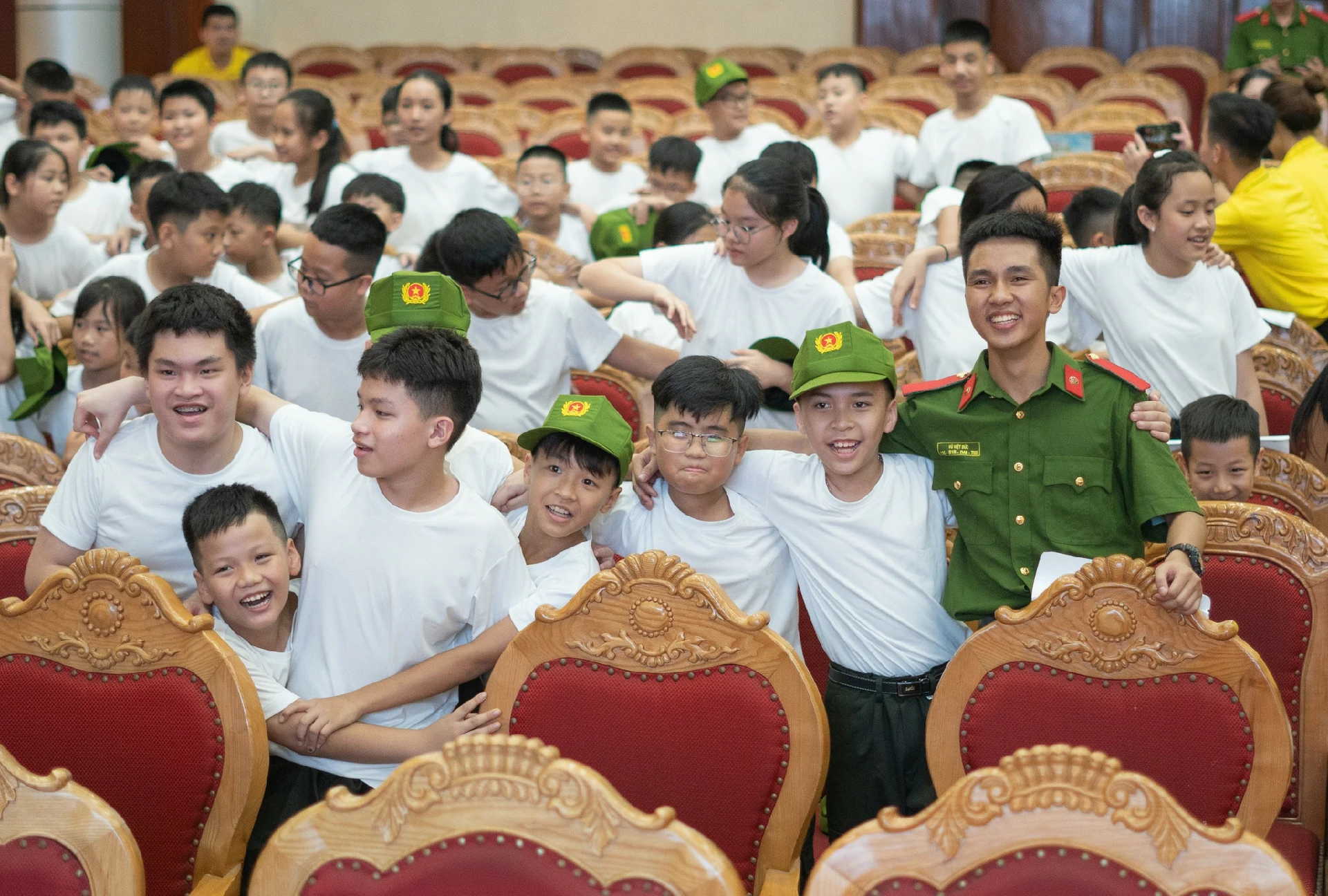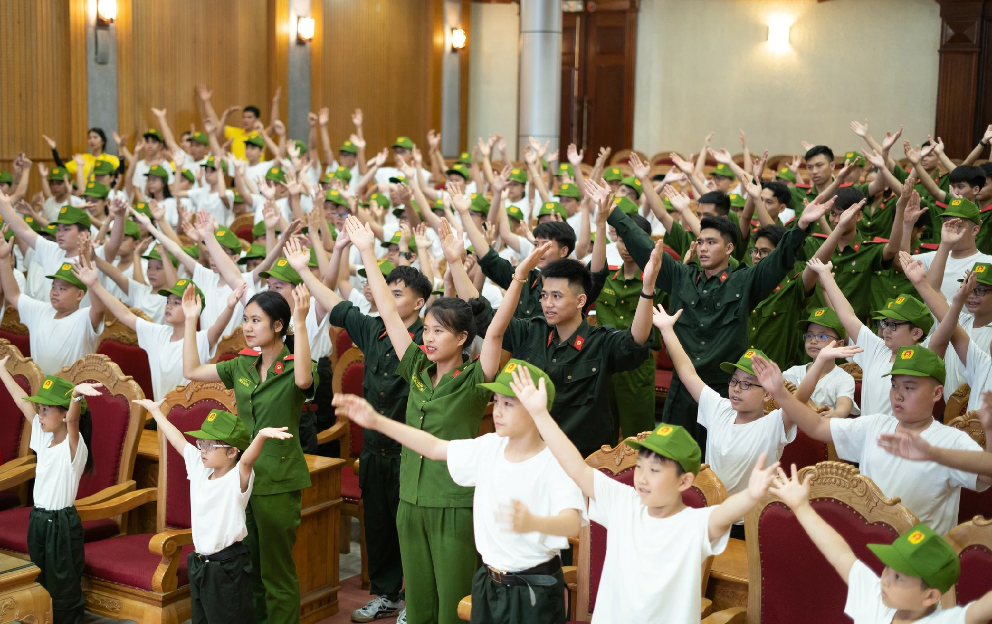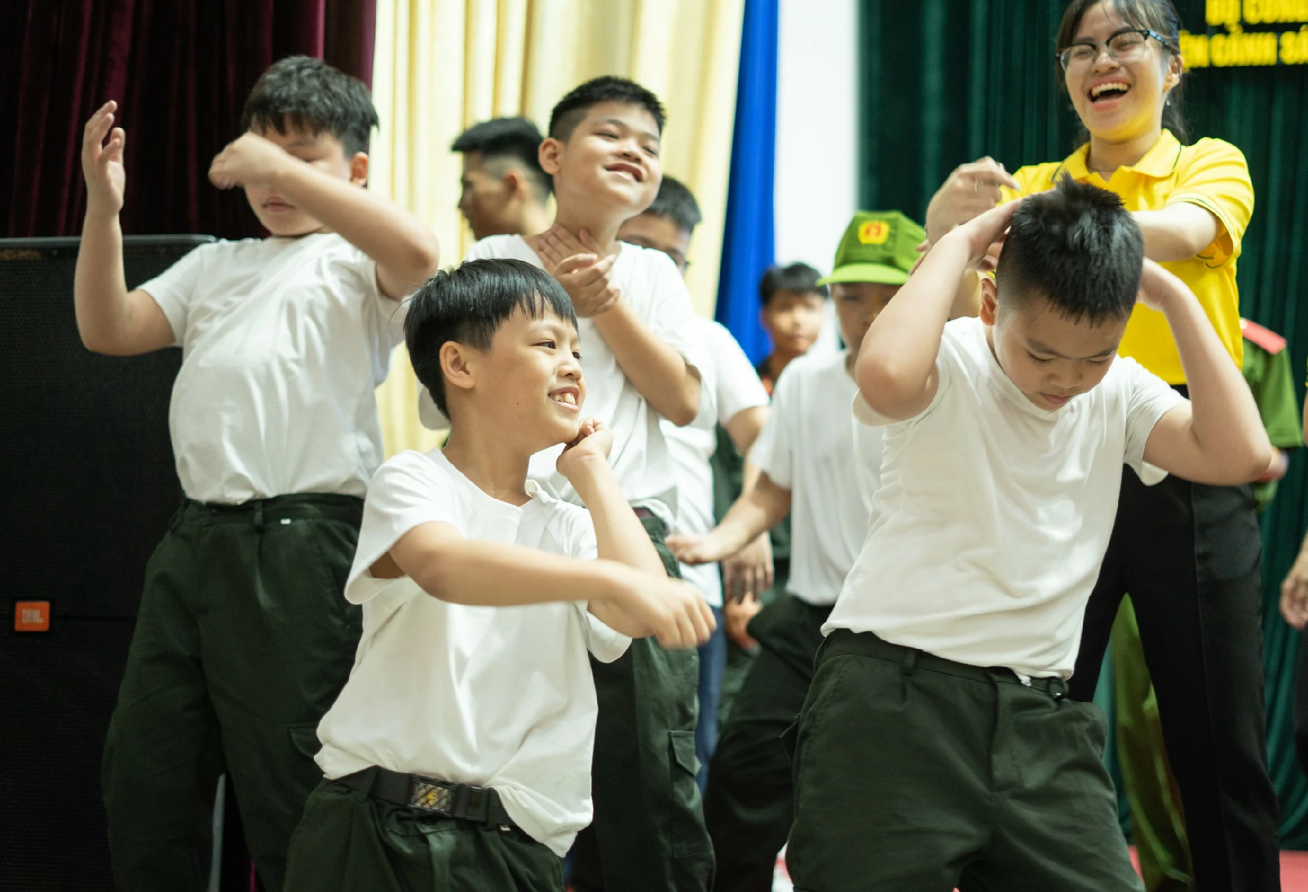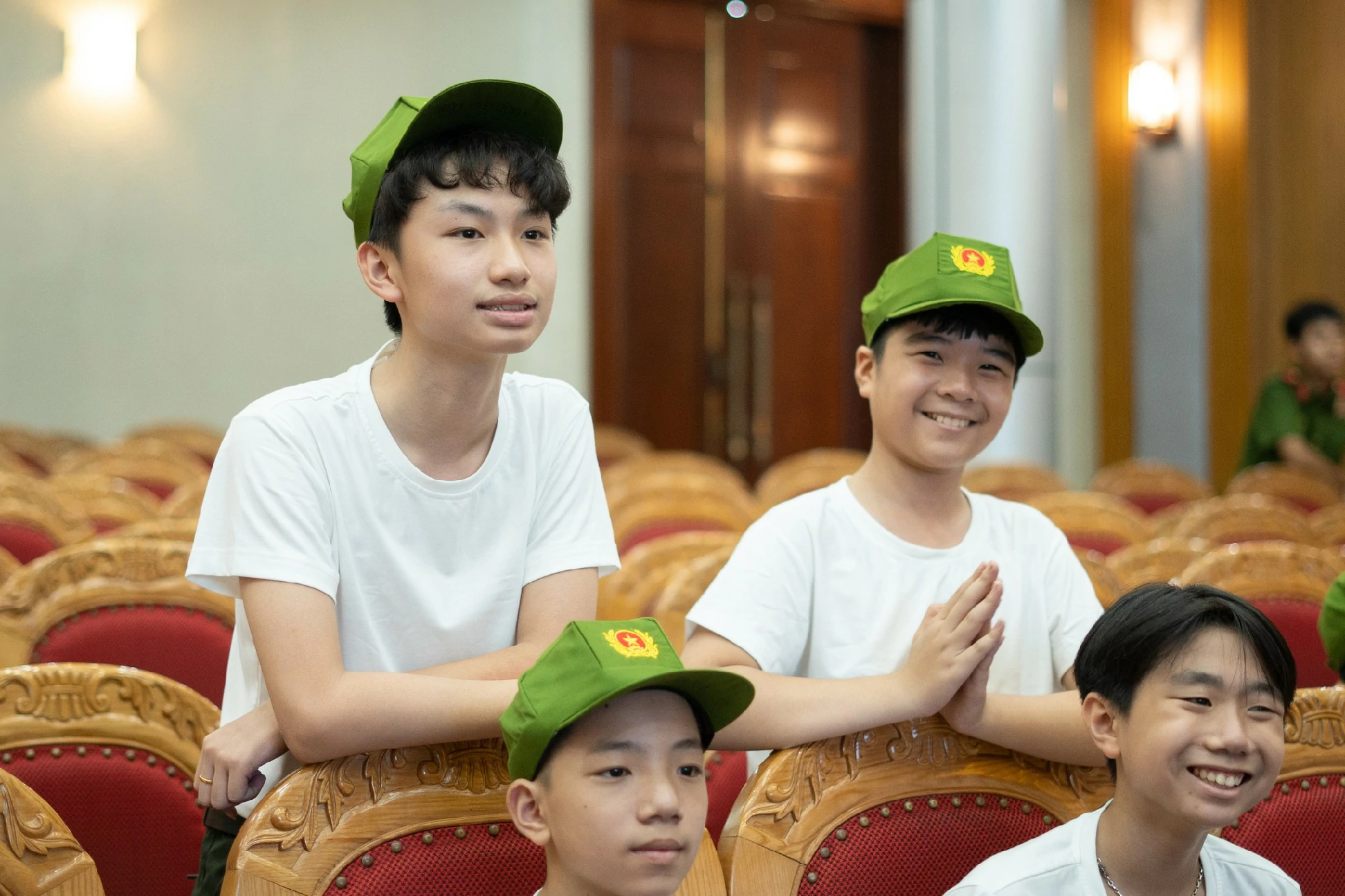 au khi ăn sáng, các chiến sĩ công an nhí bắt đầu sinh hoạt tiểu đội rồi di chuyển về hội trường Trần Đức Trường để đến với chuyên đề: ” Kỹ năng sử dụng Internet an toàn và thông minh” ![]()
