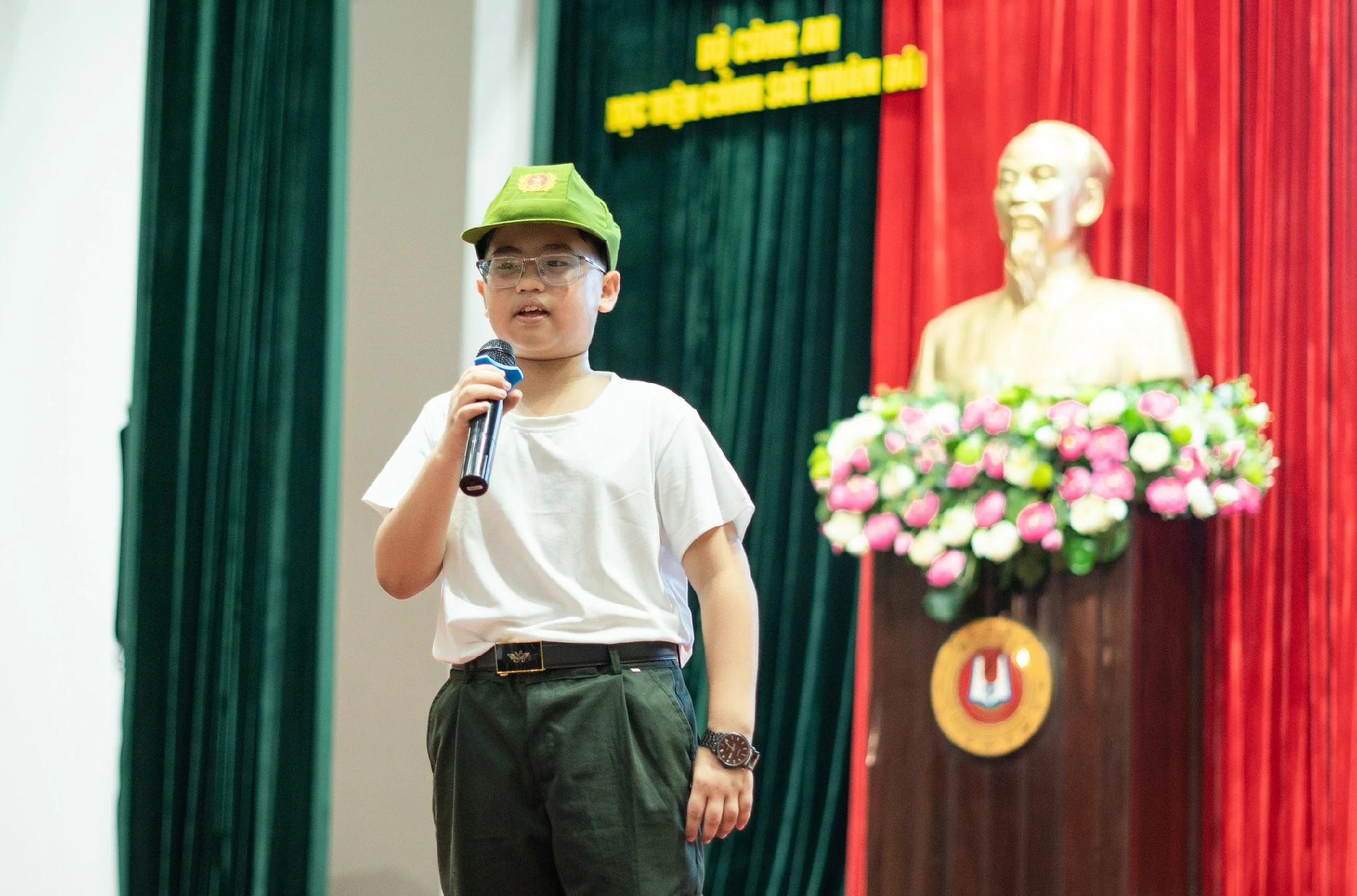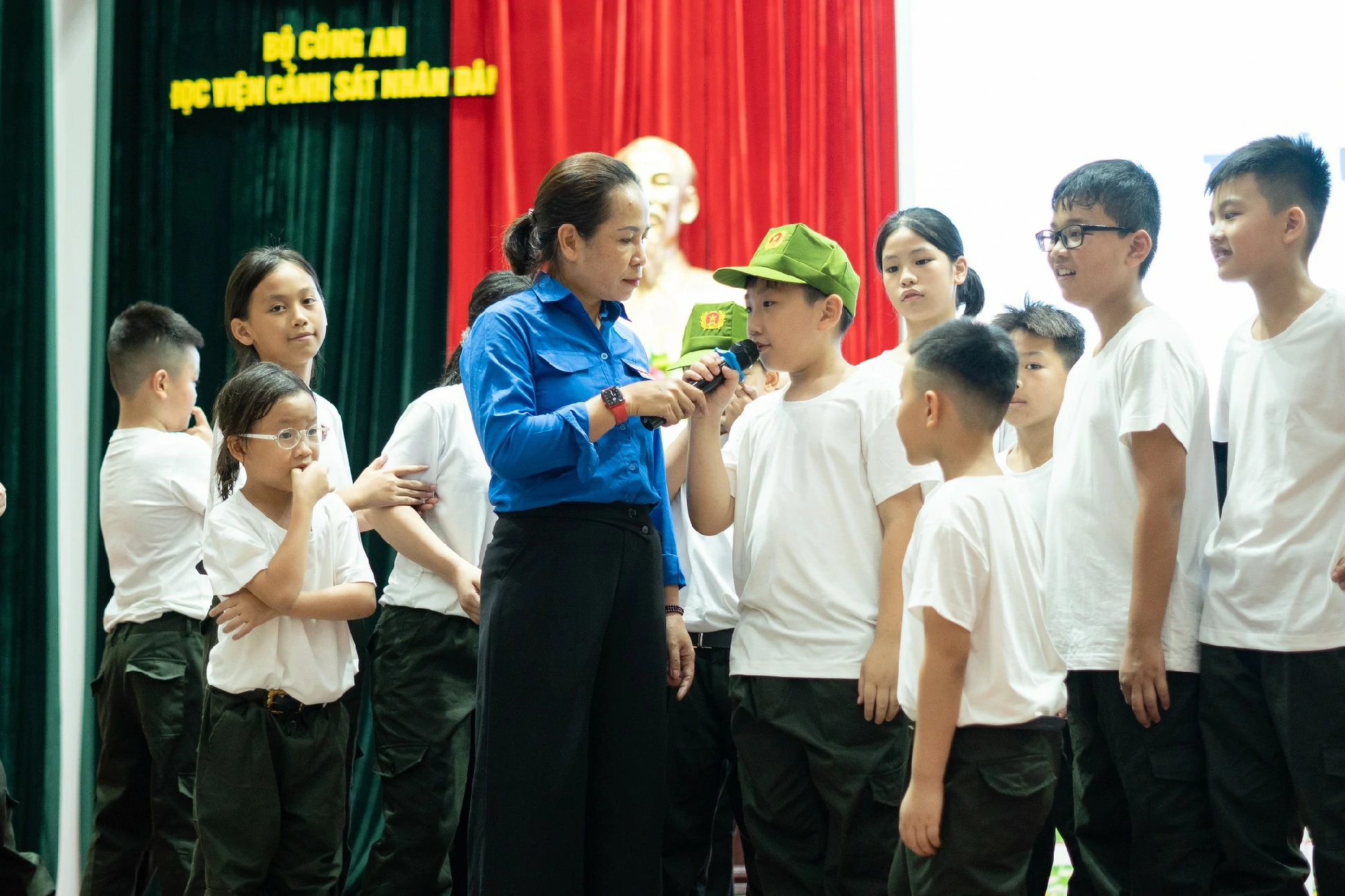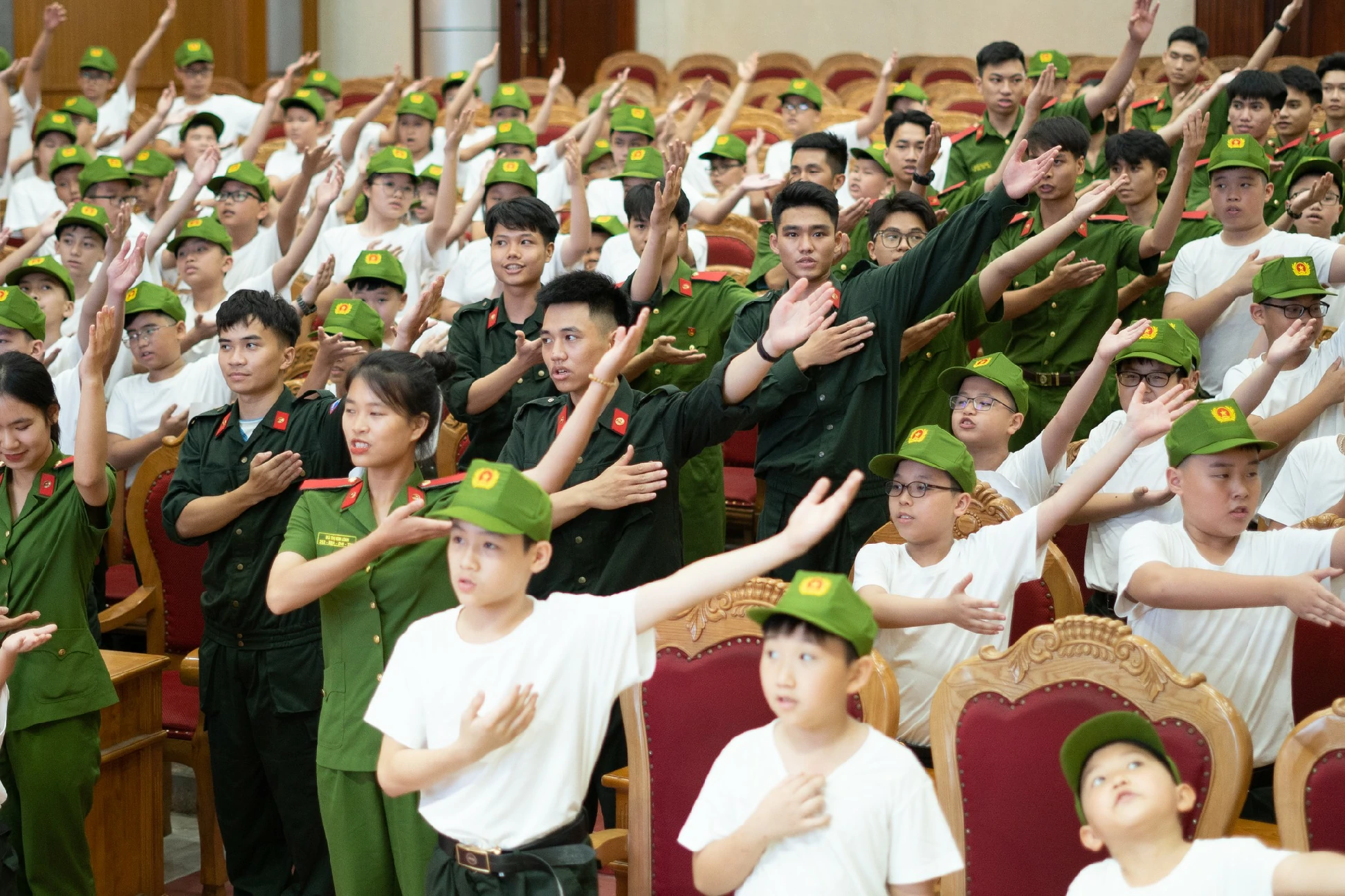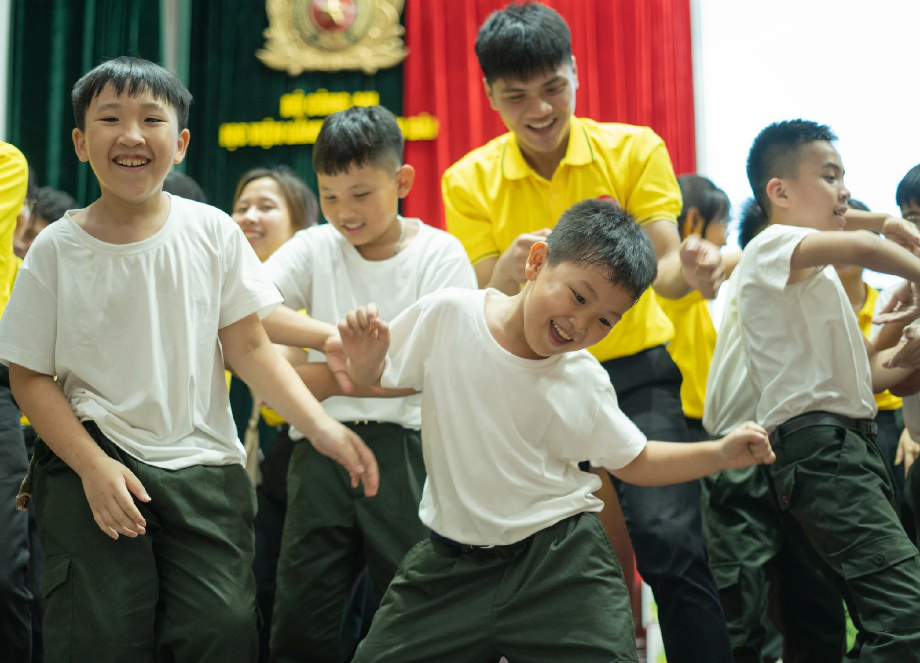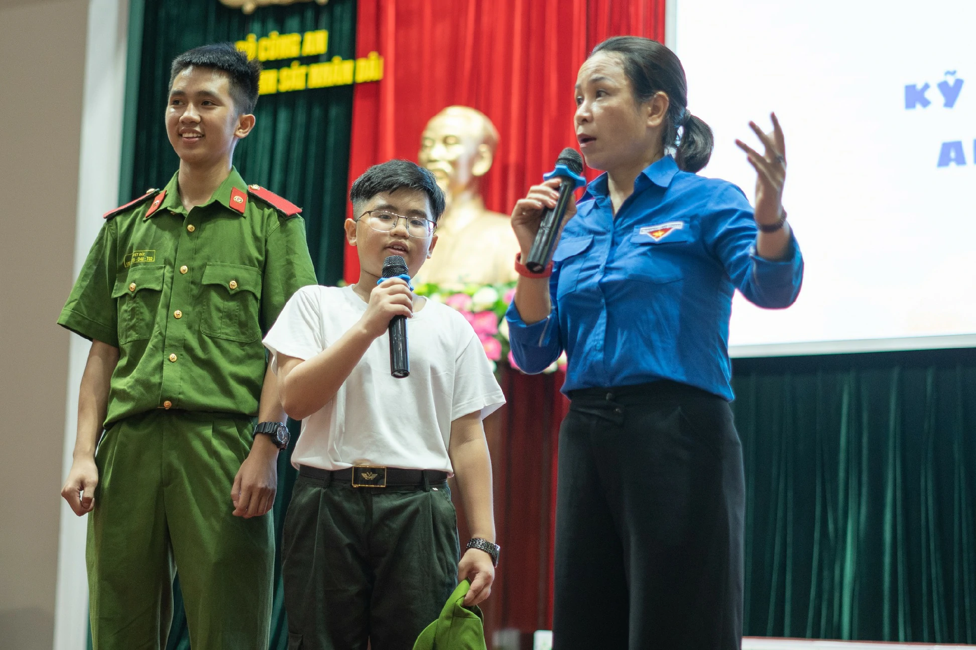au khi ăn sáng, các chiến sĩ công an nhí bắt đầu sinh hoạt tiểu đội rồi di chuyển về hội trường Trần Đức Trường để đến với chuyên đề: ” Kỹ năng sử dụng Internet an toàn và thông minh” ![]()